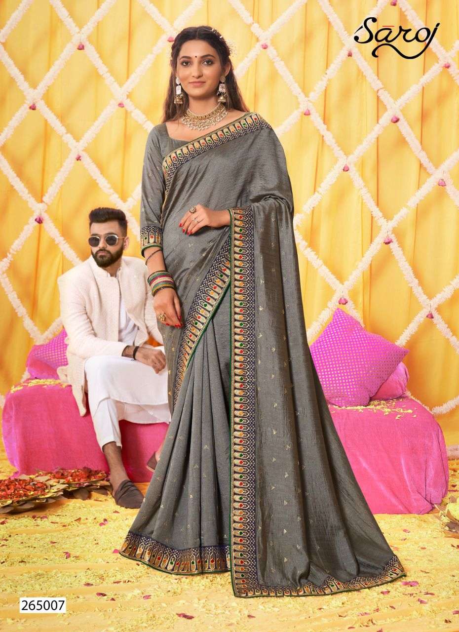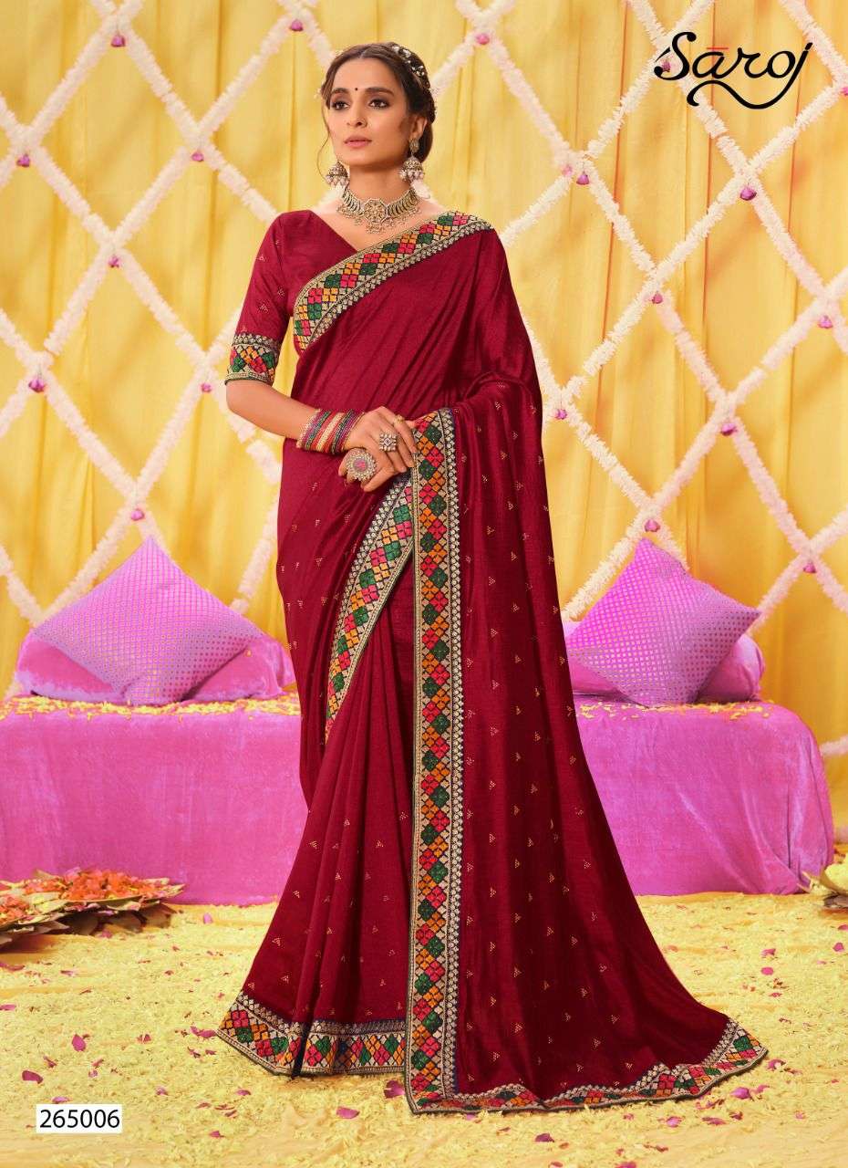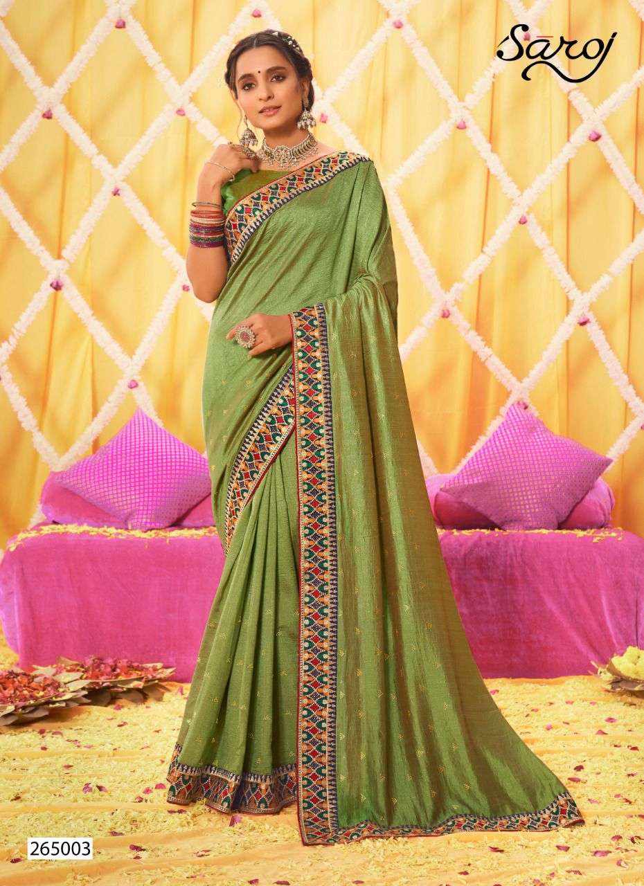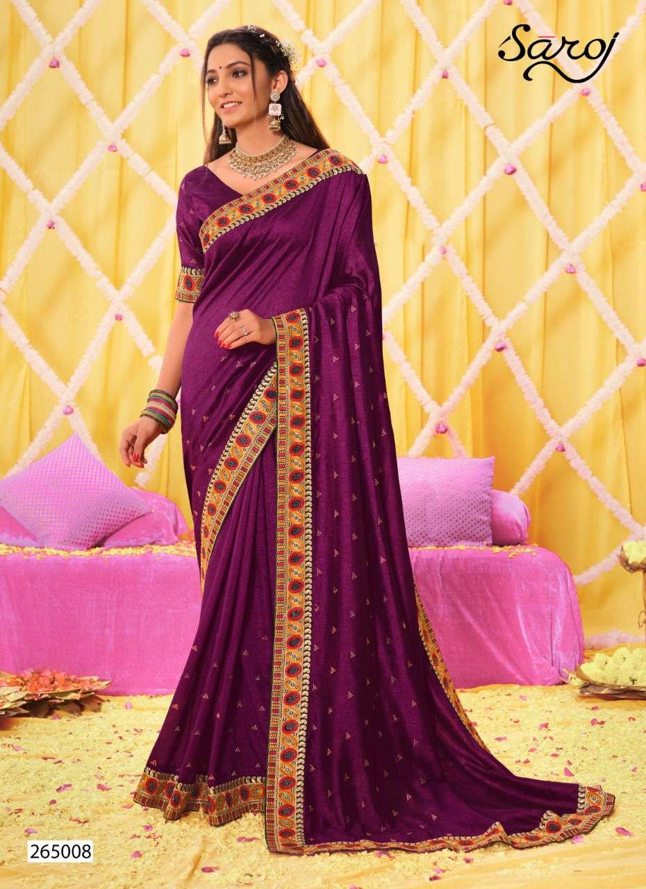 SAROJ Nakshikaa (Rs.1380) Fabric: Soft Vhichitra Silk with Swaroski Butti and Heavy Border lace. |