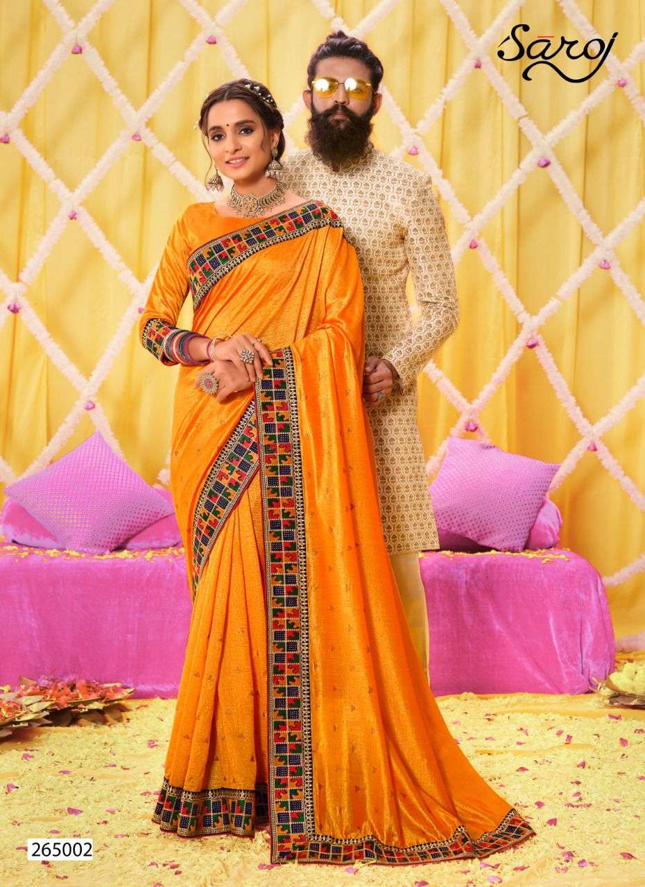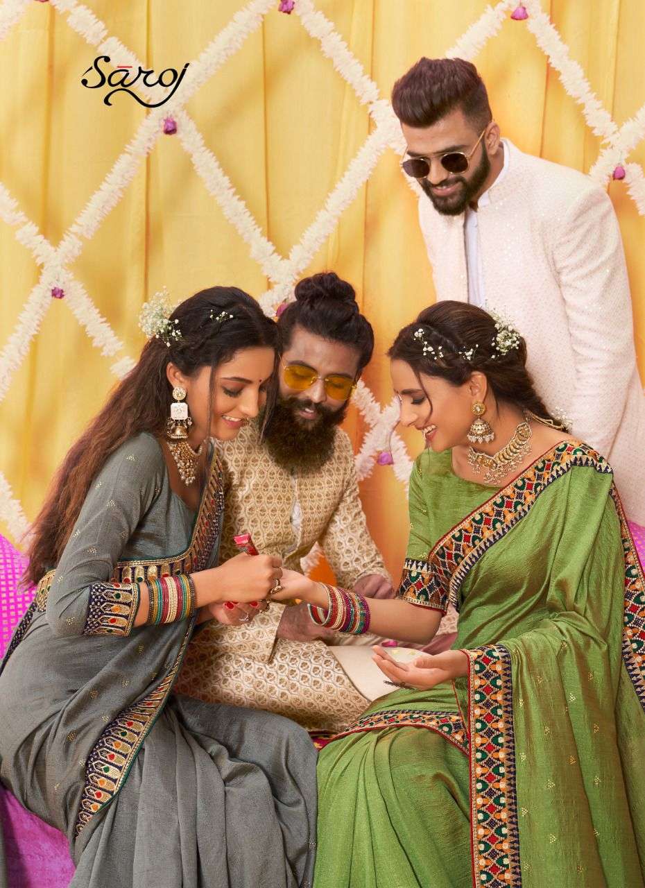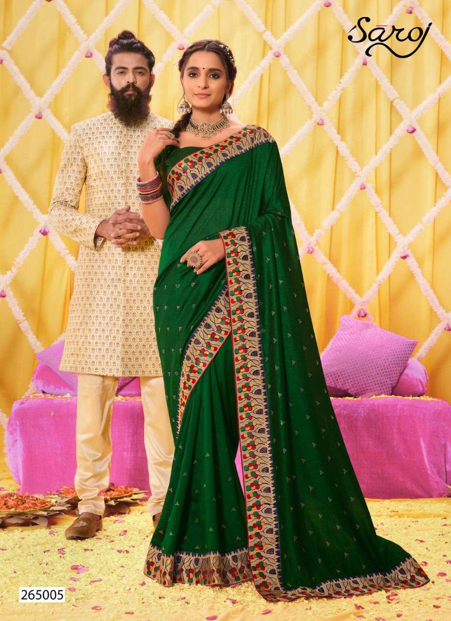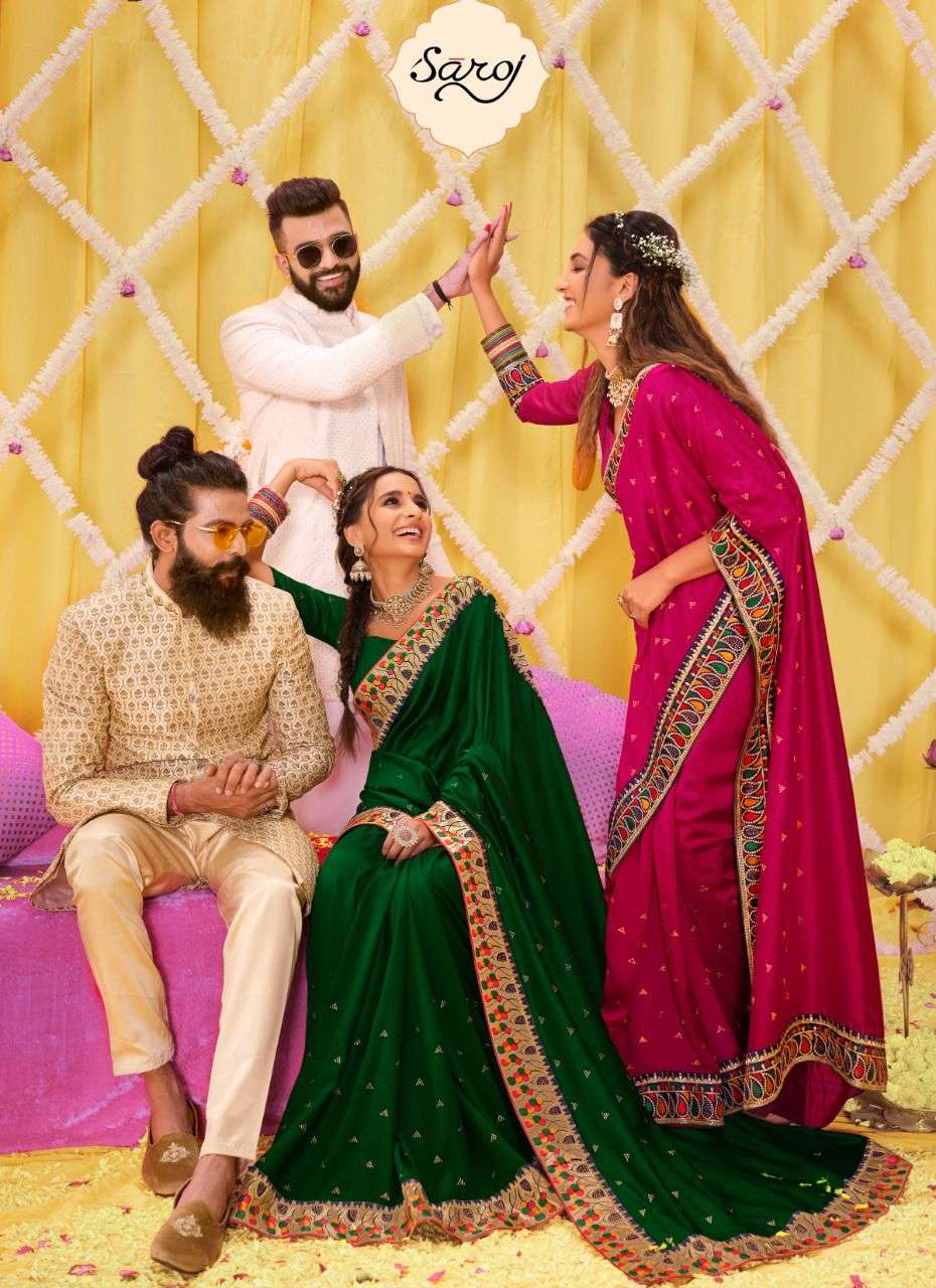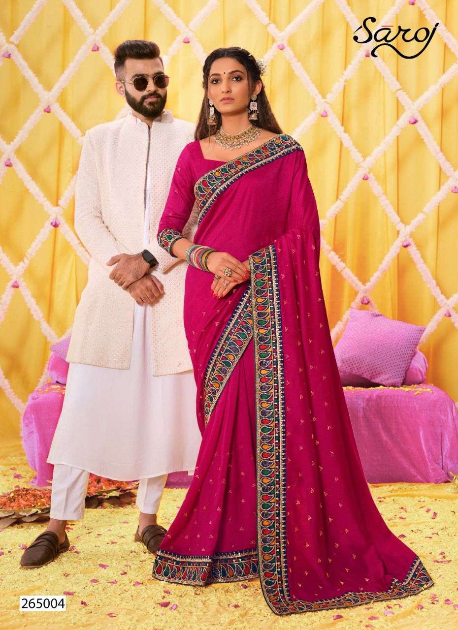 SAROJ Nakshikaa (Rs.1380) Fabric: Soft Vhichitra Silk with Swaroski Butti and Heavy Border lace. |
