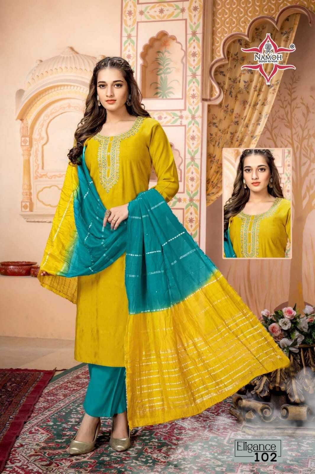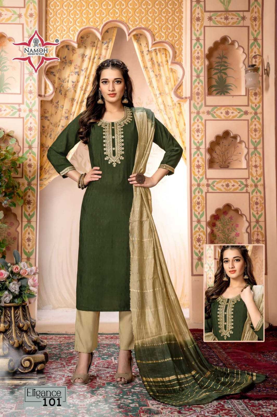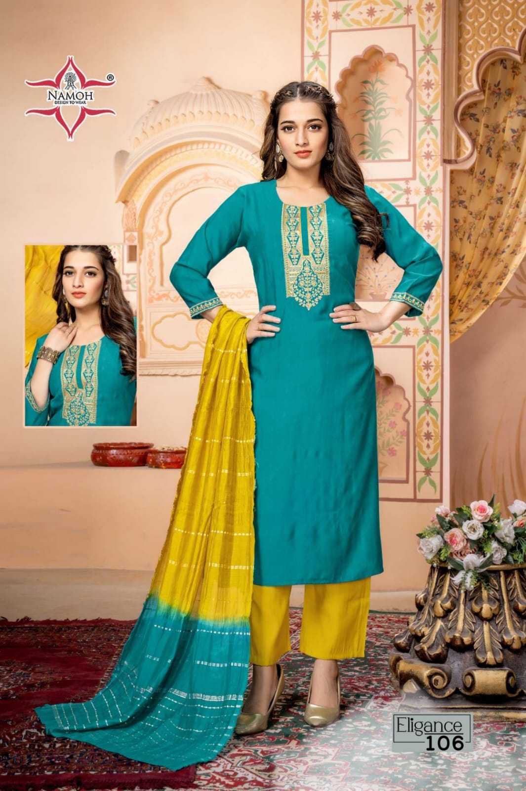 namoh eligance fullstitch fancy kurti pant dupatta set