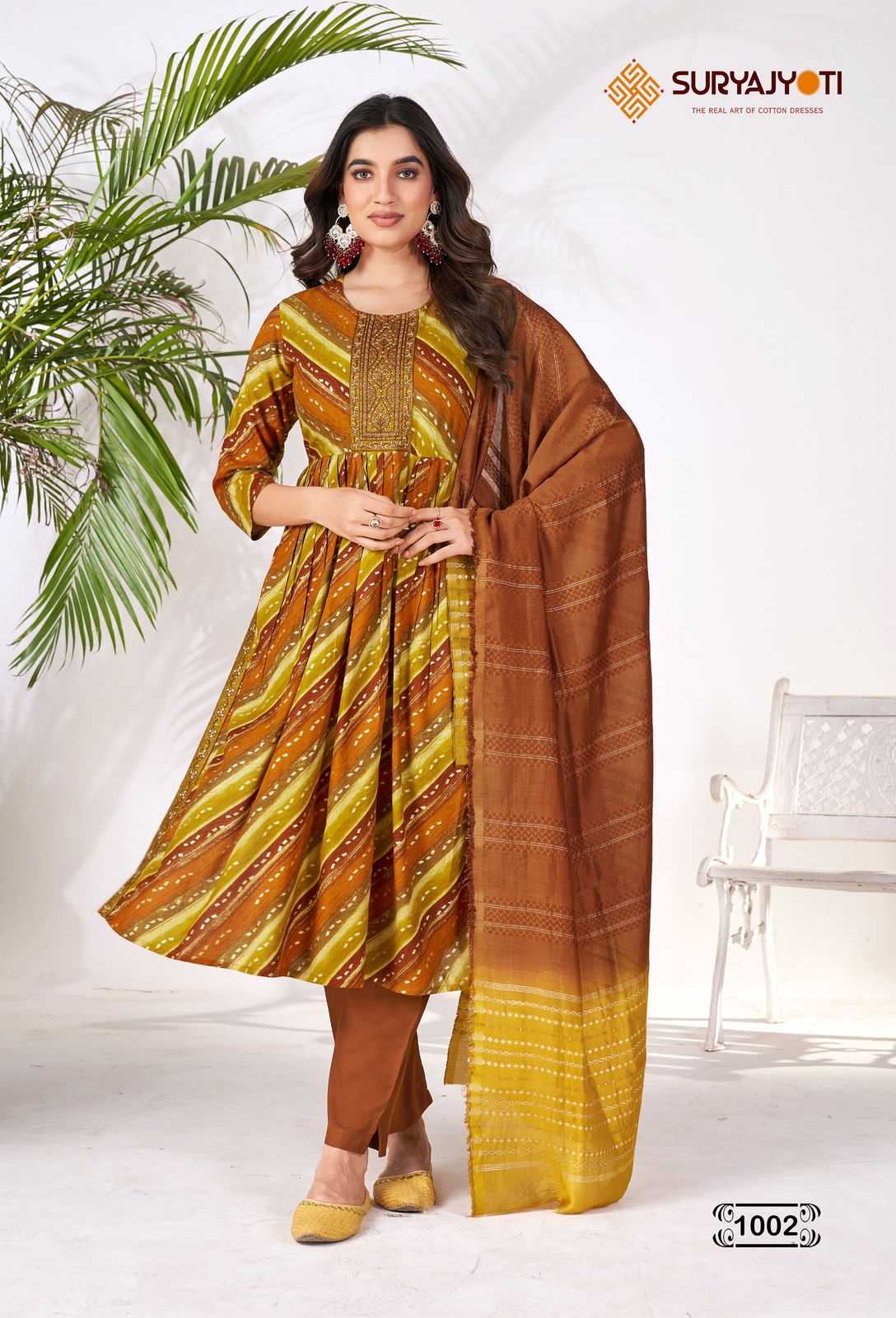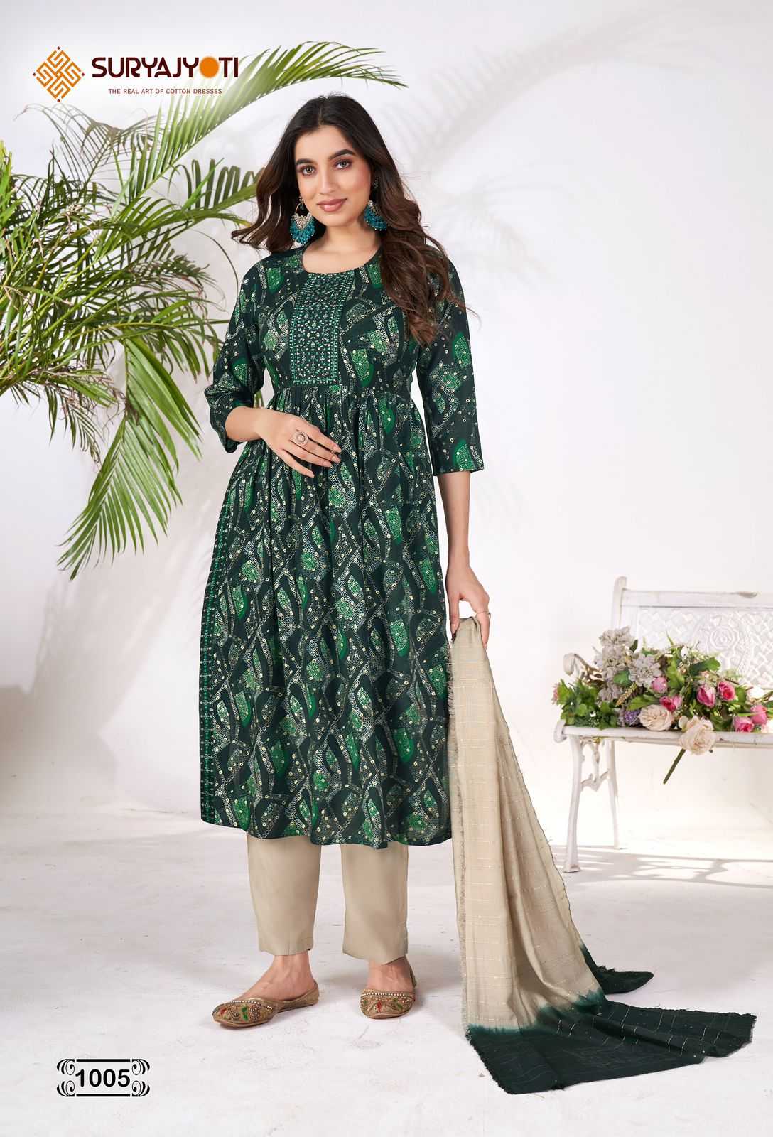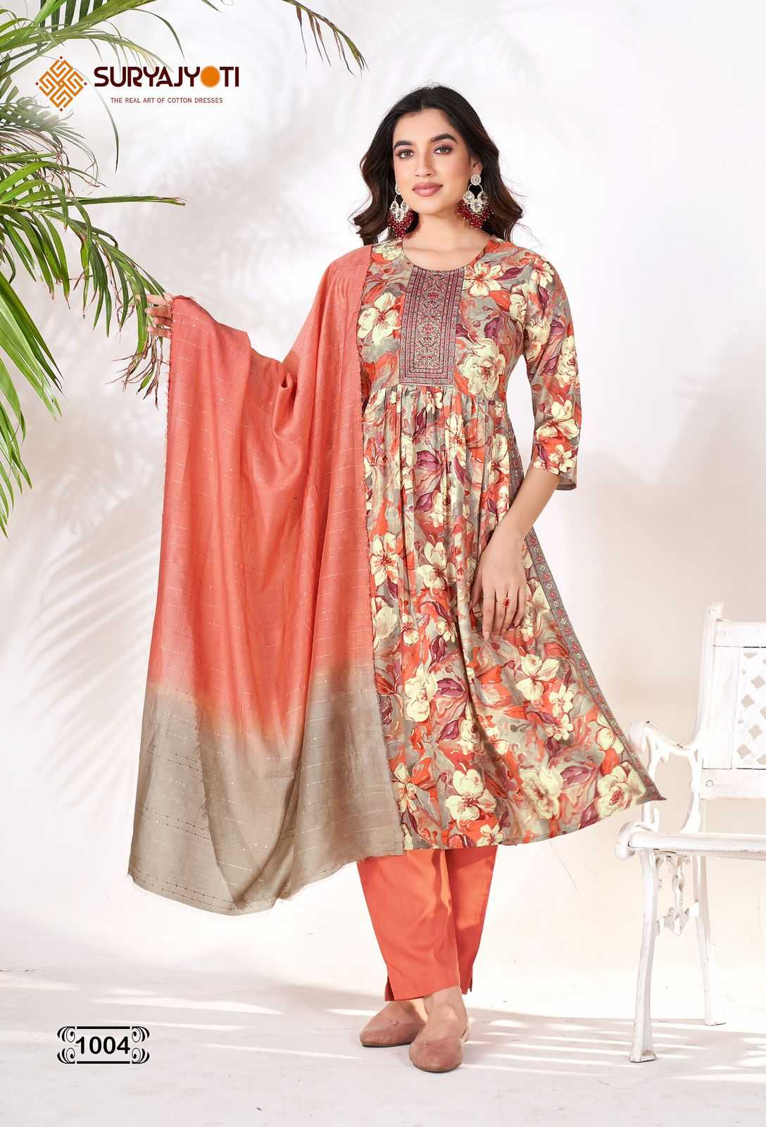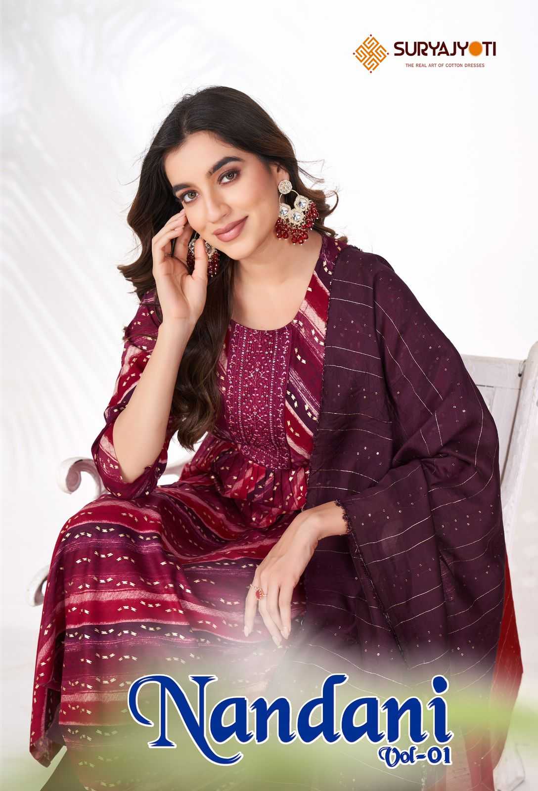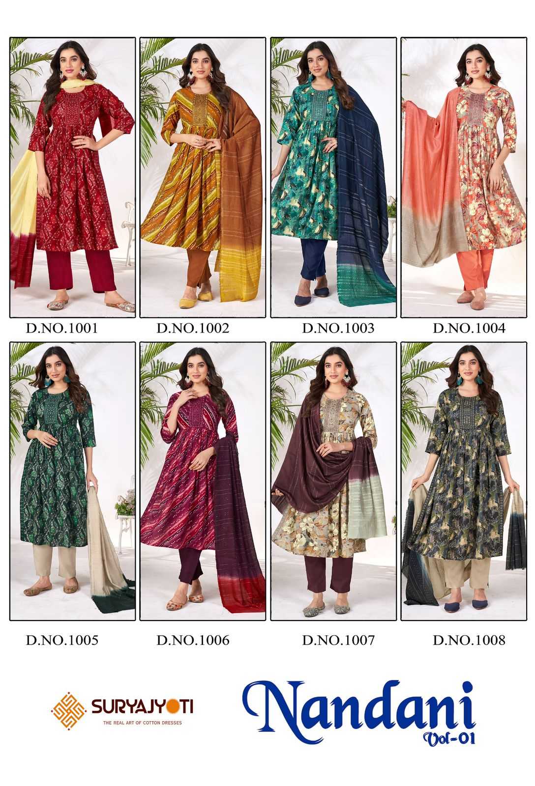 nandani vol 1 by suryajyoti solid pattern rayon fully stitch top bottom dupatta
