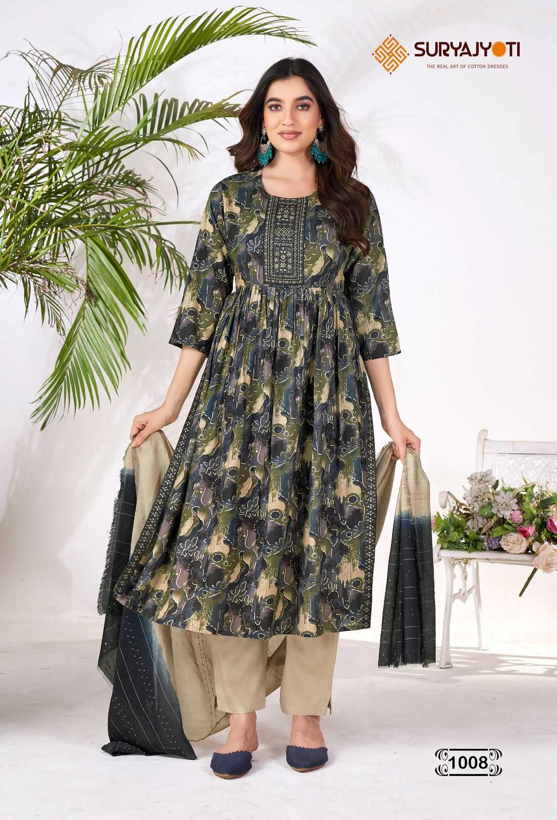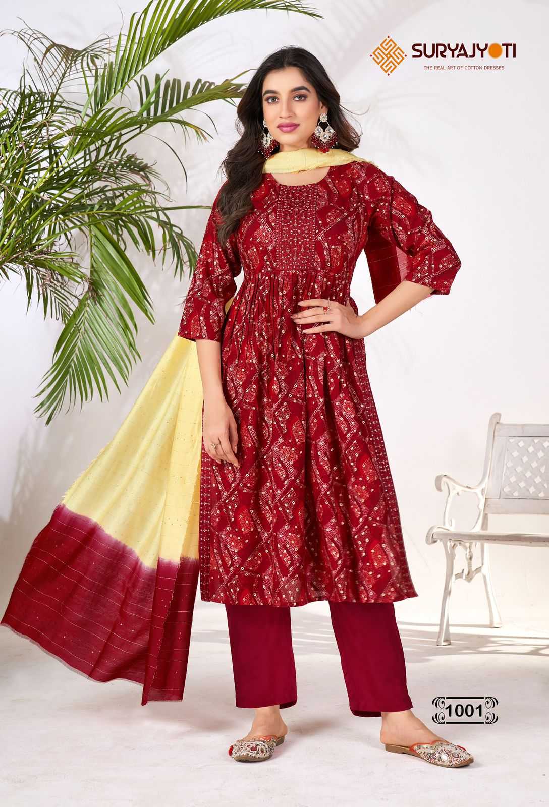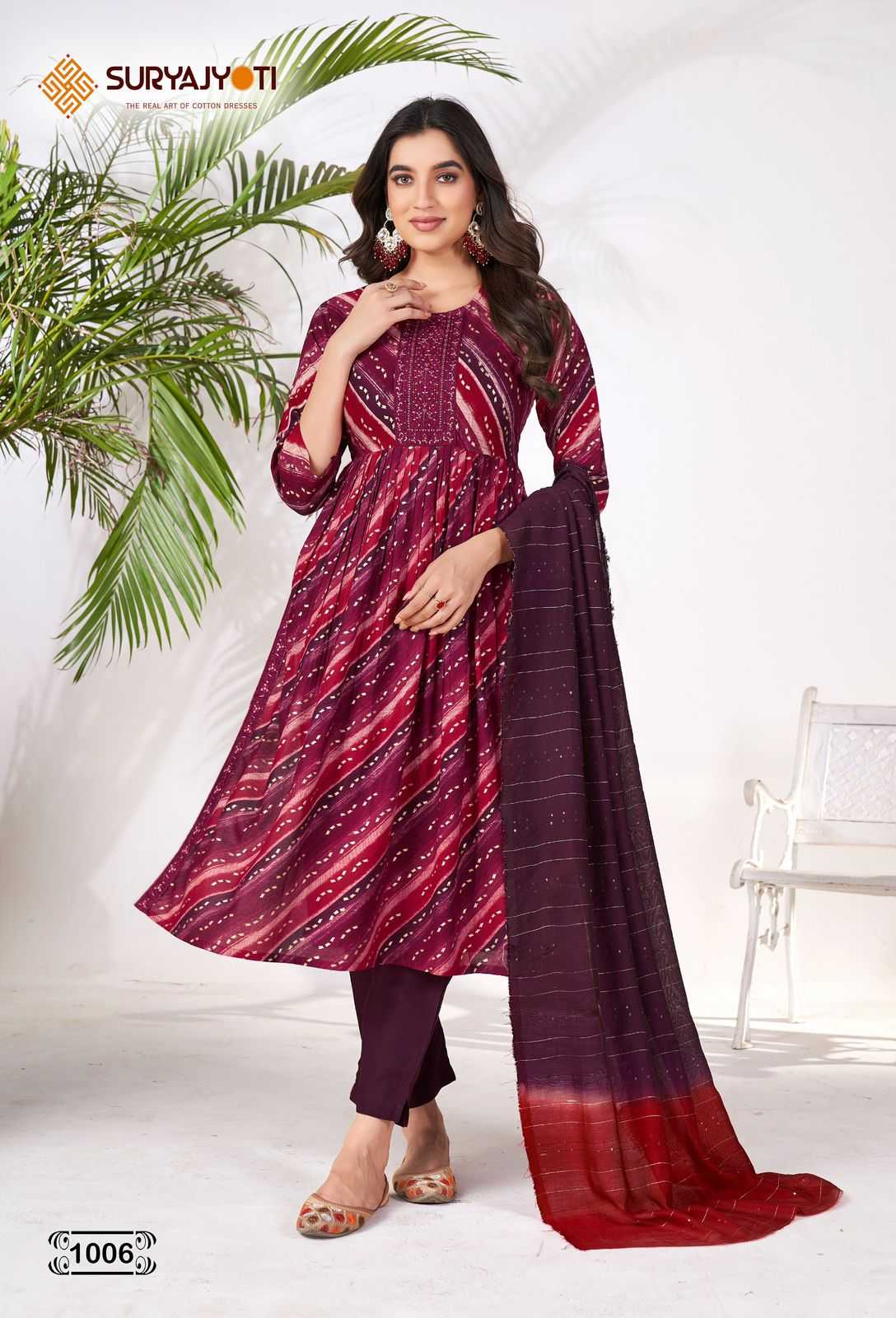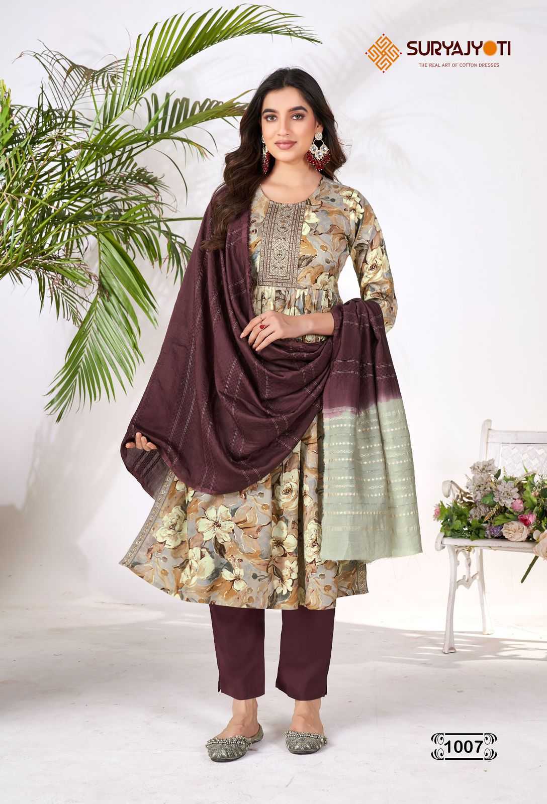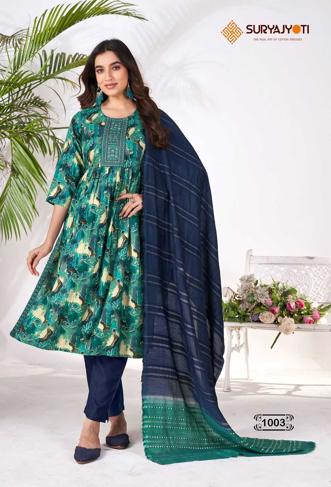 nandani vol 1 by suryajyoti solid pattern rayon fully stitch top bottom dupatta