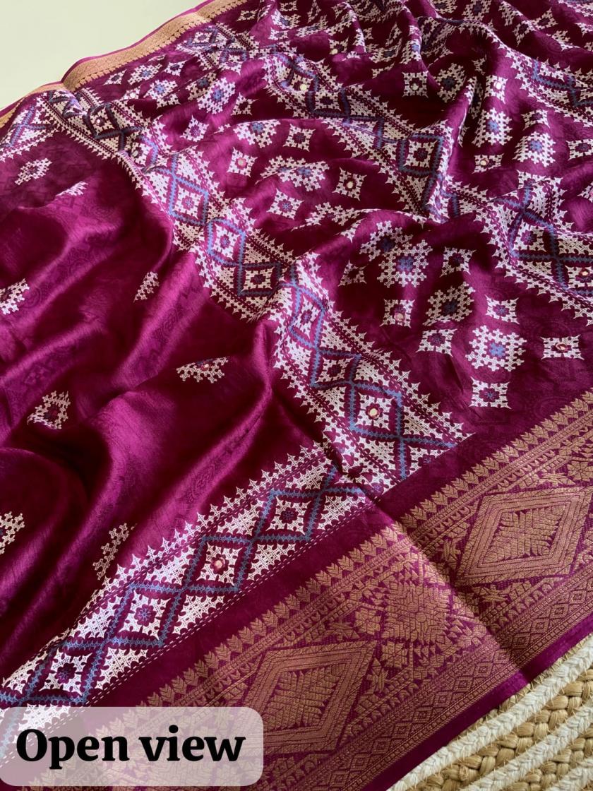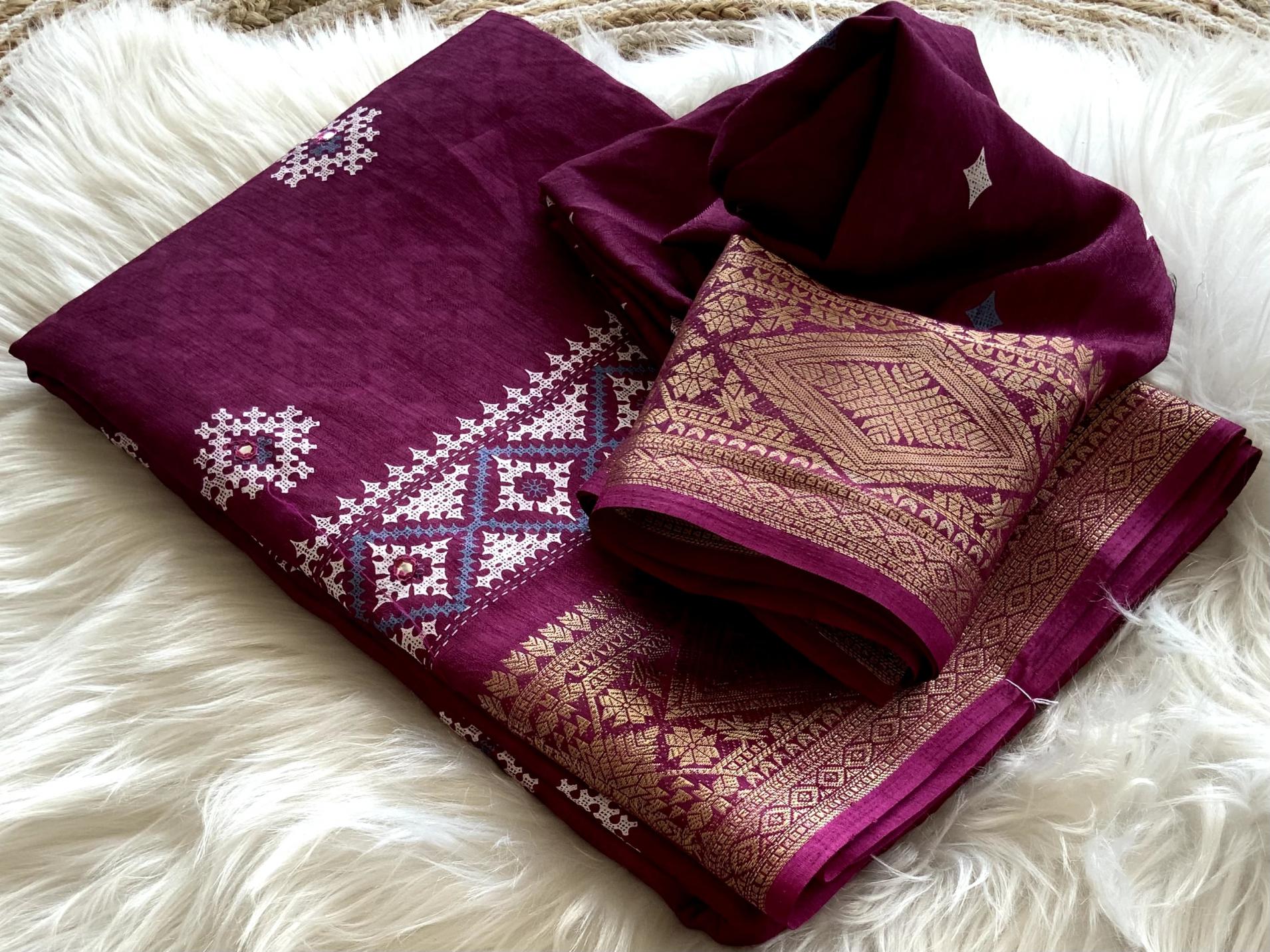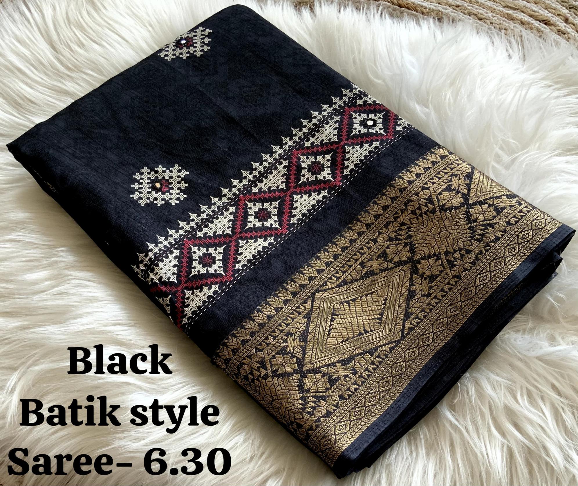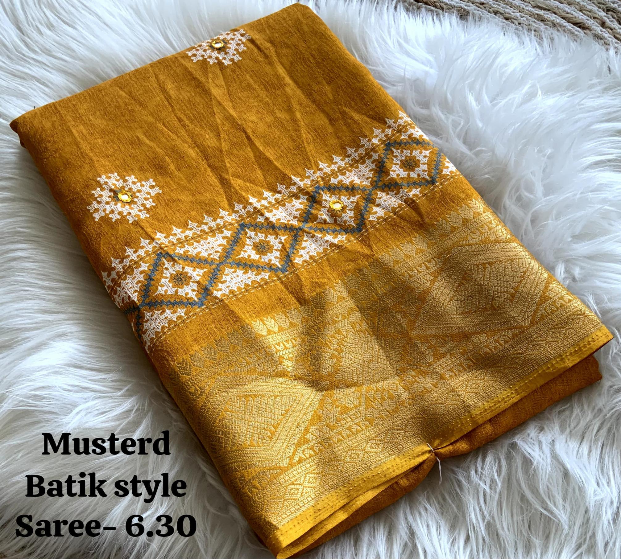 New Arrival AND - Nandini Crape Quality - soft cotton Crape Batik print with mirror work & Tassels woven zari border. Blouse - Running separate Print Blouse. Rate - 650+ship Top Trusted quality from AND. |