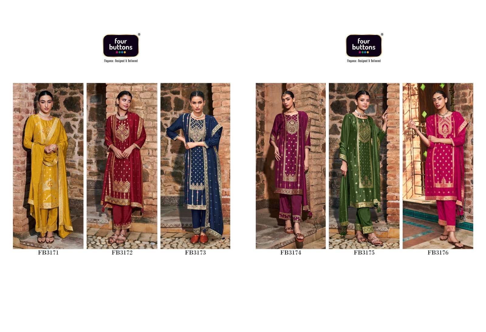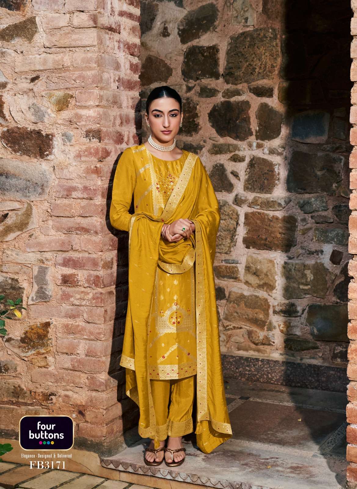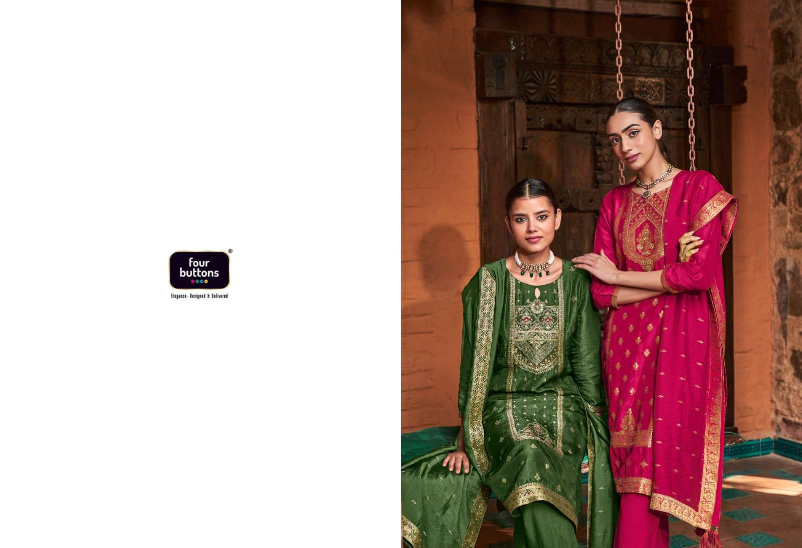 naqashi vol 2 by four buttons dola silk jacquard readymade 3 piece suits
