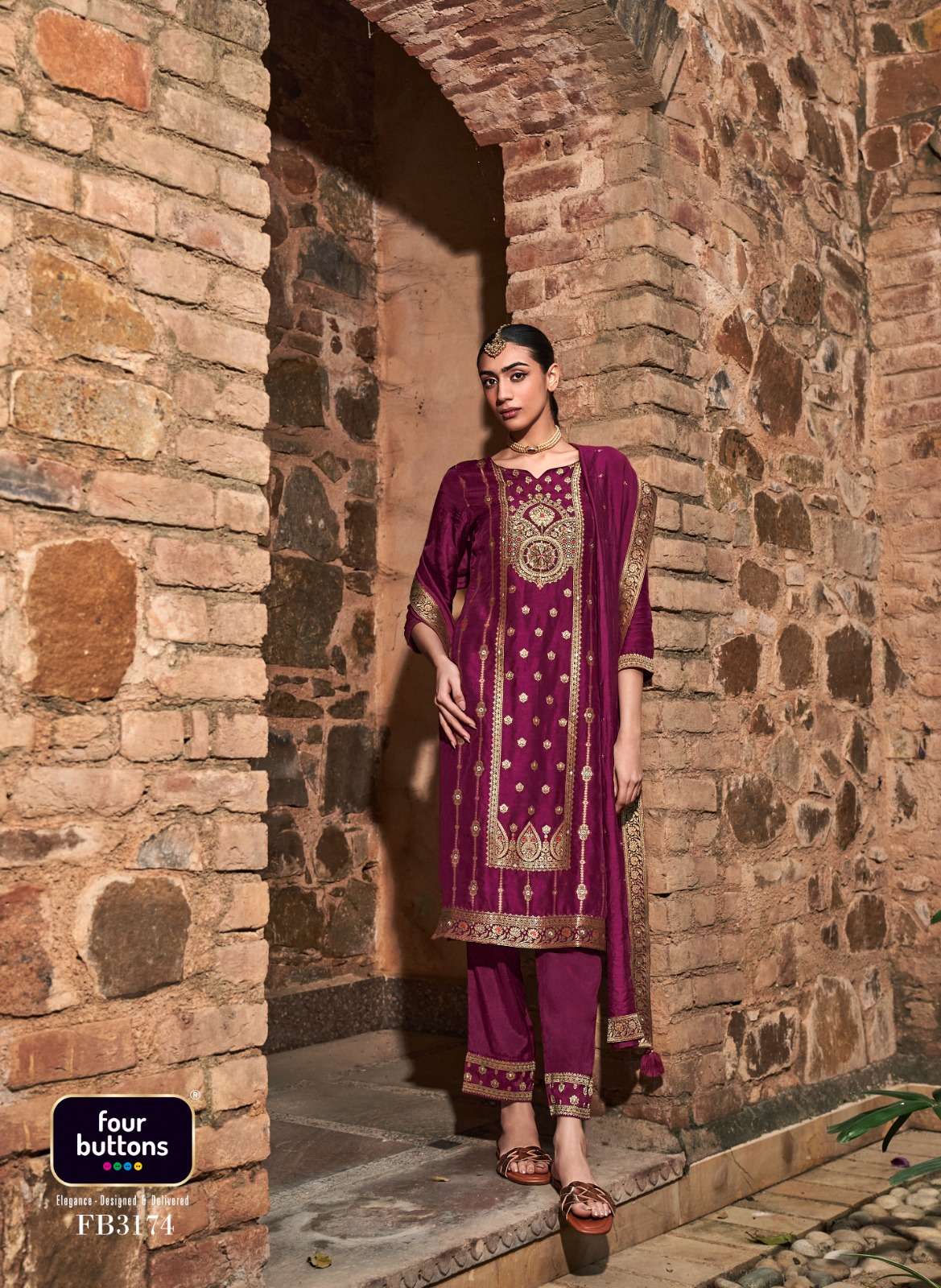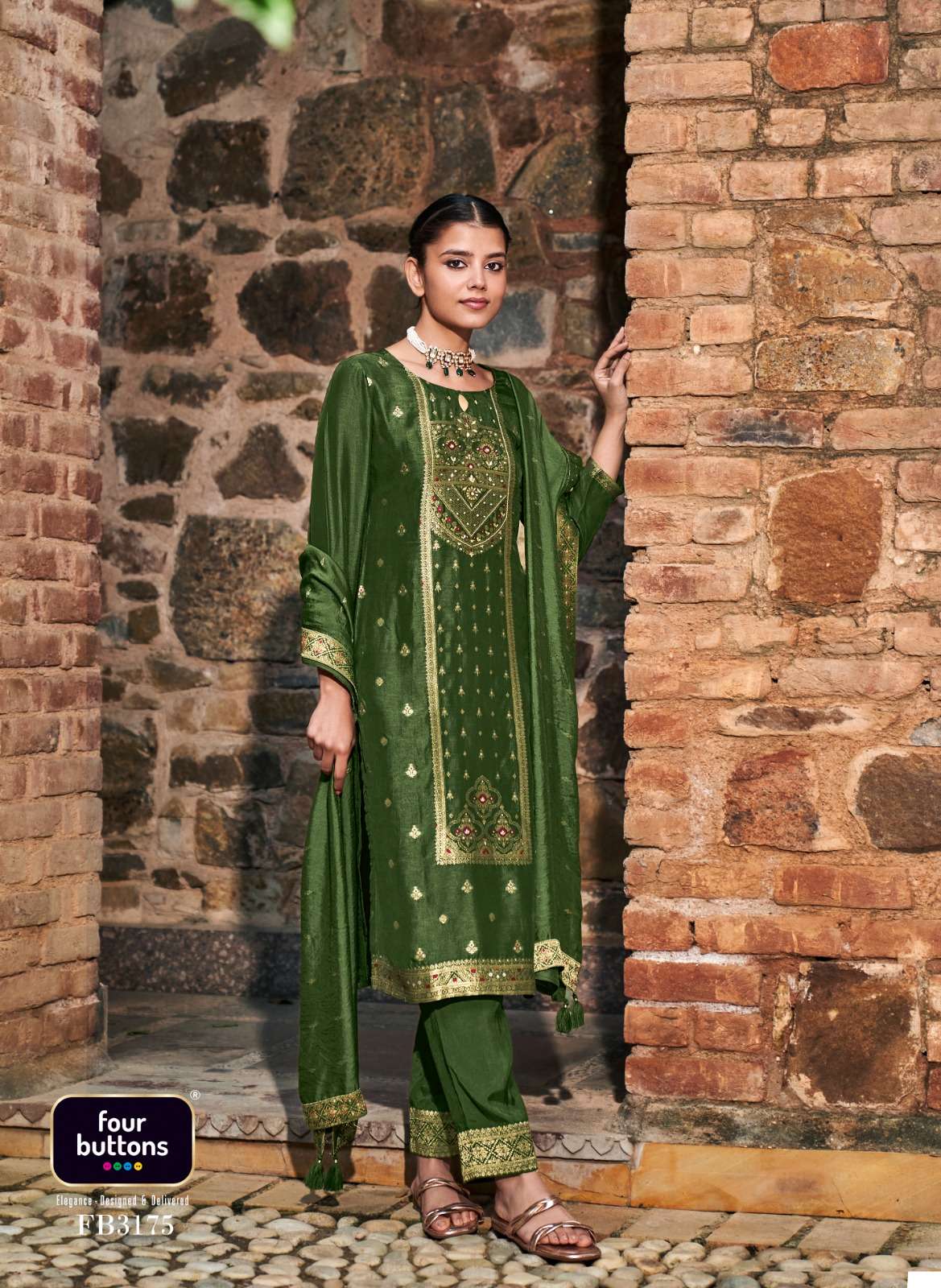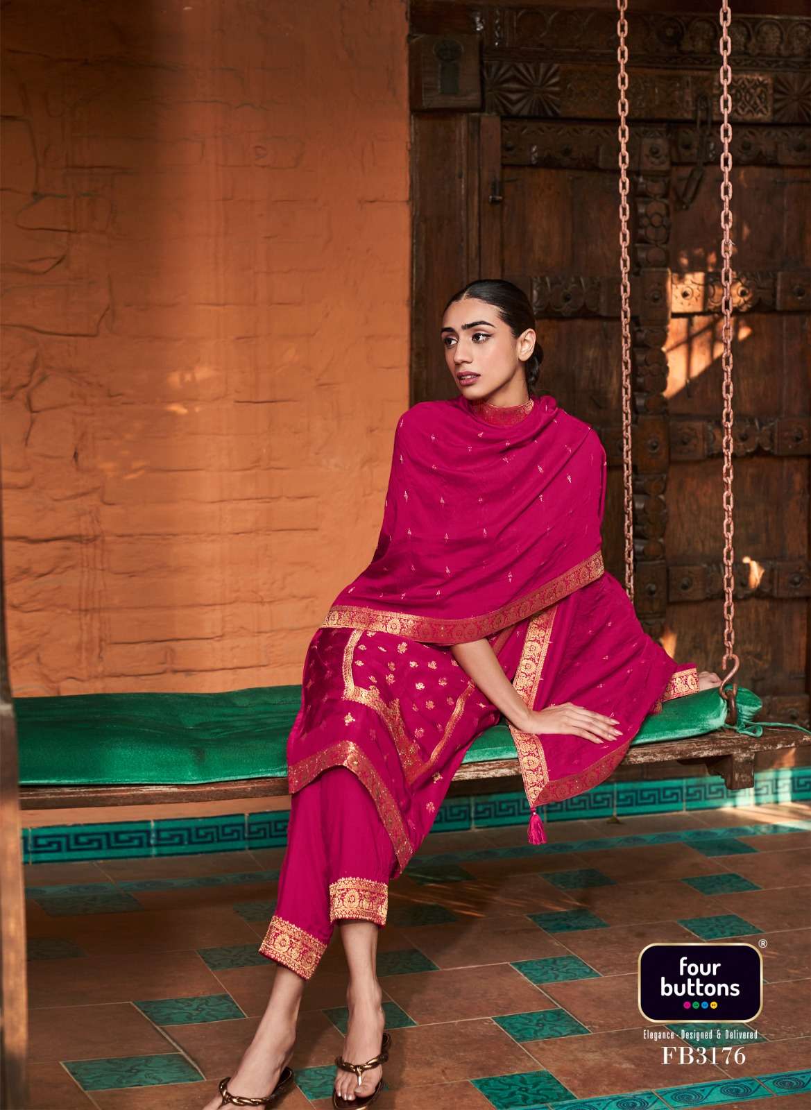 naqashi vol 2 by four buttons dola silk jacquard readymade 3 piece suits