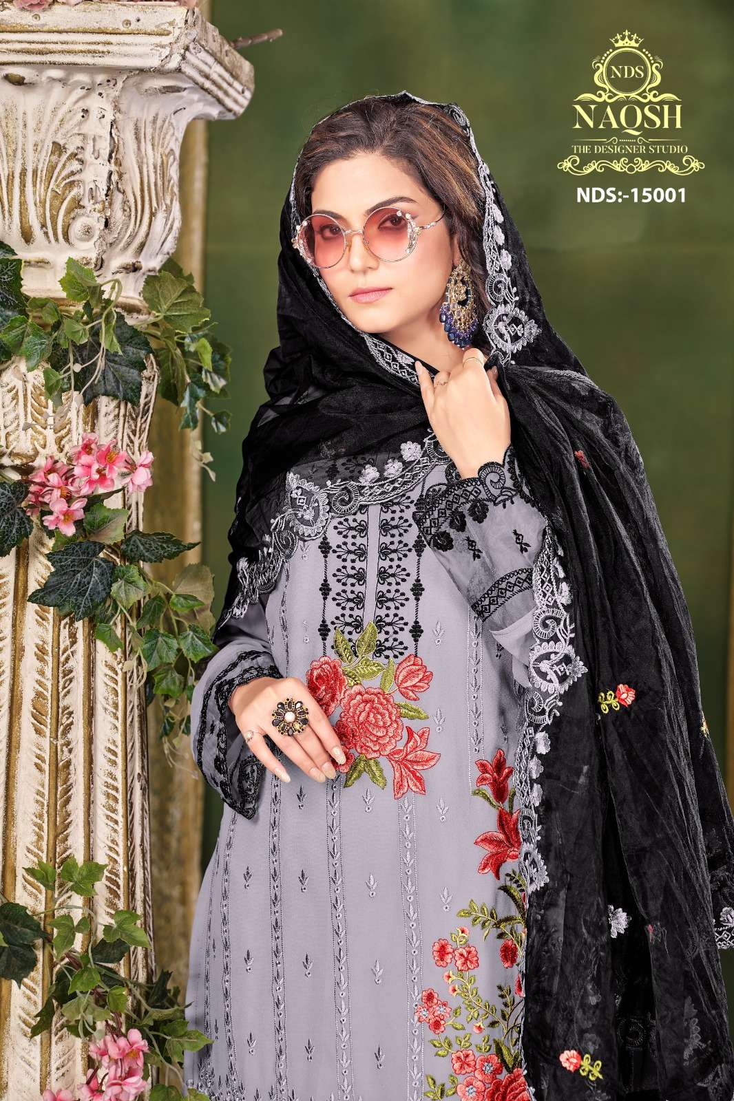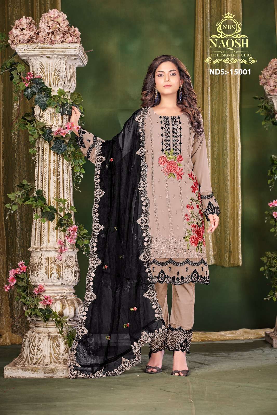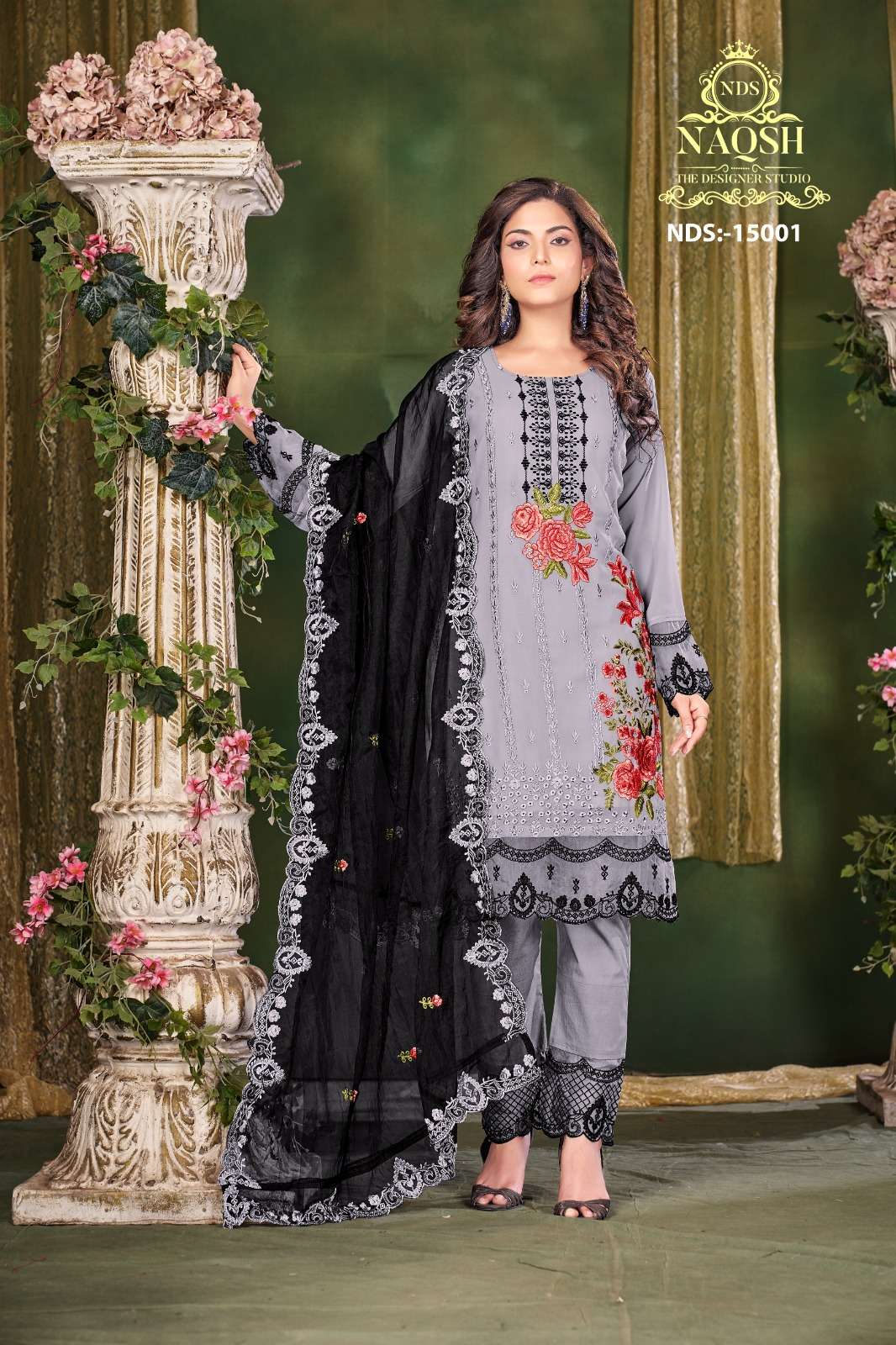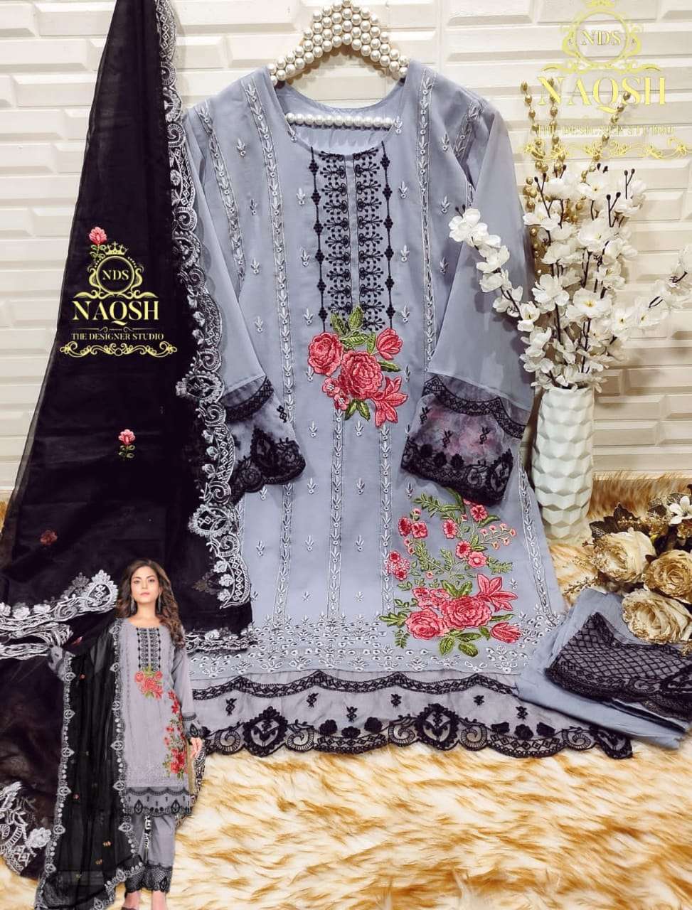 naqsh nds 15001 fancy 3pcs set unique designer work pakistani kurti with pant and organza dupatta