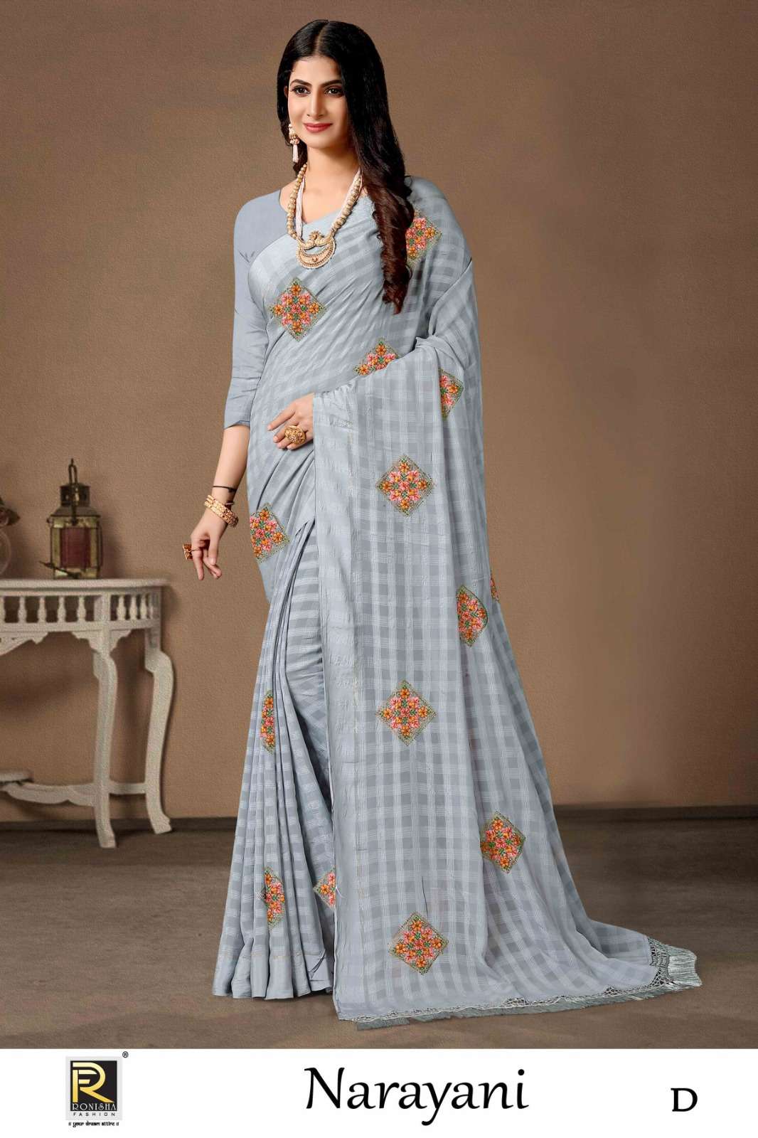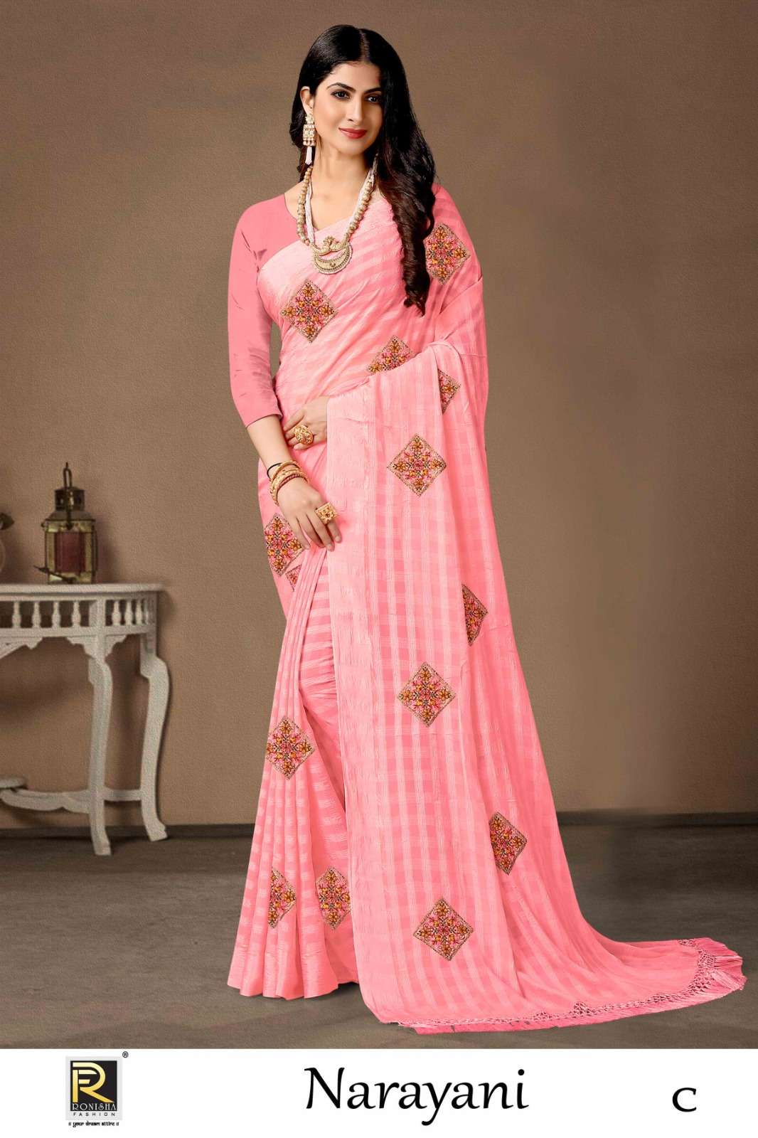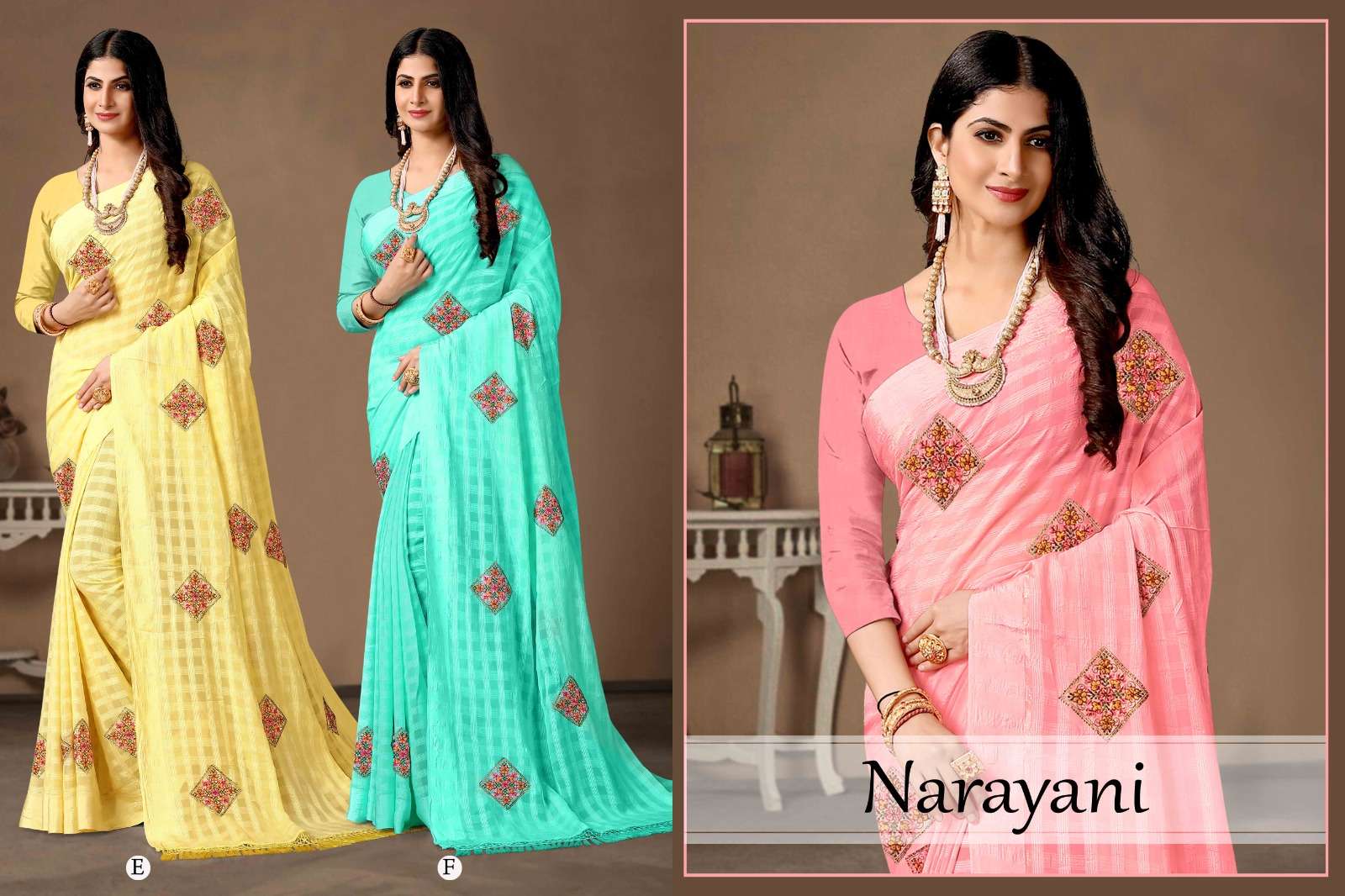 NARAYANI BY RANJNA SAREE FANCY FABRICS SELF PETTERN WITH EMBROIDERY WORK AND SIROSKI DIAMOND WORK SUPER HIT COLLECTION