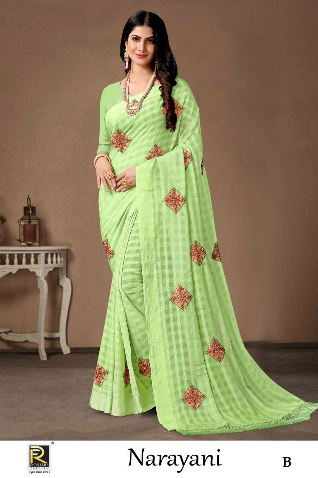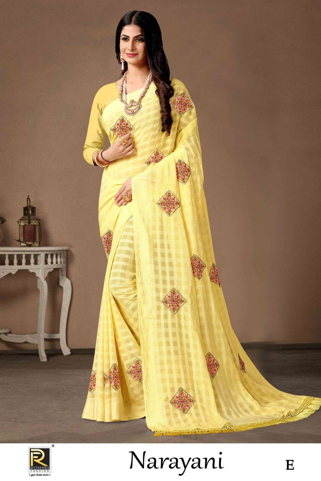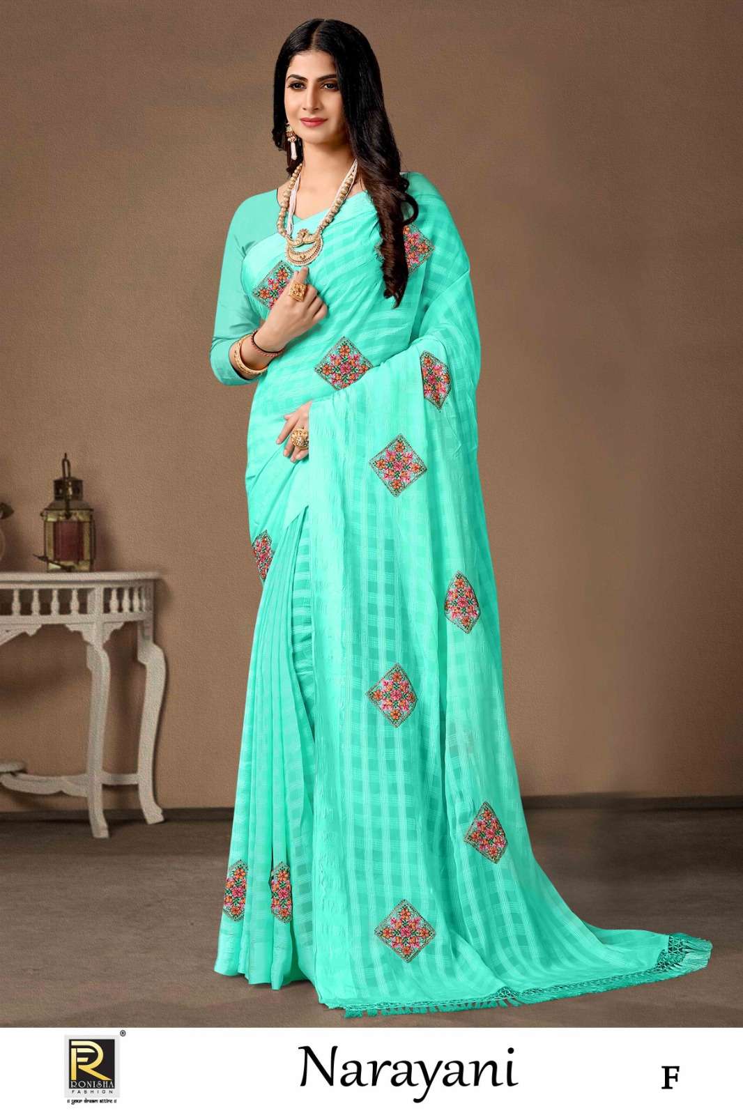 NARAYANI BY RANJNA SAREE FANCY FABRICS SELF PETTERN WITH EMBROIDERY WORK AND SIROSKI DIAMOND WORK SUPER HIT COLLECTION