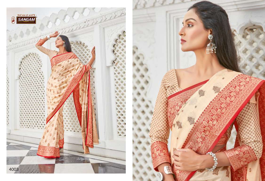 Sangam Prints Presents Latest Collection Launched on 08-08-2022. Presenting Beautiful collection of 4 PCS with Unstitched .
