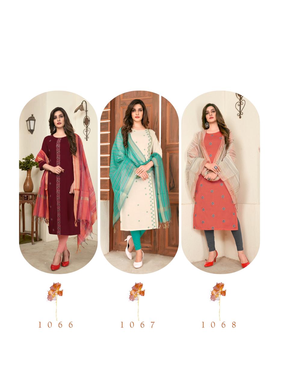 🔆RIJIYA TRENDS🔆 ————————— Kurti with dupatta ————————— Set of 6 pieces Fabric: (Top) Rayon slub 14 kg (Dupatta) Banarasi Pattern: Embroidery work Size: M(38), L(40), XL(42), XXL(44), XXXL(46) Rate: ₹ 555/- + {5% gst} Note: Colours in real may slight vary from as seen in photos Dispatch: 12/02/2021 |