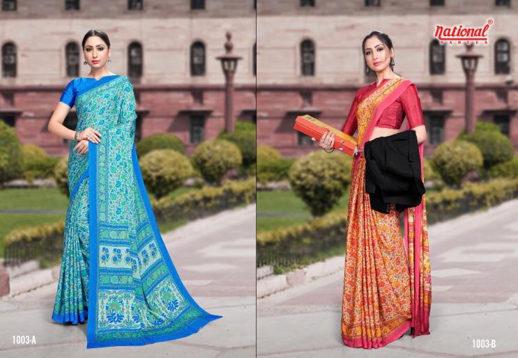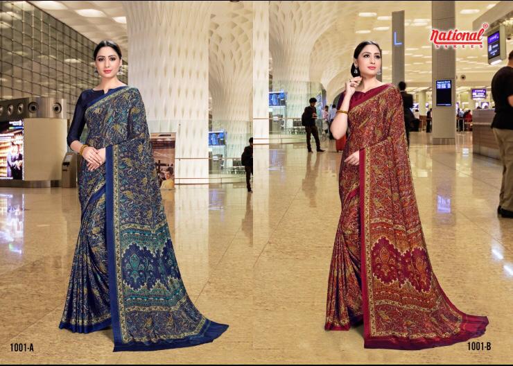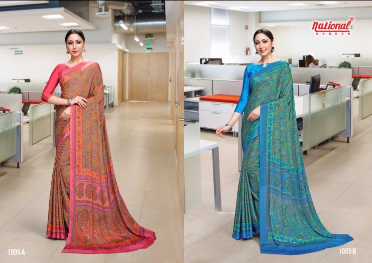 Brand-National Sarees Name - Miss Universe Uniform Special Fabric- kasturi crape Rate-475/-₹ Min - 30 Pc order |
