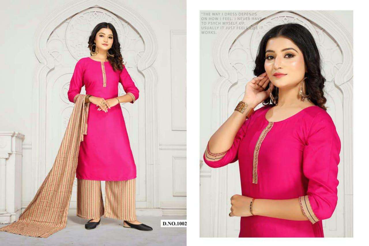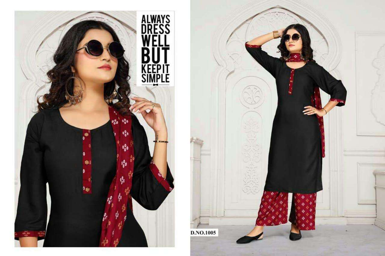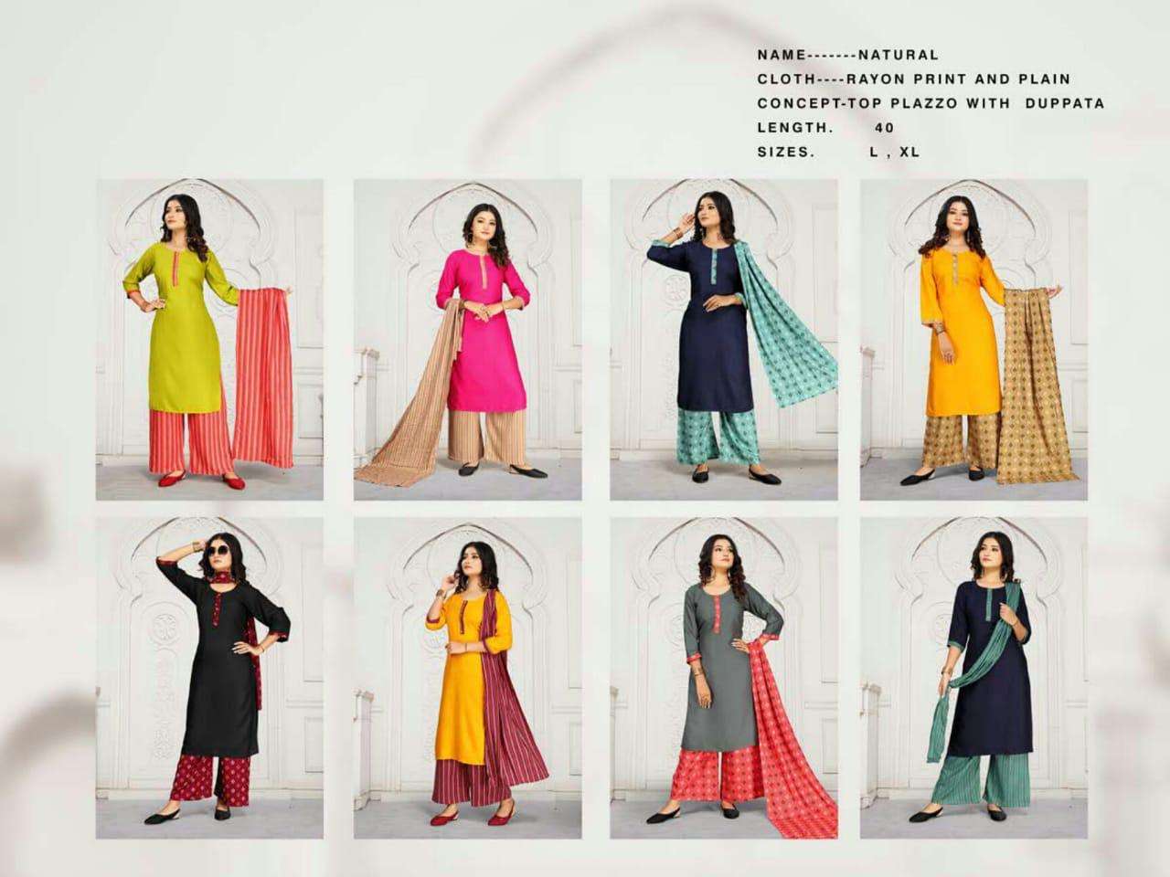 natural by fashion talk heavy rayon plain and print readymade suit catalog collection wholesaler
