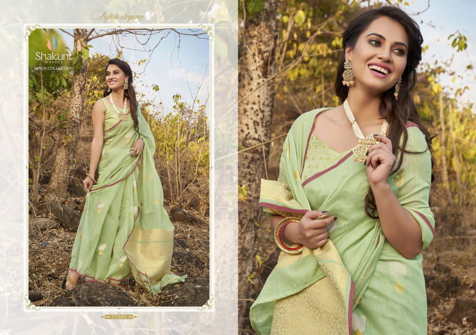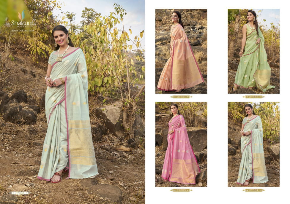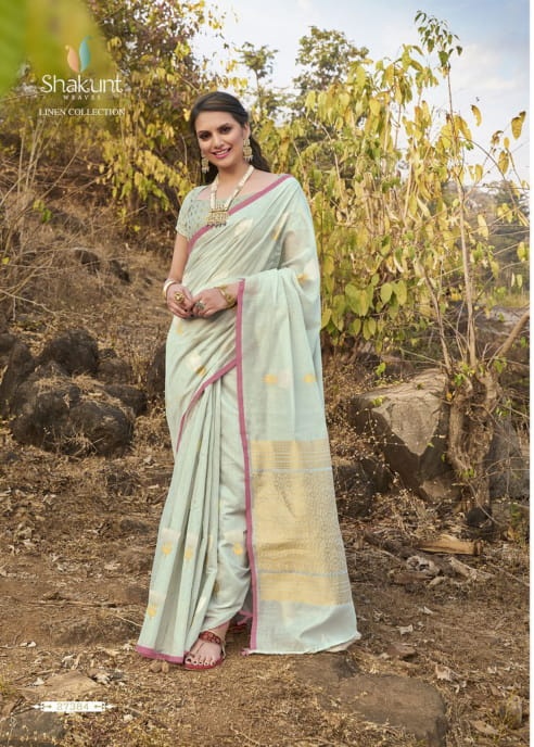 Catlog name - NAVJYOT Fabric- Weaving linen silk Rich Pallu Rate - 1031 per Pcs . Set to set. GST 5 Percent Extra. Delivery from tomorrow |