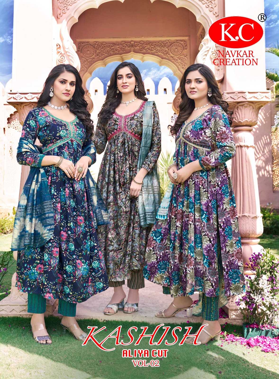 navkar creation kashish vol 2 fullstitch aliya cut kurti pant dupatta
