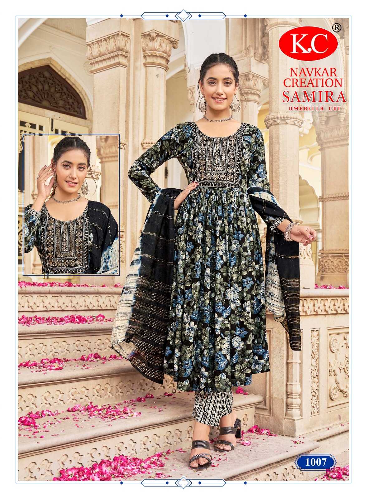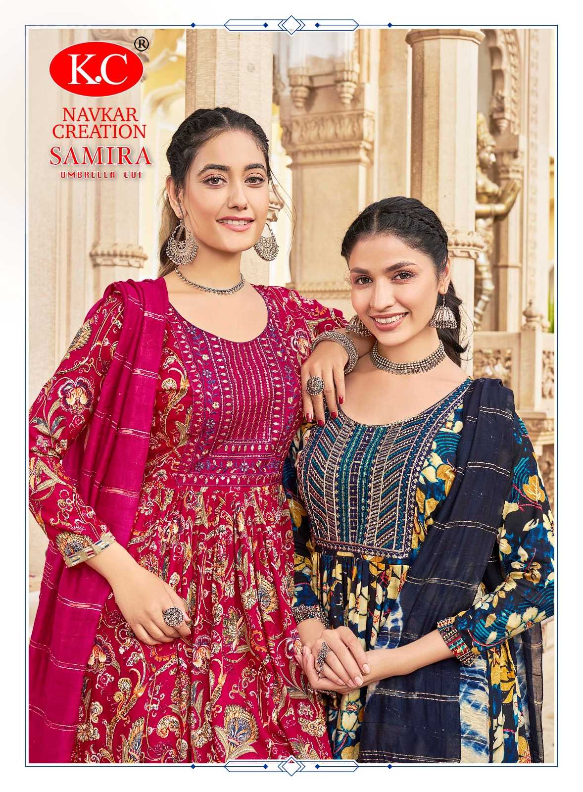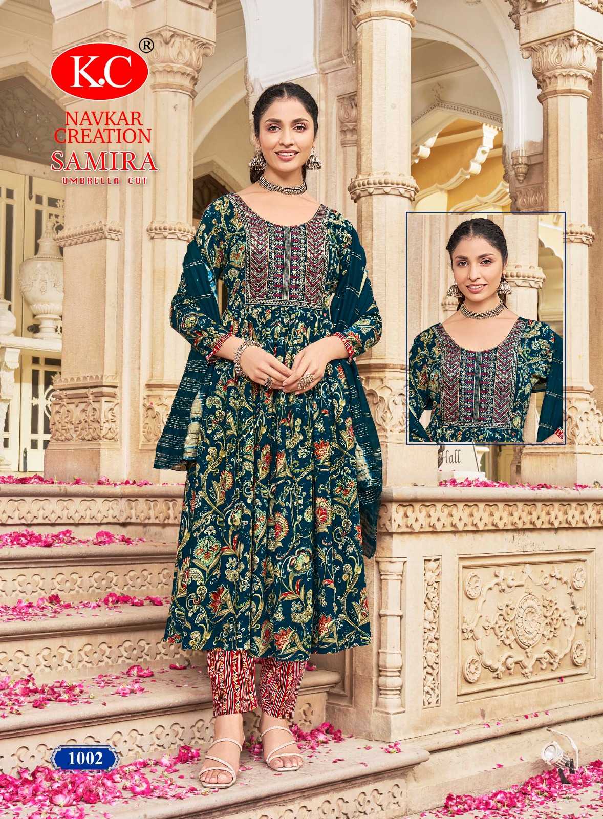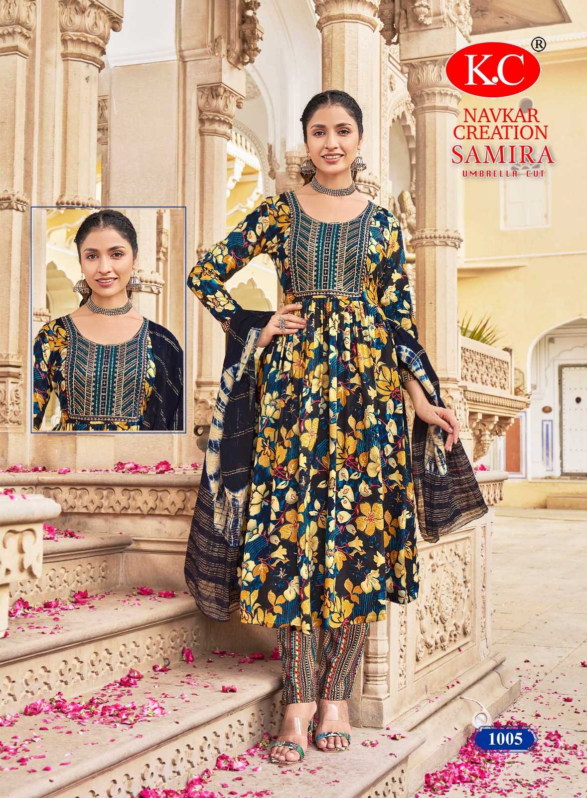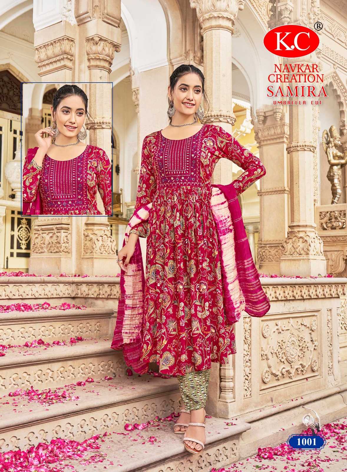 navkar creation samira vol 1 rayon print umbrella cut readymade salwar suit