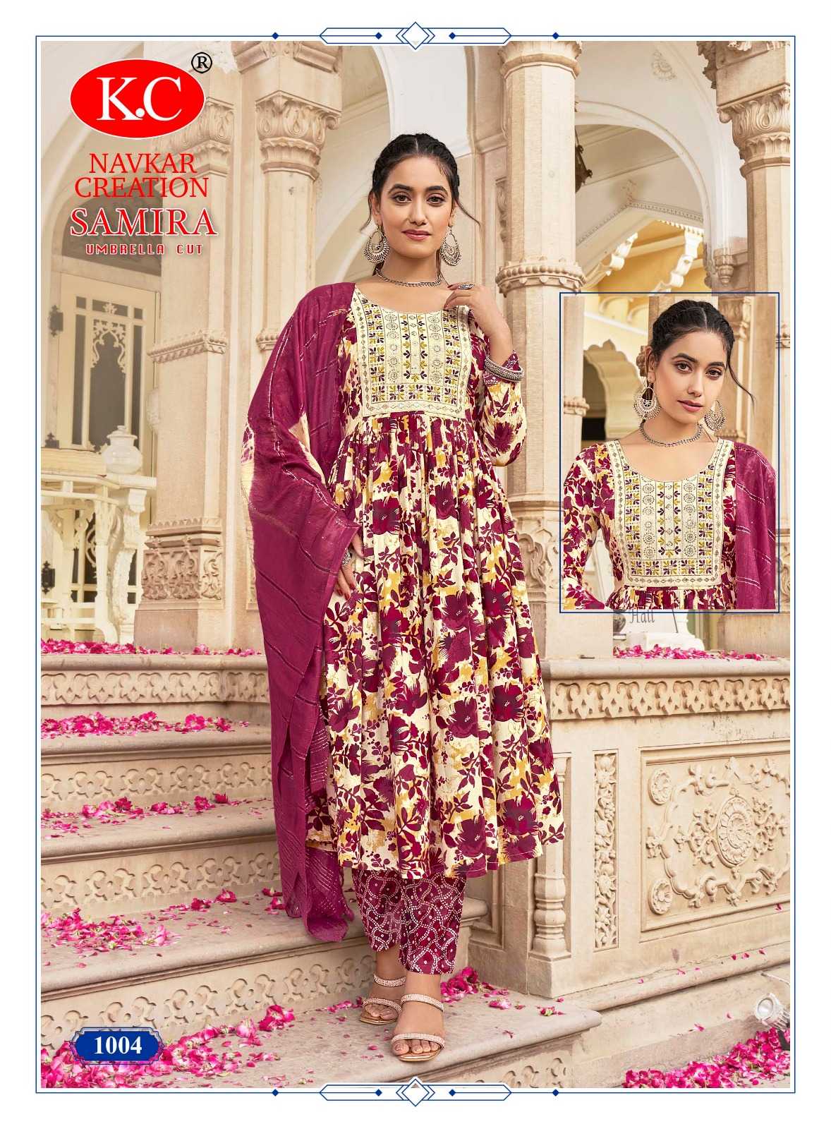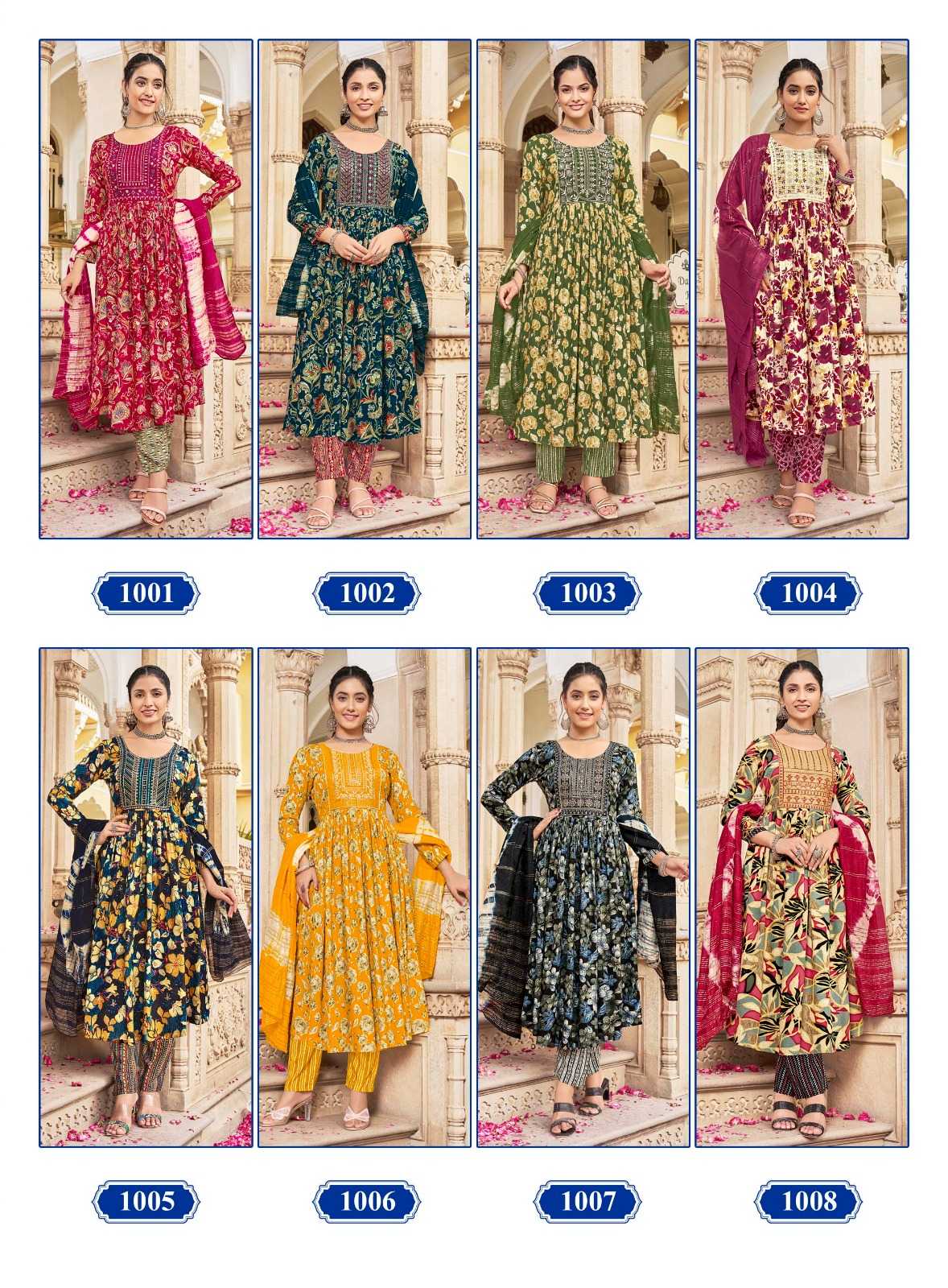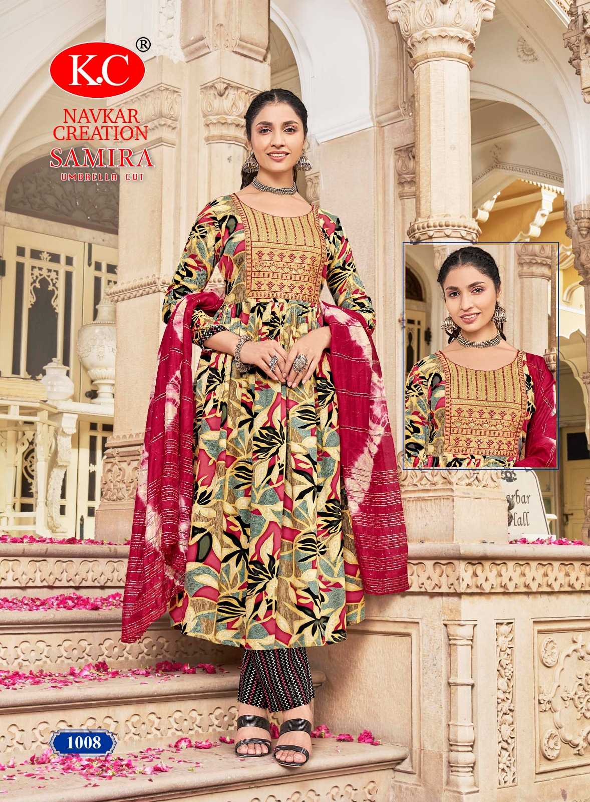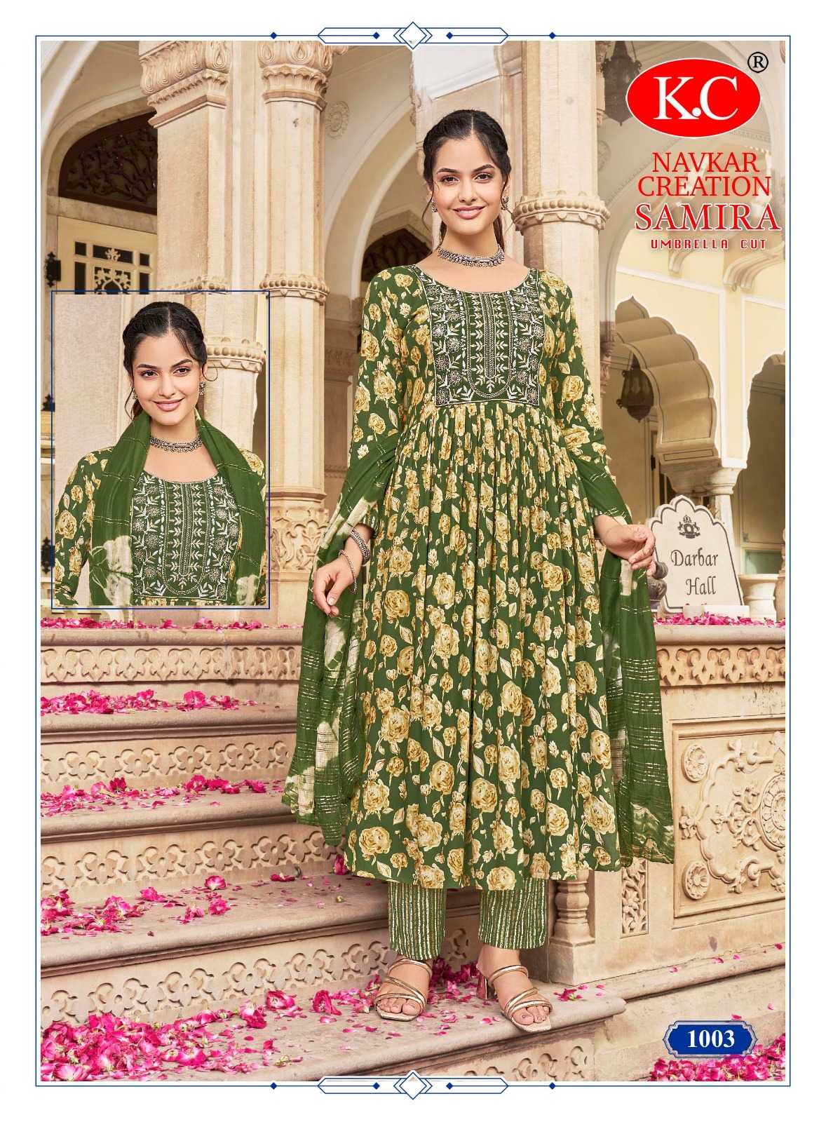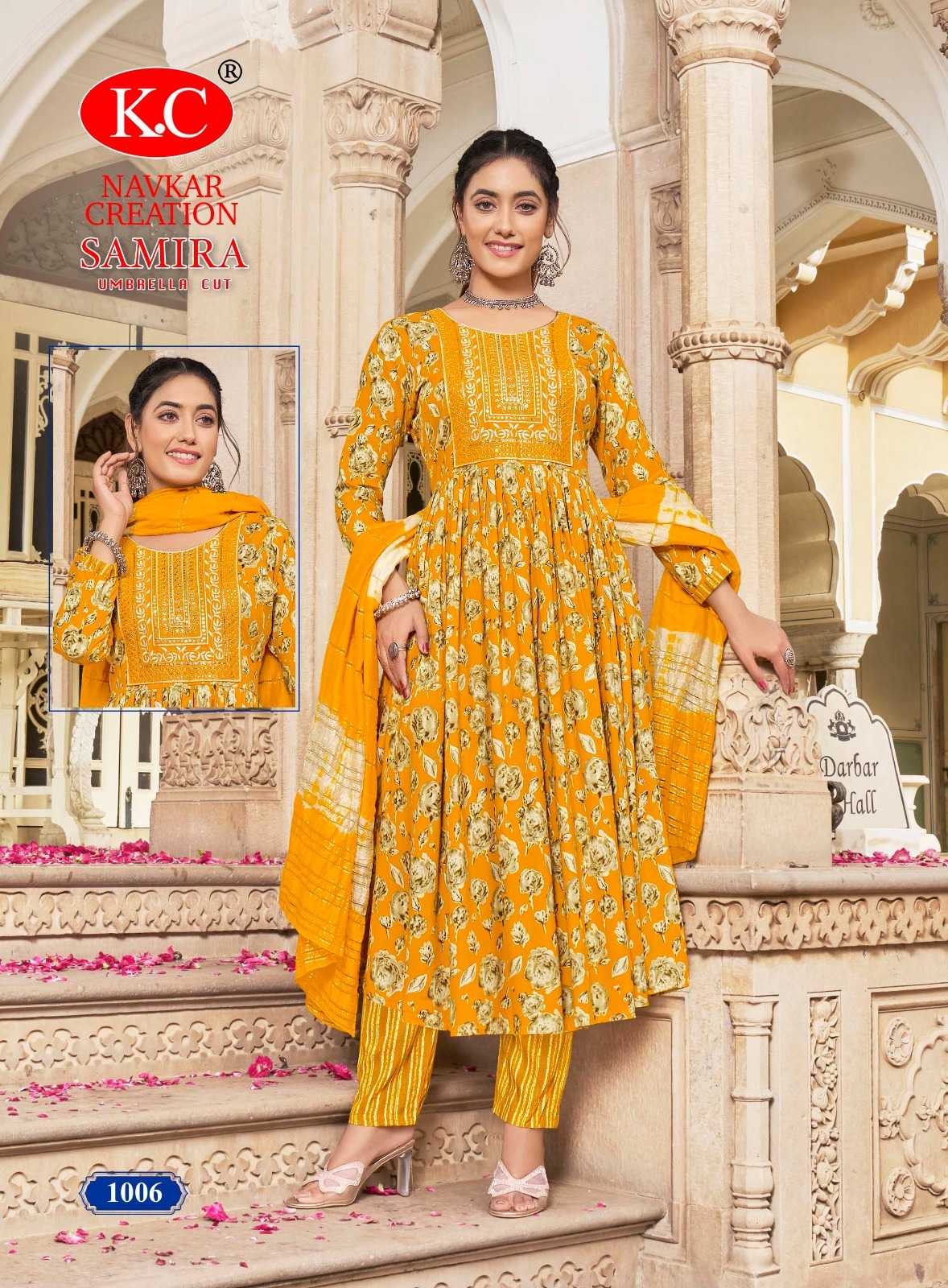 navkar creation samira vol 1 rayon print umbrella cut readymade salwar suit