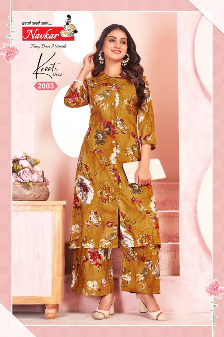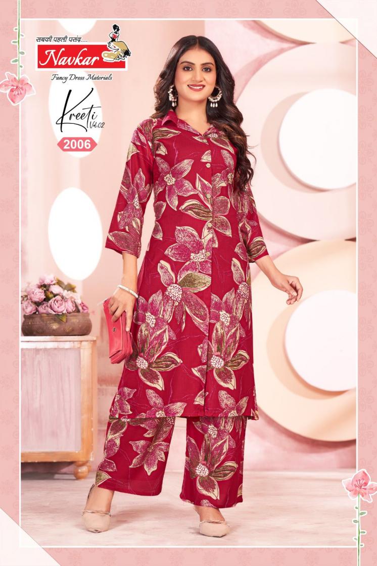 navkar kreeti vol 2 rayon fully stitch classic co-ord set for girls