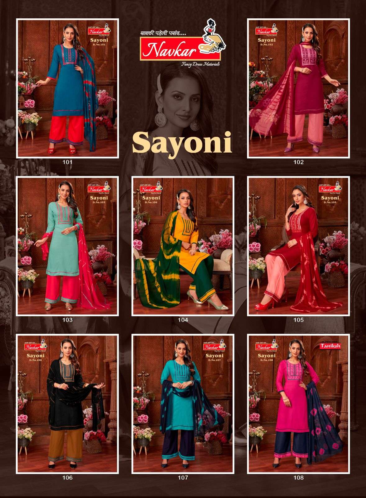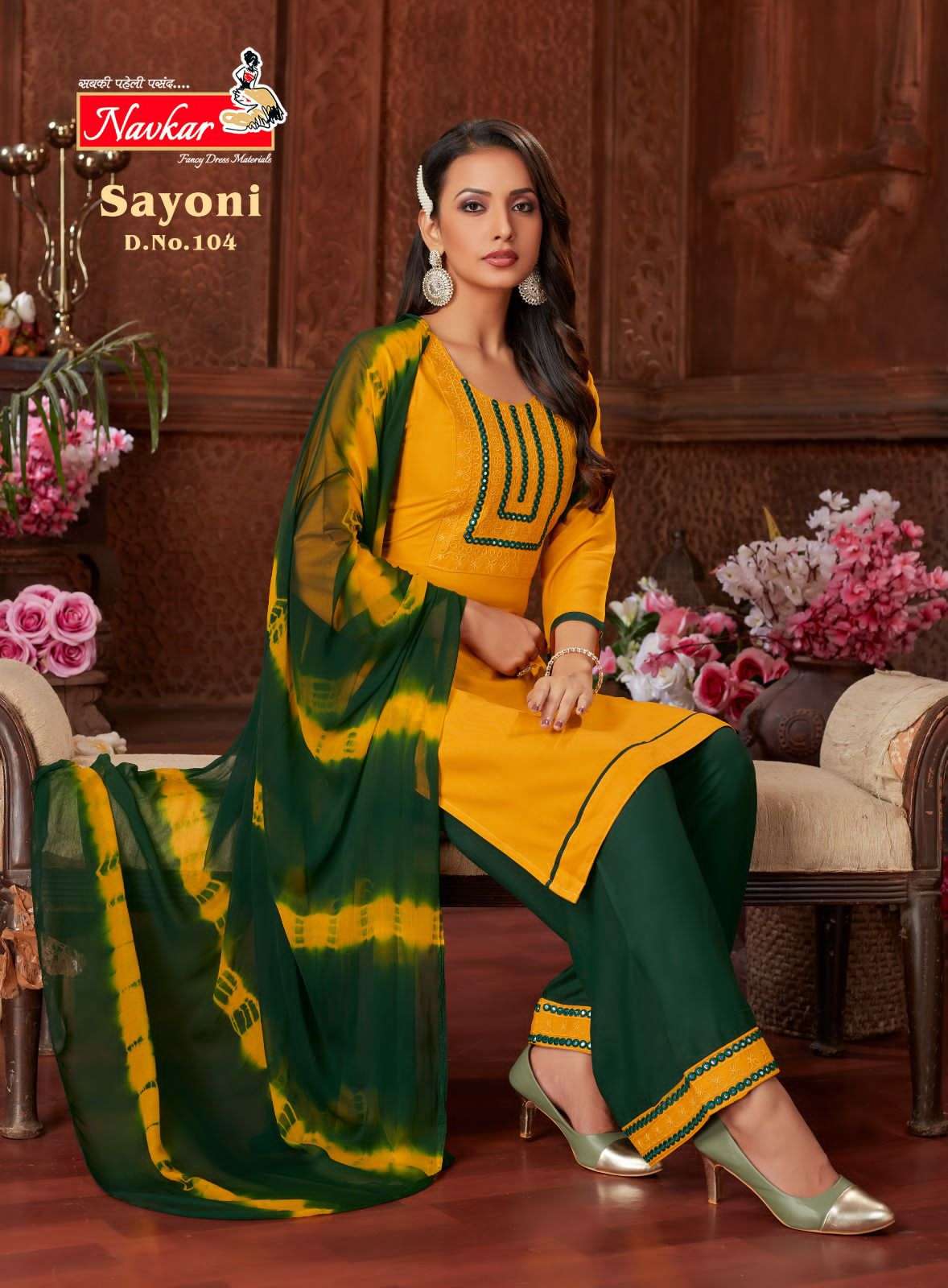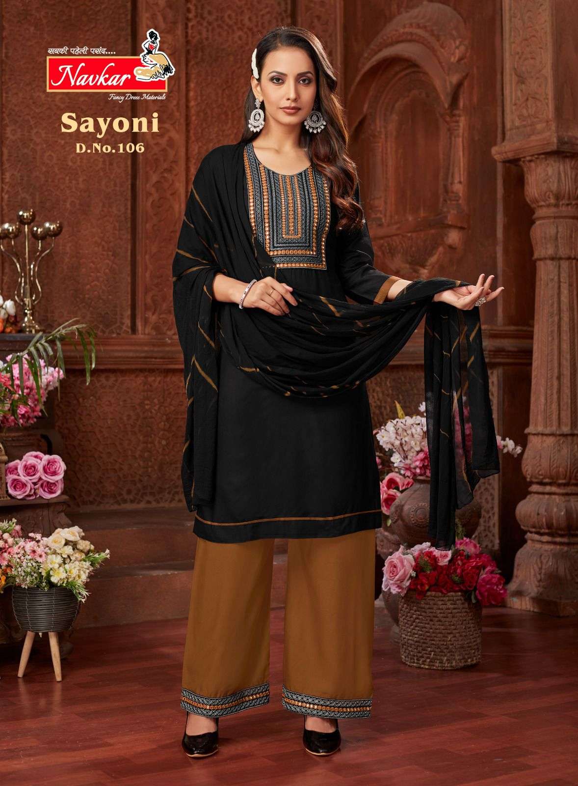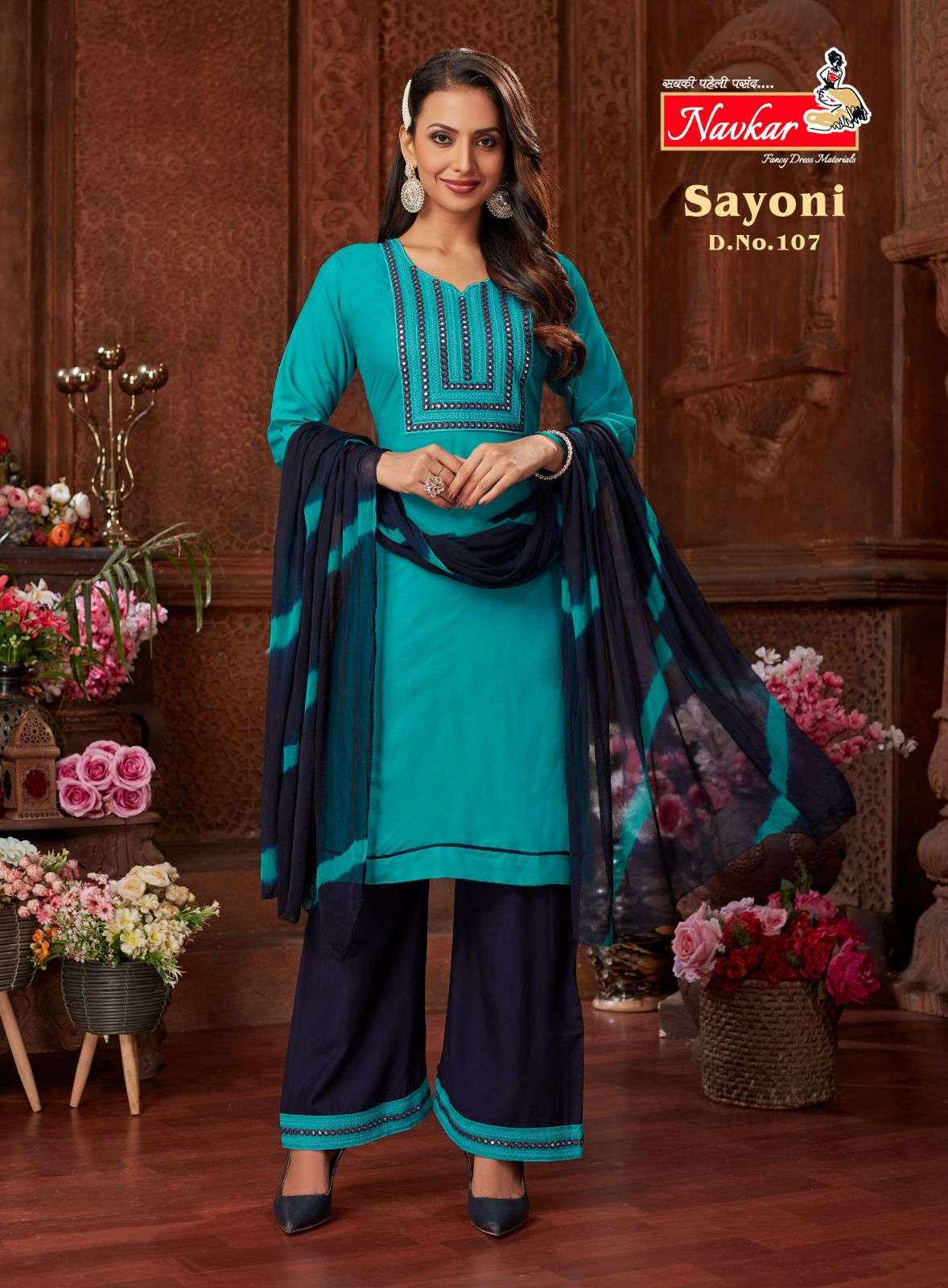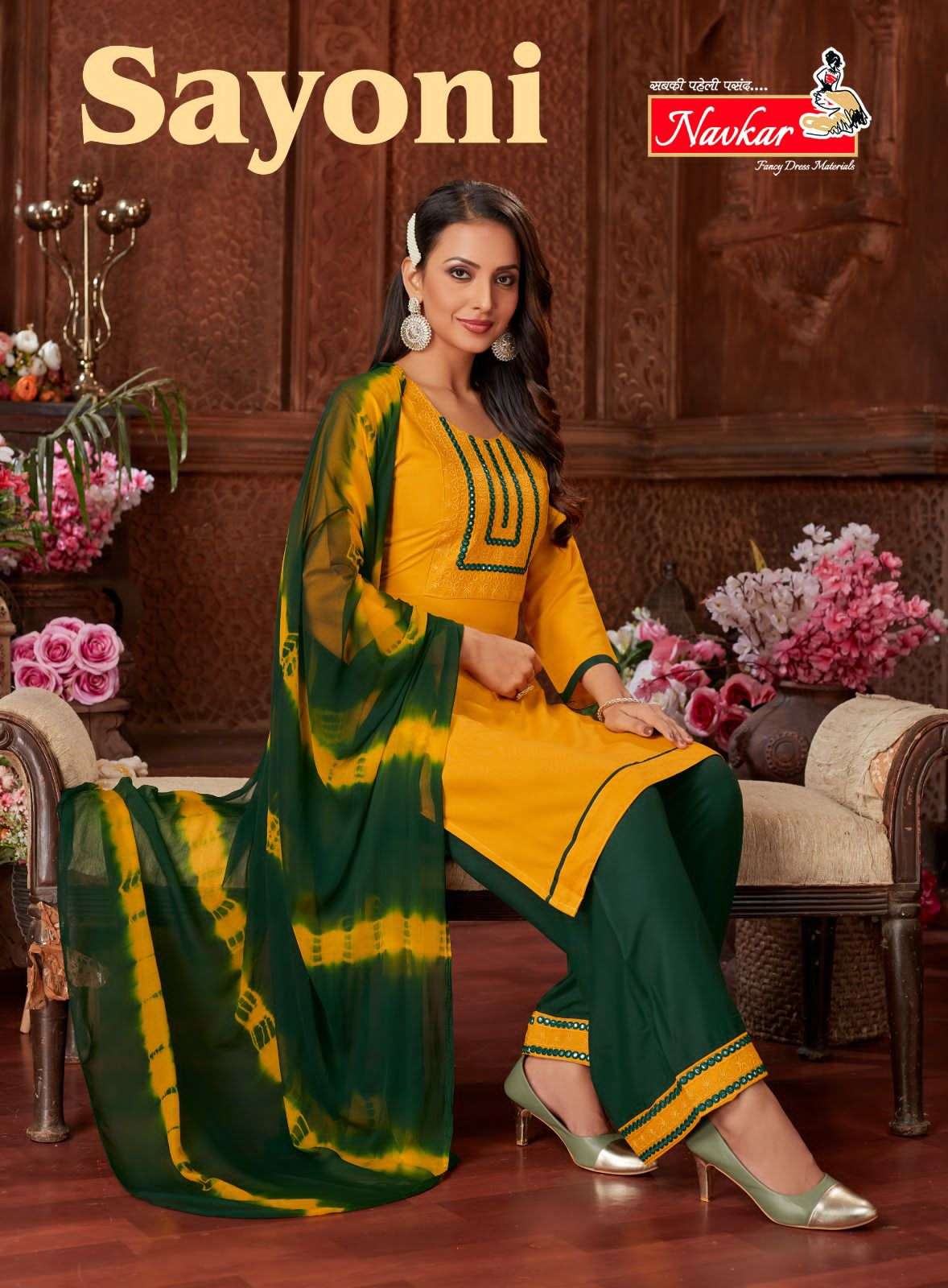 navkar present sayoni 3pcs set fabulous neck work kurti with plazzo and dupatta