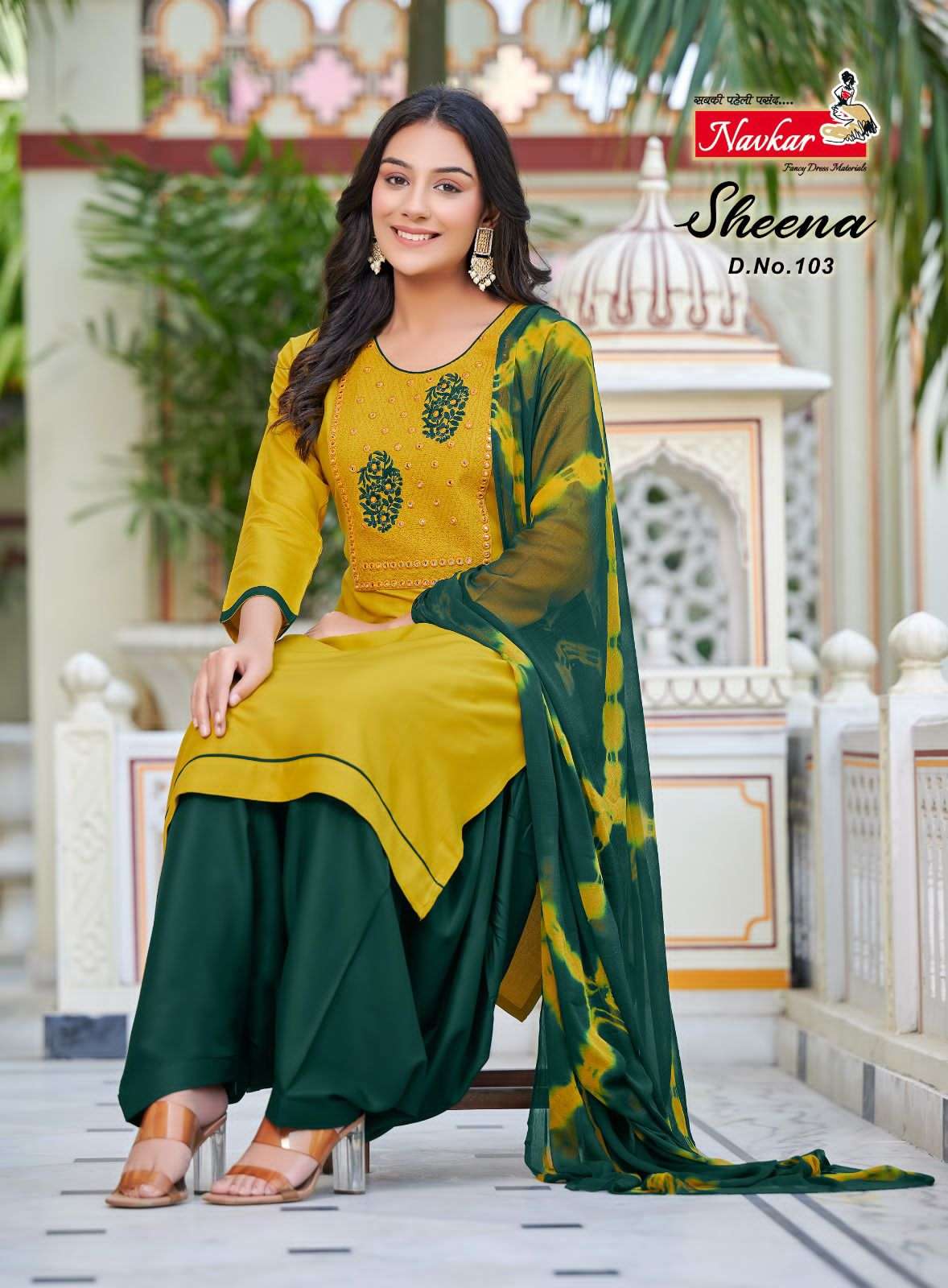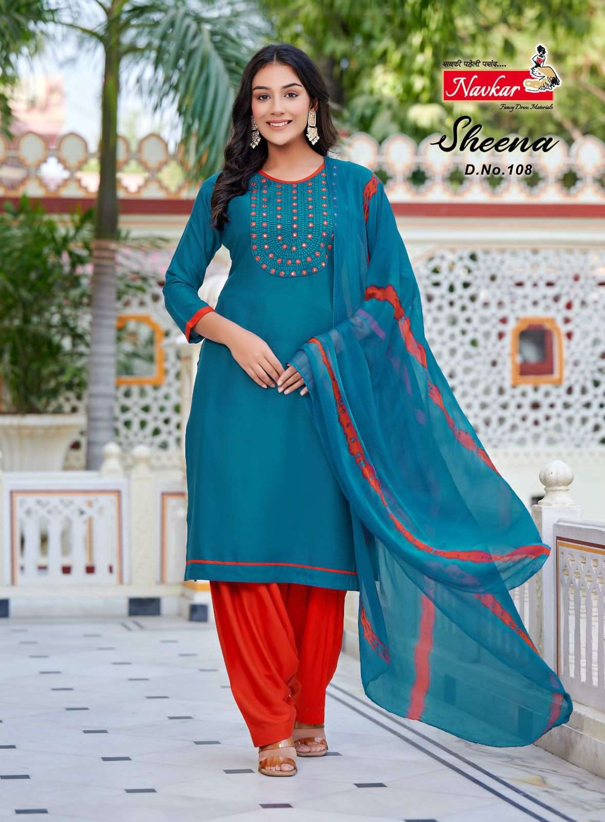navkar sheena rayon fancy kurti pant with dupatta