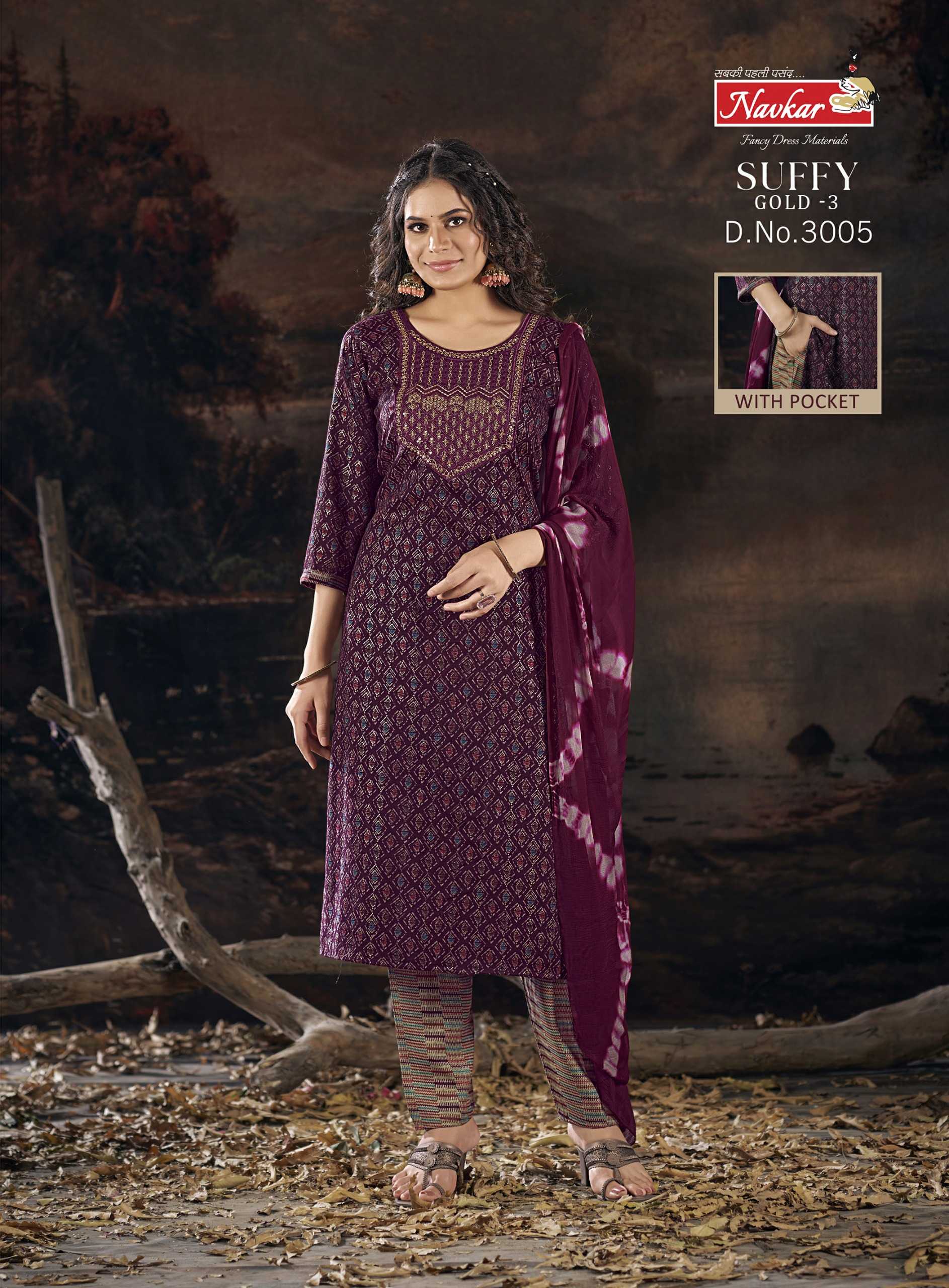 navkar suffy gold vol 3 regular wear rayon embroided full stitch salwar suit