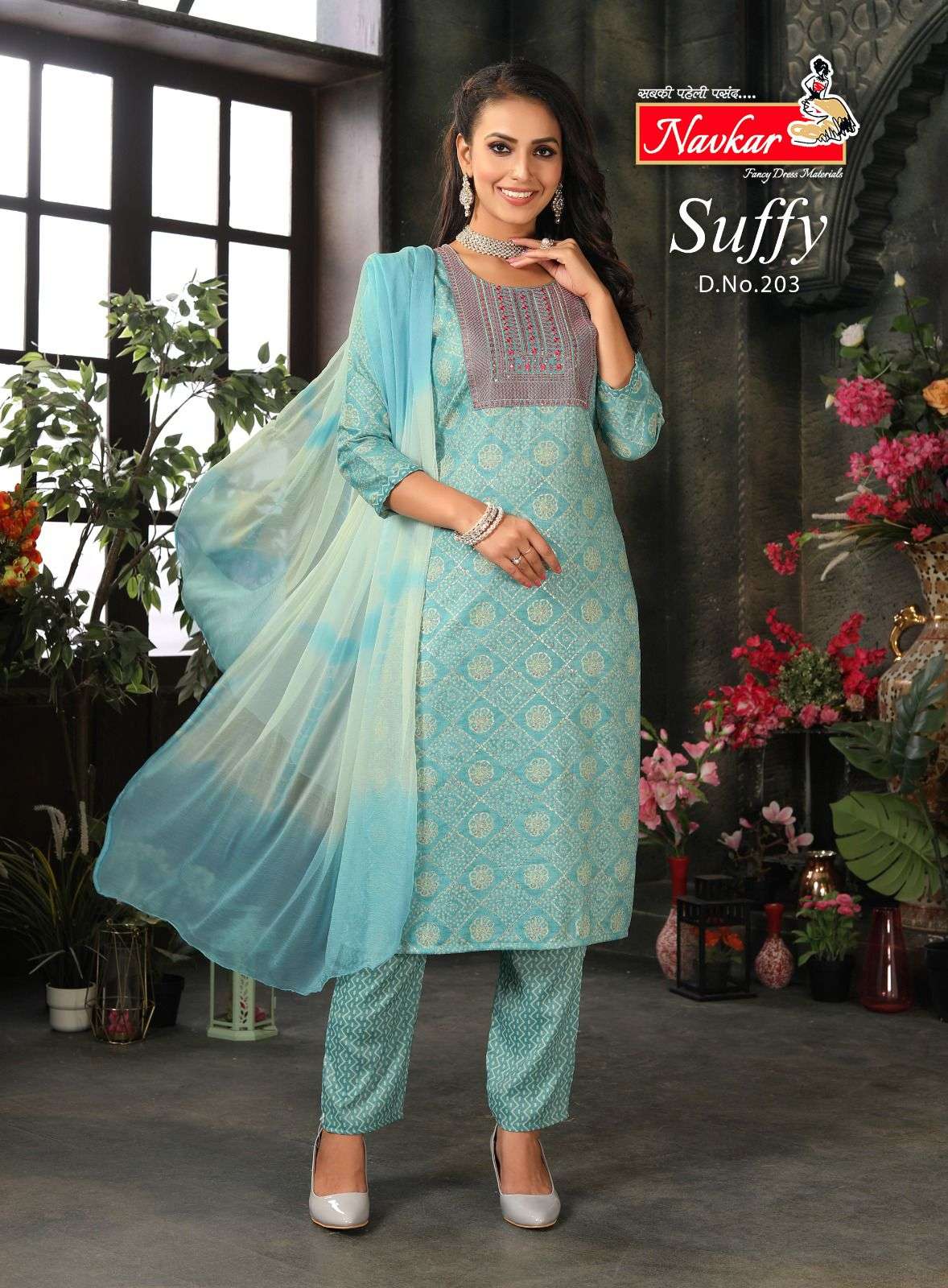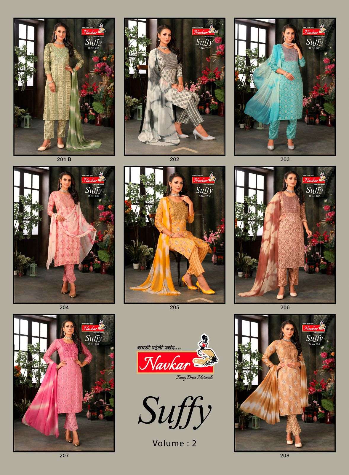 navkar suffy vol 2 rayon fancy embroidery work readymade kurti pant dupatta