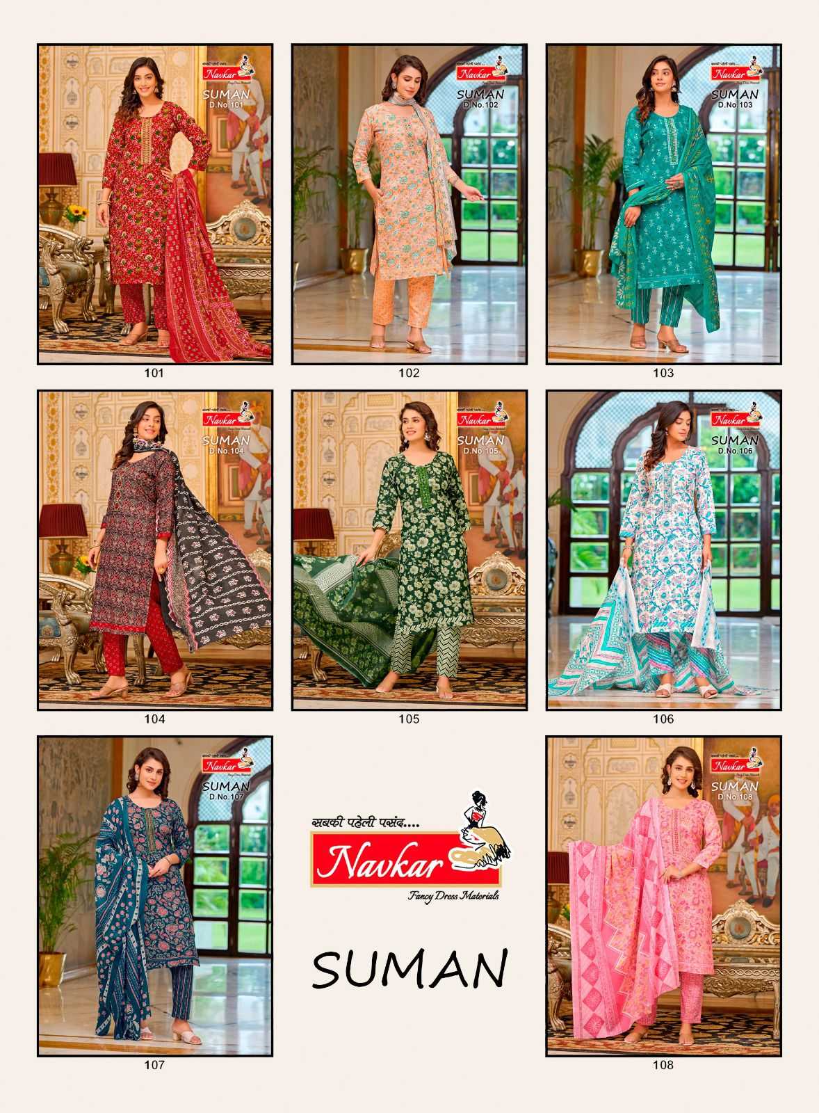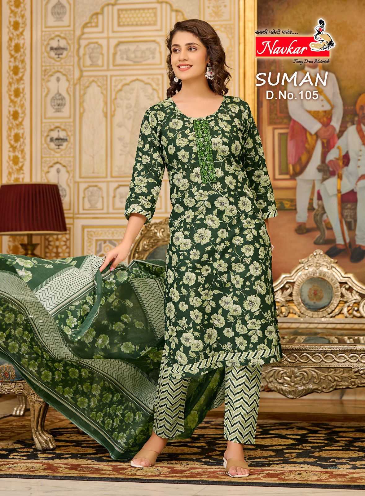 navkar suman vol 1 cotton print embroidery work fully stitch 3pcs dress