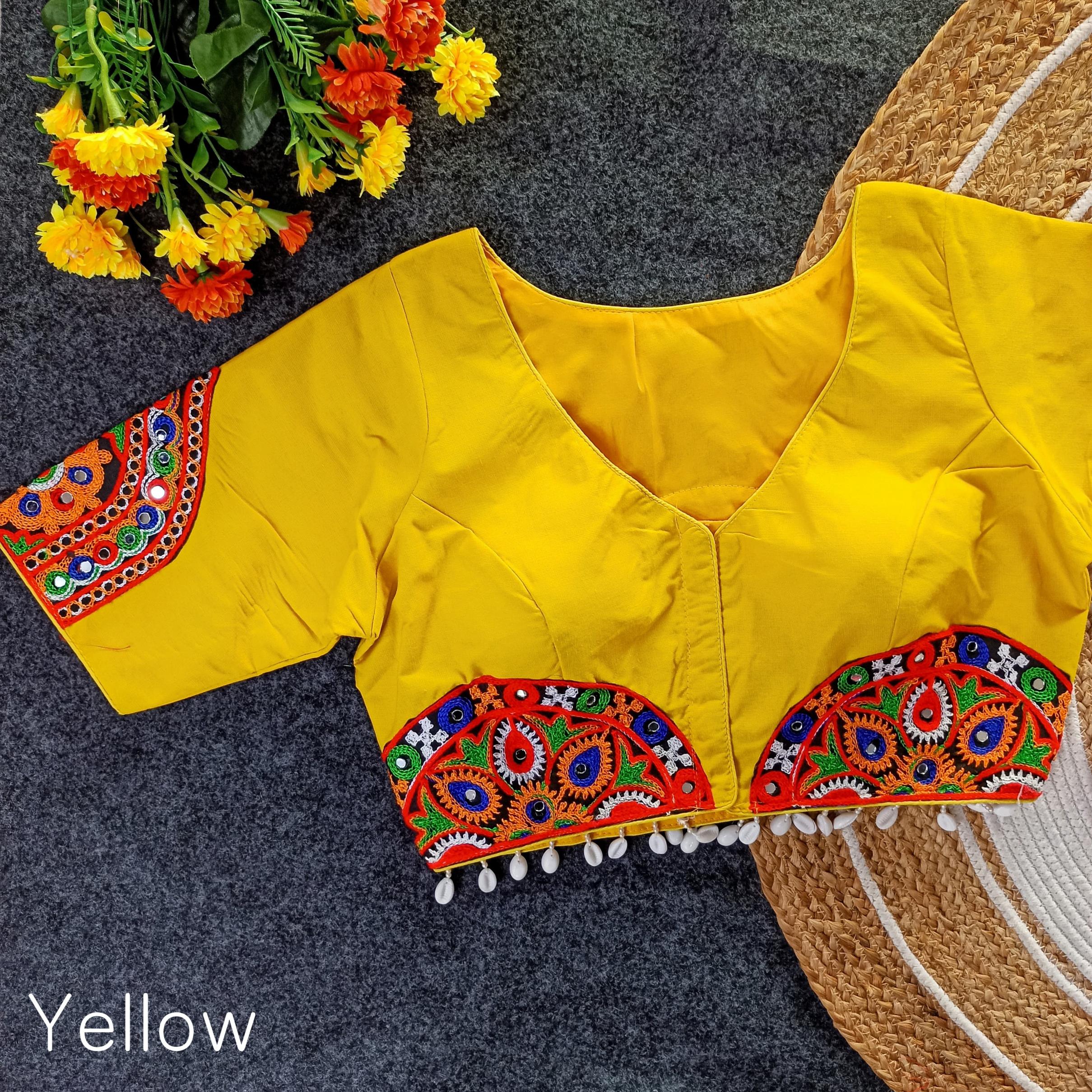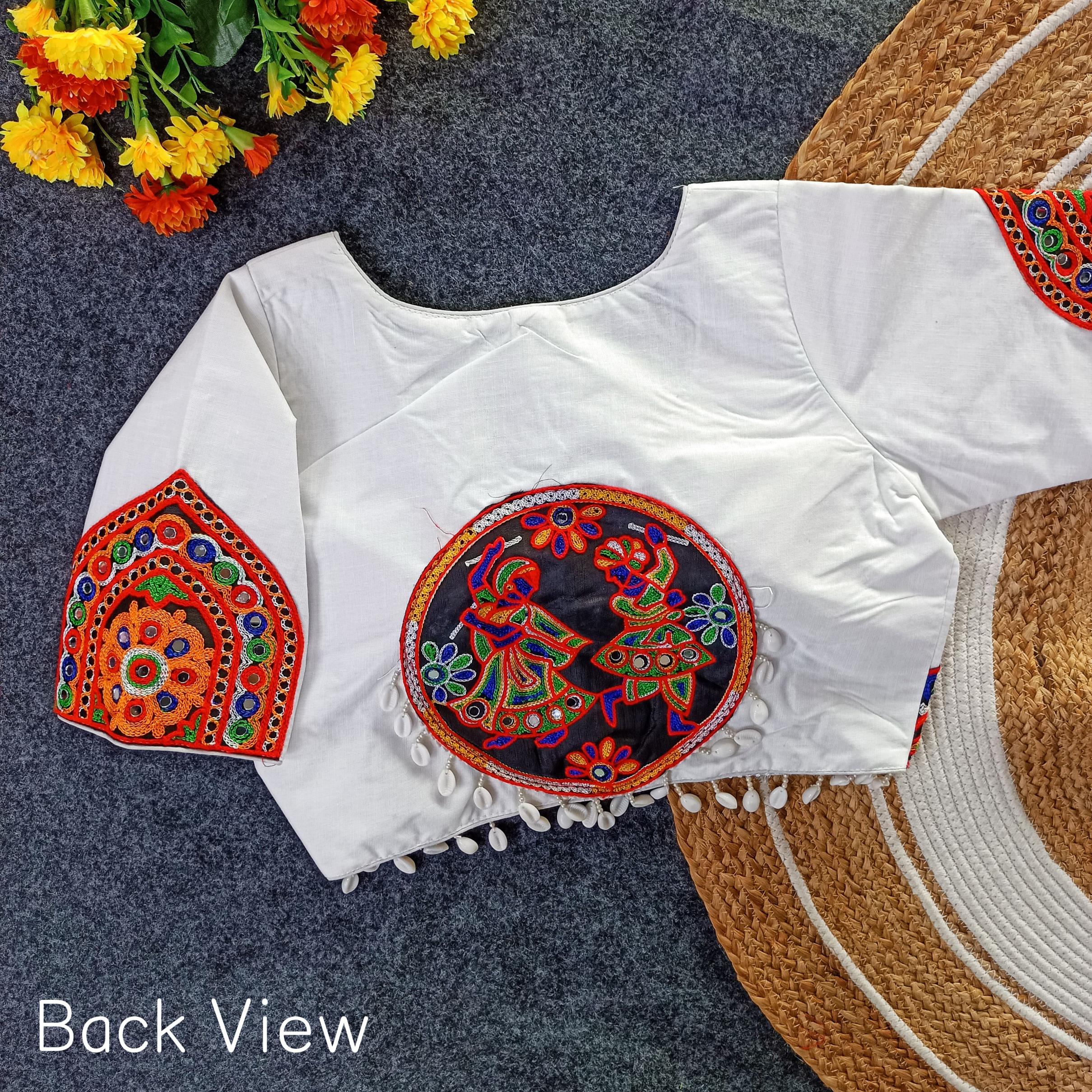➡️ NAVRATRI SPECIAL MULTY COLOUR PATCHES WITH REAL MIRROR HAND WORK WITH KAUDI (CELLS) FANCY BLOUSE ➡️Design- NAVRATRI PATCH VOL 1 ➡️Fabric- Magic Cotton ➡️Inner- Cotton ➡️Work- Multy Colour Threads Patch + Real Mirror Hand Work ➡️Pattern- BOAT NEACK ➡️Quality- A1 ➡️Padded- Yes ➡️Size- 40 Ready ➡️Length- 15 Inch ➡️Open Type- Front Hook ➡️Sleev- Elbow Sleeves Atteched ➡️Colour:- (10 Colours Available) 🖤💛🧡❤️🩷️💙💜🤍🤎 ➡️Price- 480/- ➡️SHIPPING EXTRA ➡️ BOOK FAST READY STOCK |