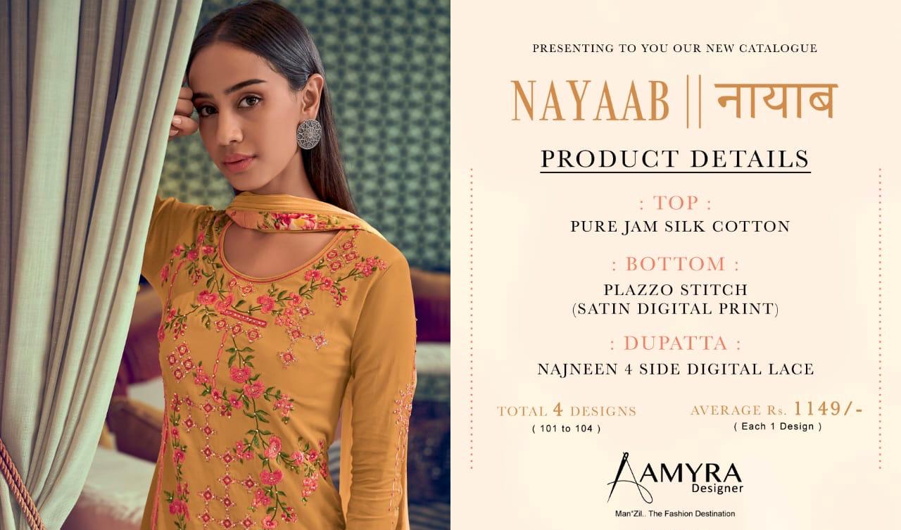 Amyra designer NAYAAB ।। नायाब ।। Relaunch Top- Pure Jaam silk cottan Heavy embroidery & baloon sleeve with fancy Daimond work Bottam :- Satin Digital Print (Stich Plazo ) Dupptta:- Najneen 4side digital lace No of designs :- 04 Total 4 Pcs in one set Prize :-999/- +Gst Set to set. Delivery- Monday Regards:-Amyra Designer |