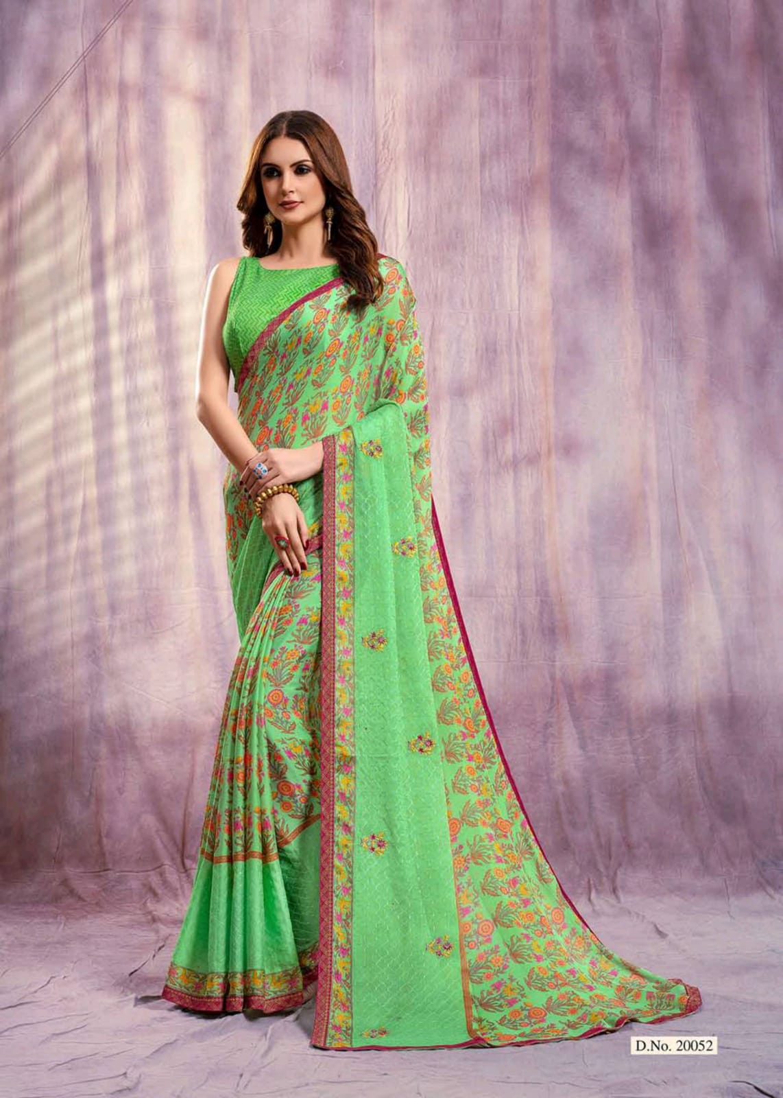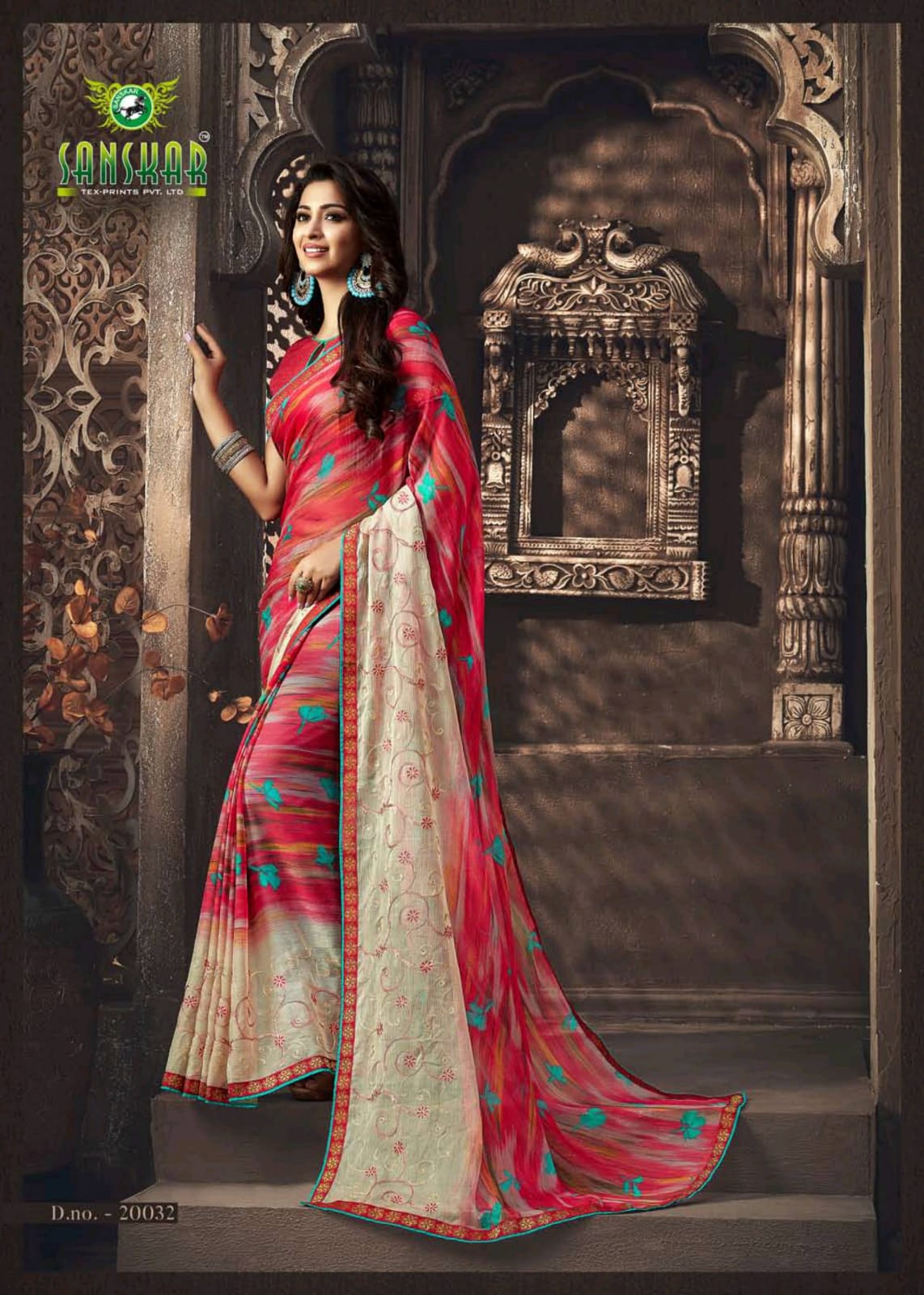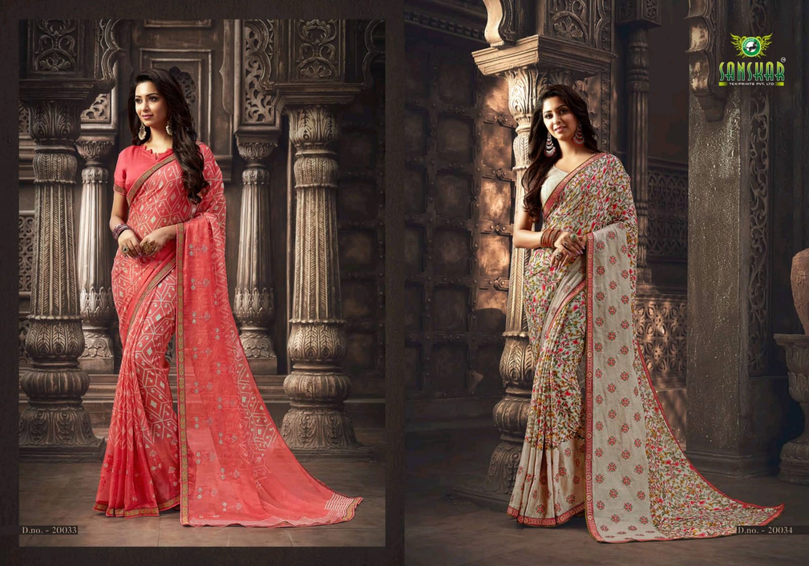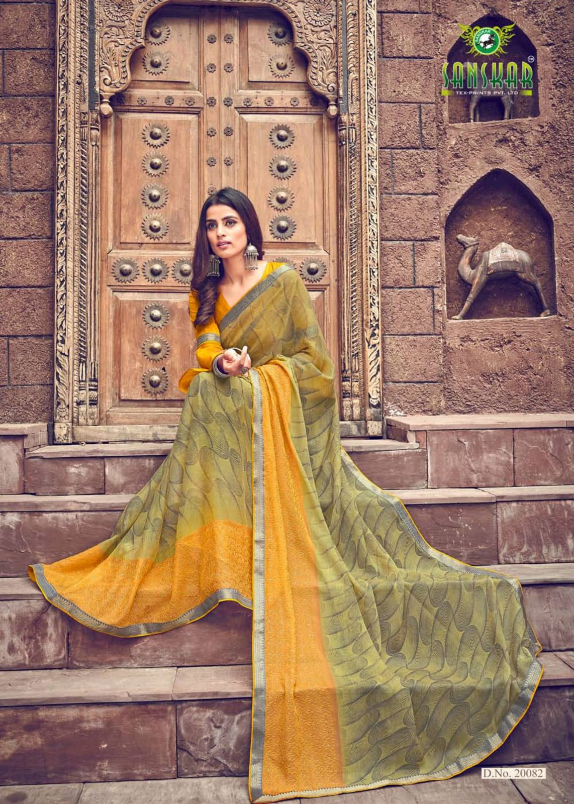 Nayna Hit By Sanskar Tex Prints Chiffon With Fancy Work Synthethic Saree Collections