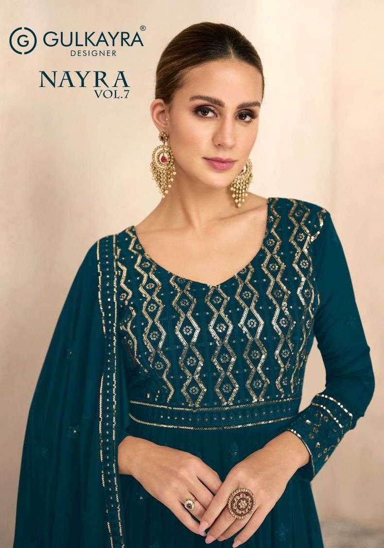 “GULKAYRA DESIGNER”®️ We are presenting new Catlog CATLOG - NAYRA VOL.7 Fabrics - 👚Blooming georgett Rate - 2395/- Note - Front & Back Work Dishpatching — 3-4 Days |