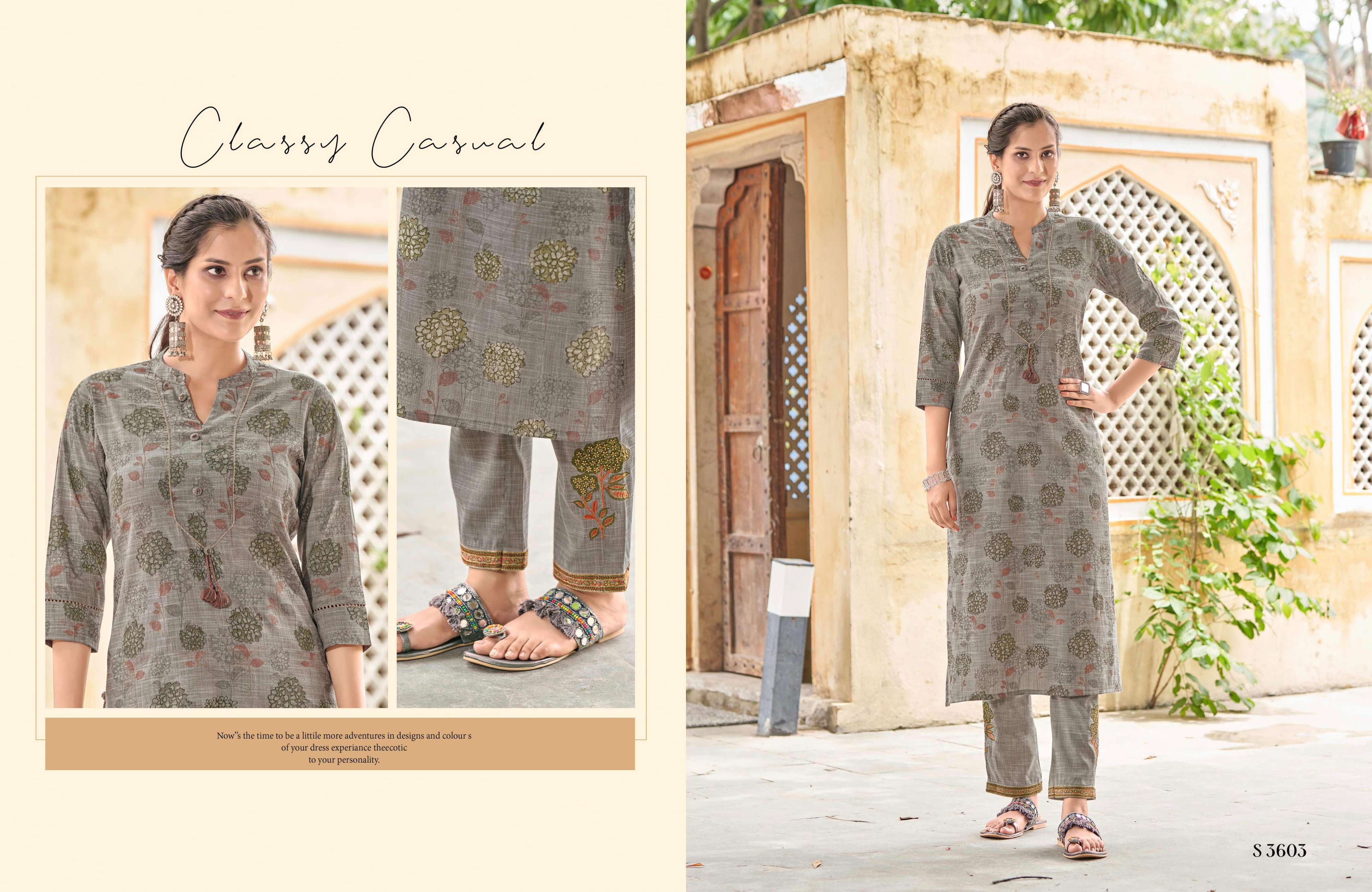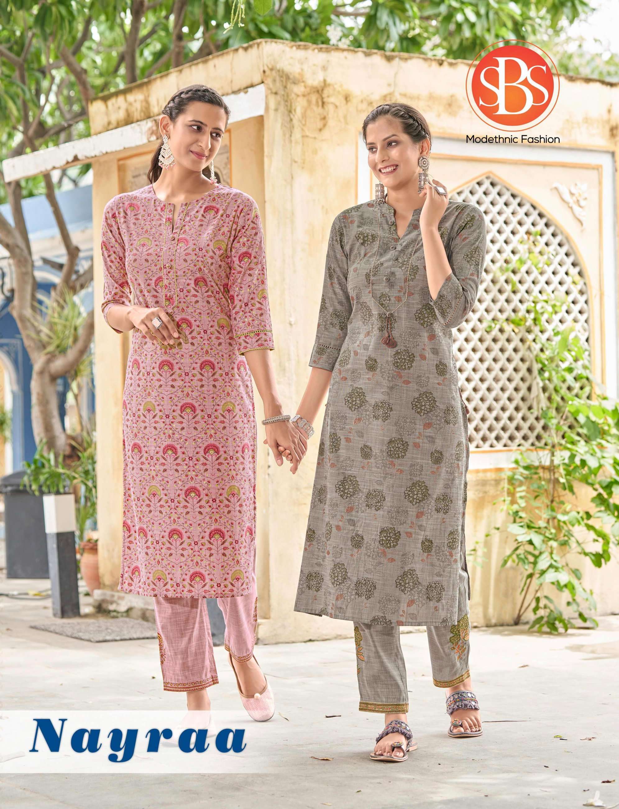 nayraa by sbs fashion fancy sabita print kurti with pant supplier