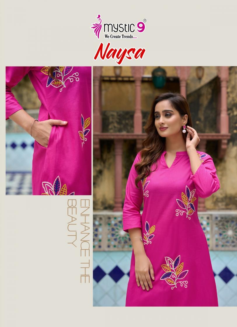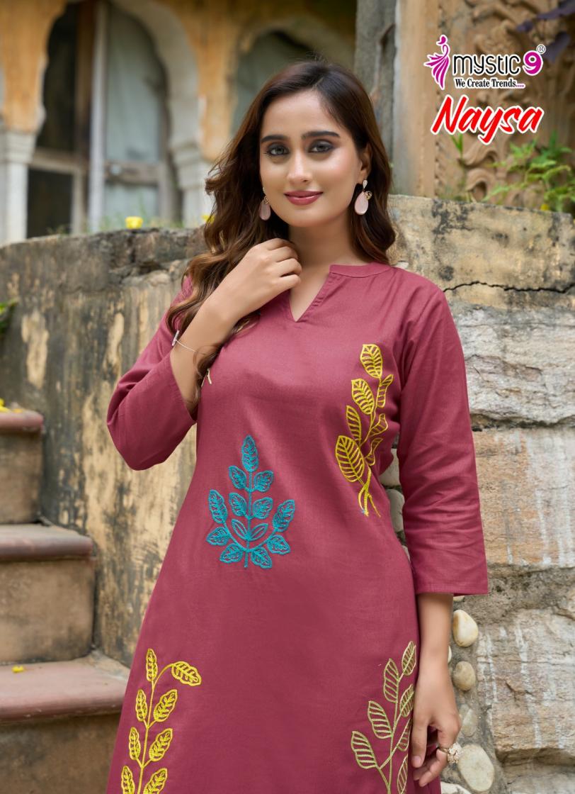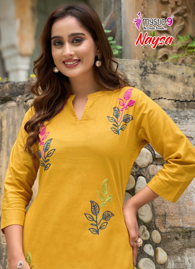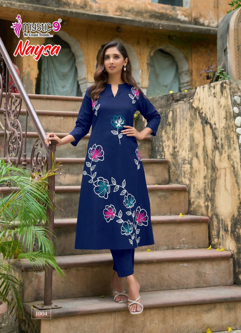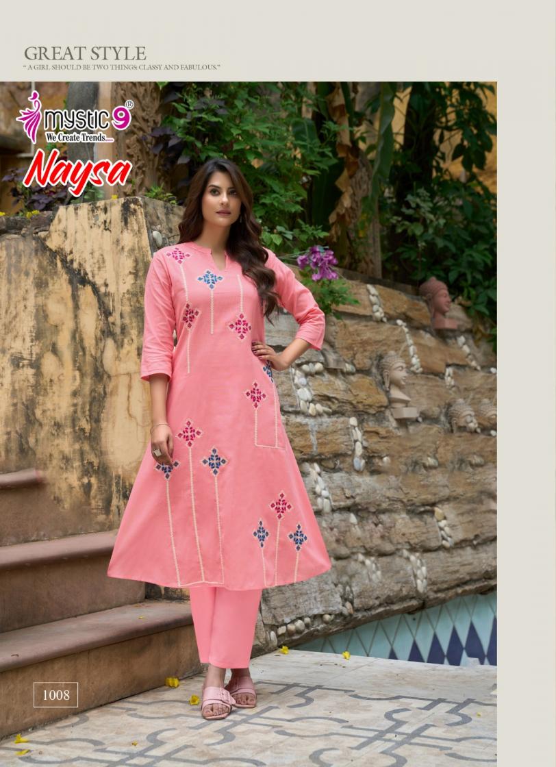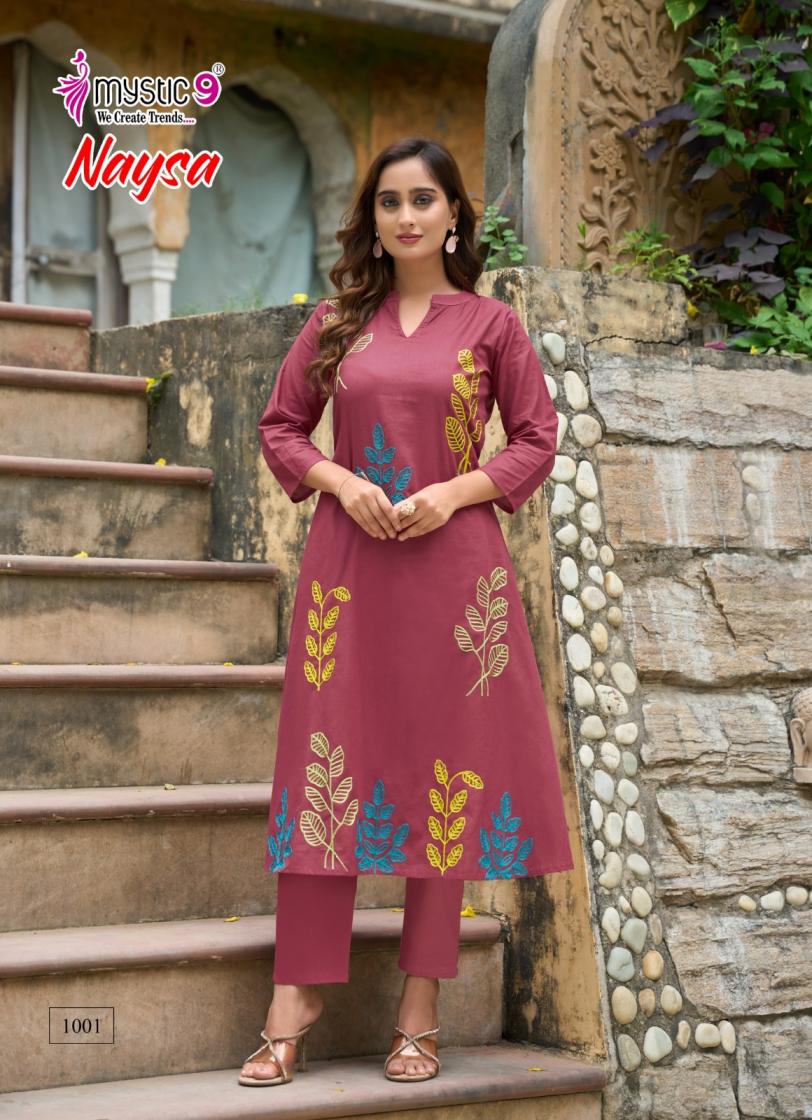 naysa vol 1 by mystic9 readymade cotton flex a-line combo kurti with pant