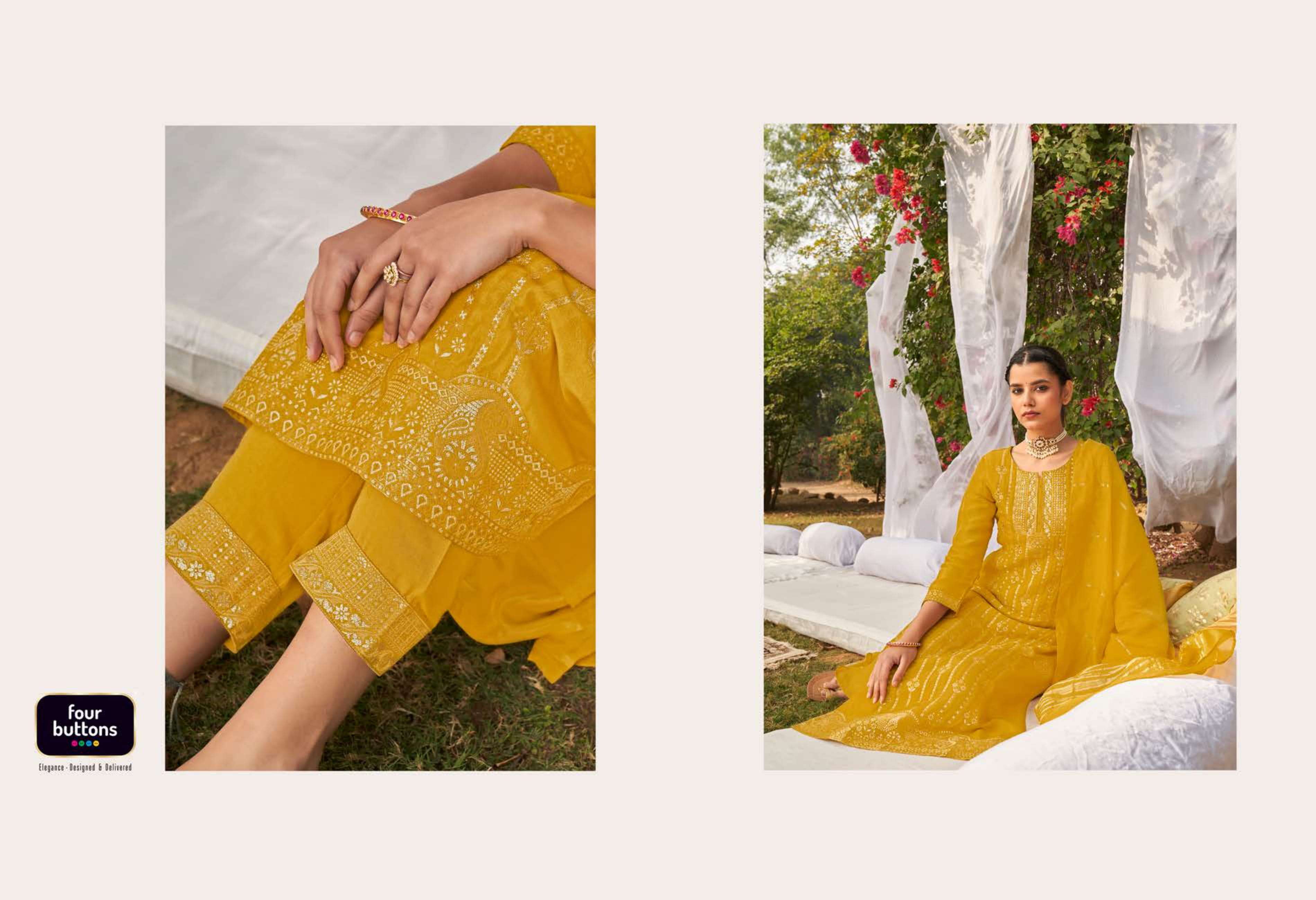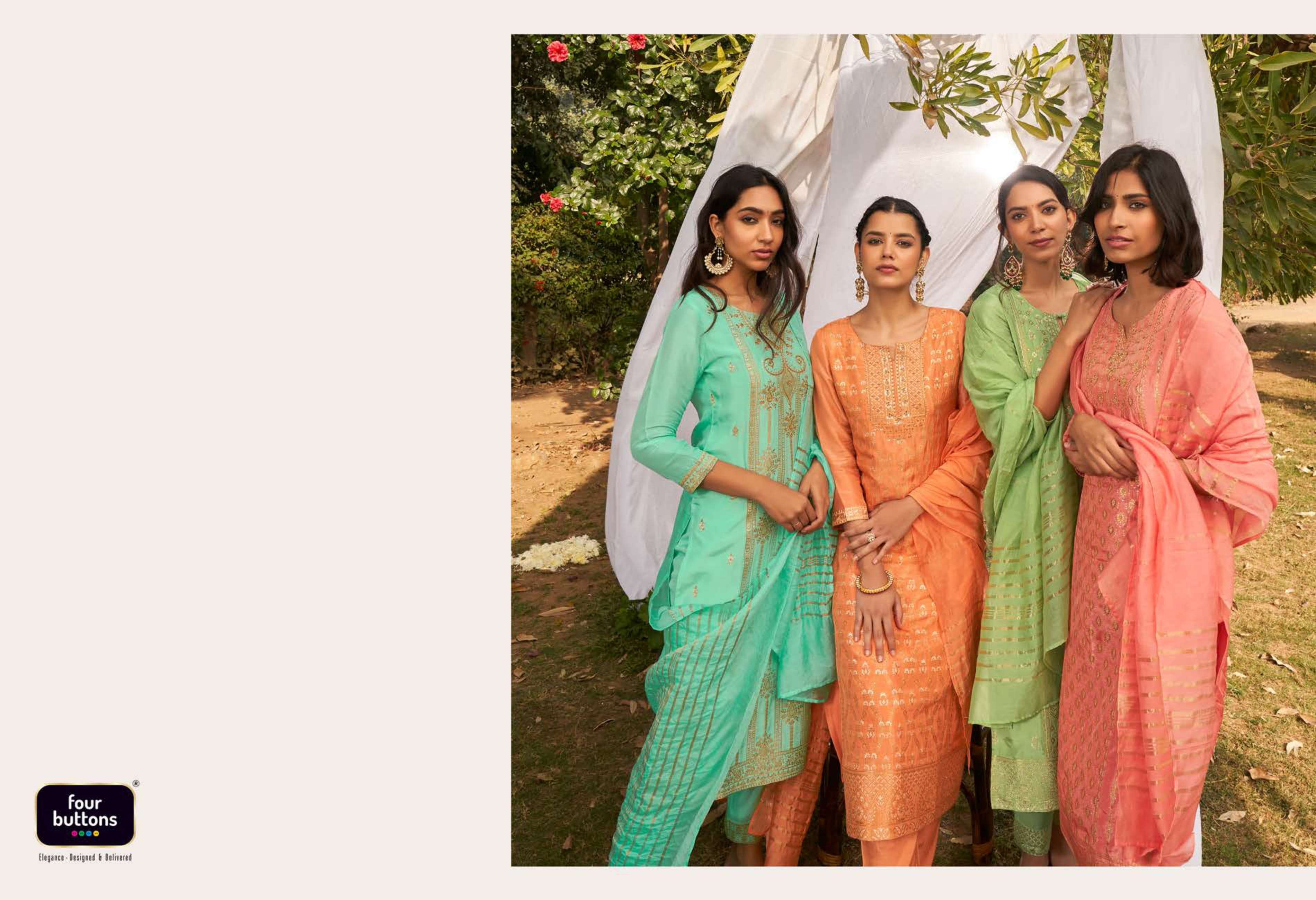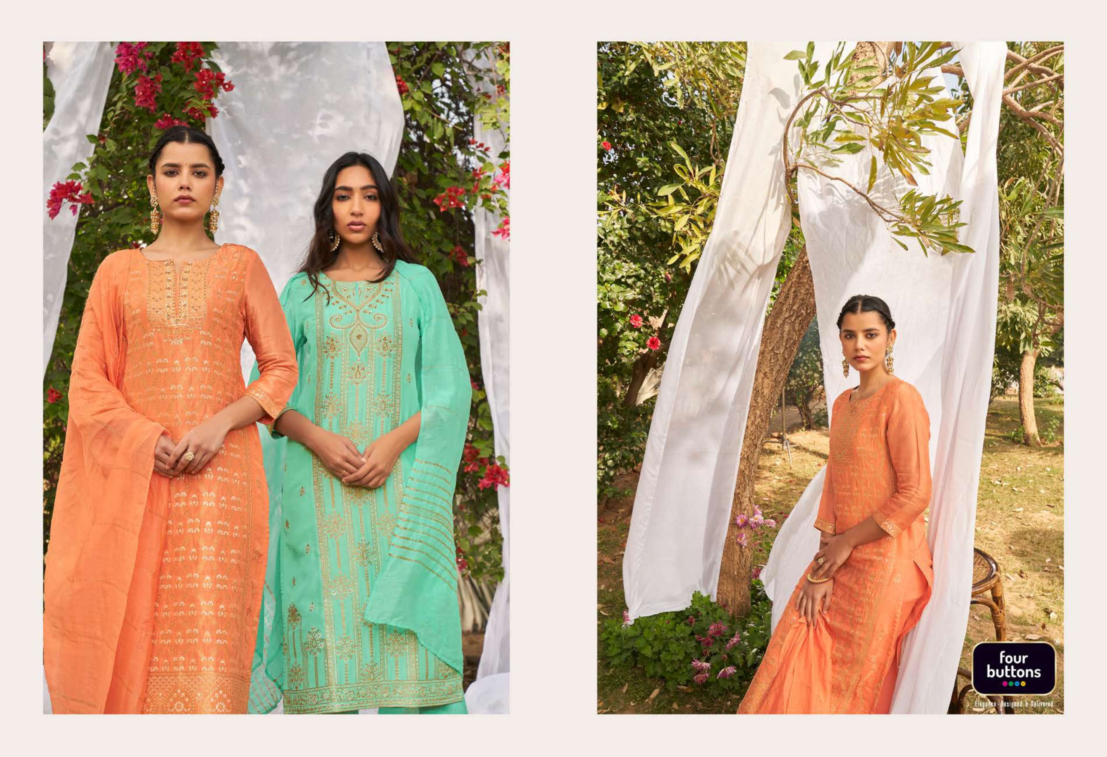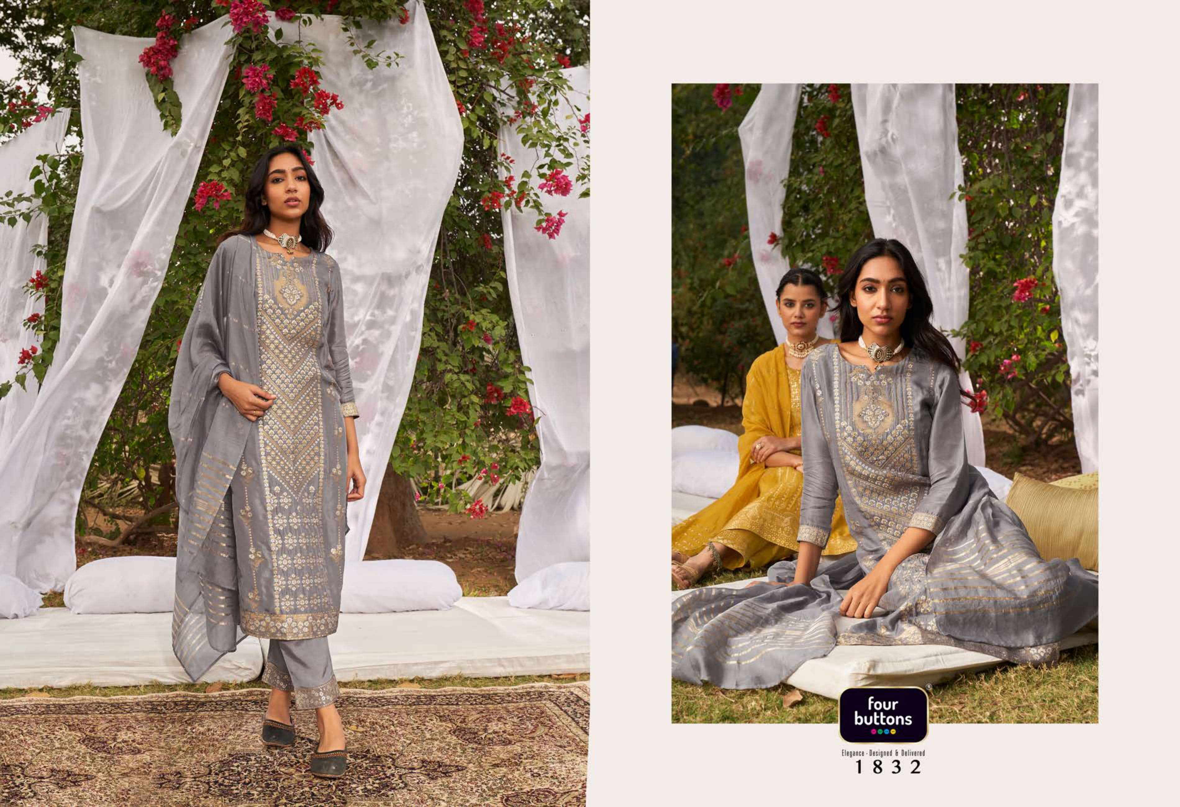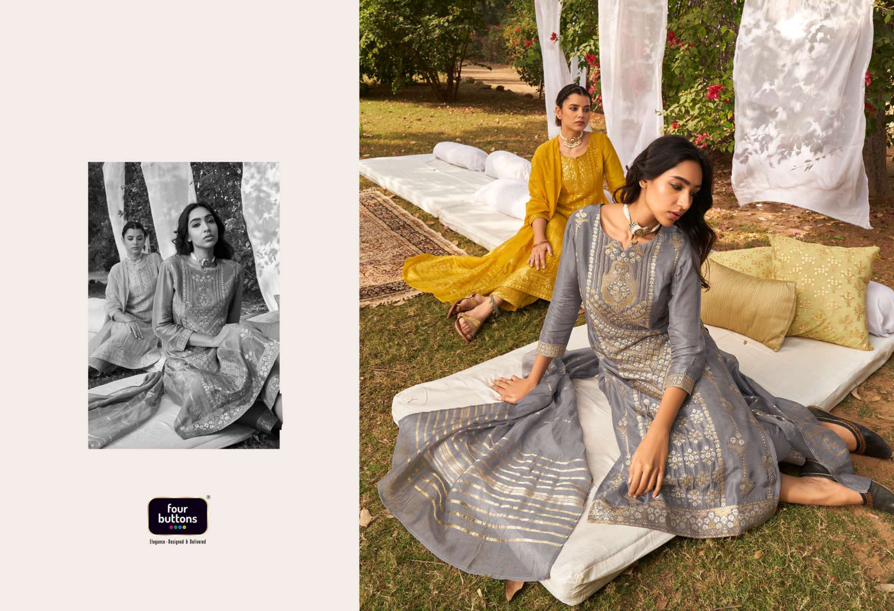 FOUR BUTTONS proudly launches its NEW collection 2022 "NAZAKAT"2 FABRIC KURTI - PLACEMENT JACQUARD WITH MX AND HANDWORK ON PURE DOLA SILK BOTTOM - PURE VISCOSE SILK WITH JACQUARD ATTACHMENT DUPATTA- PURE VISCOSE WEAVING ZARI RATE - Rs 1599/- SIZES - S, M, L, XL, XXL, 3XL |