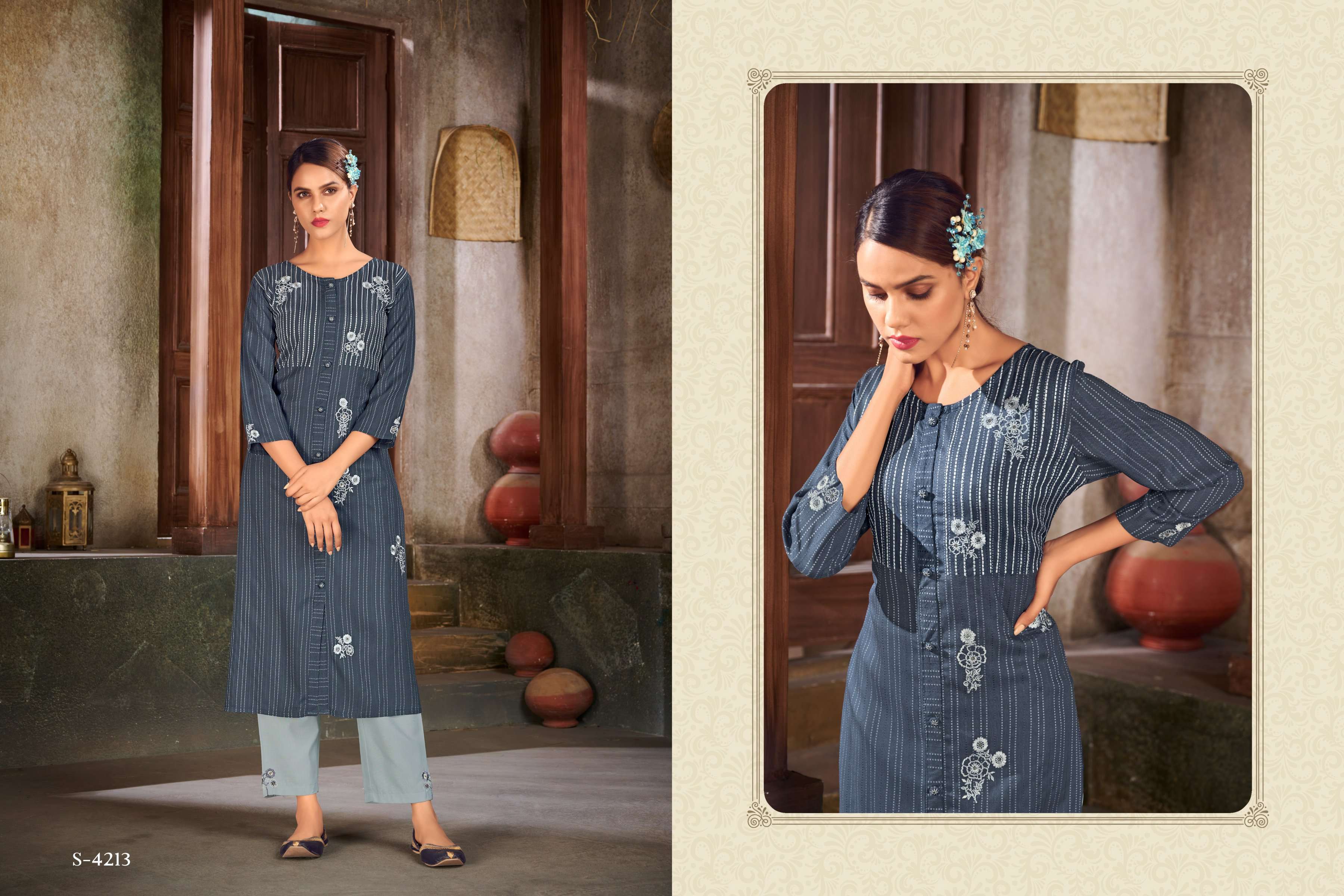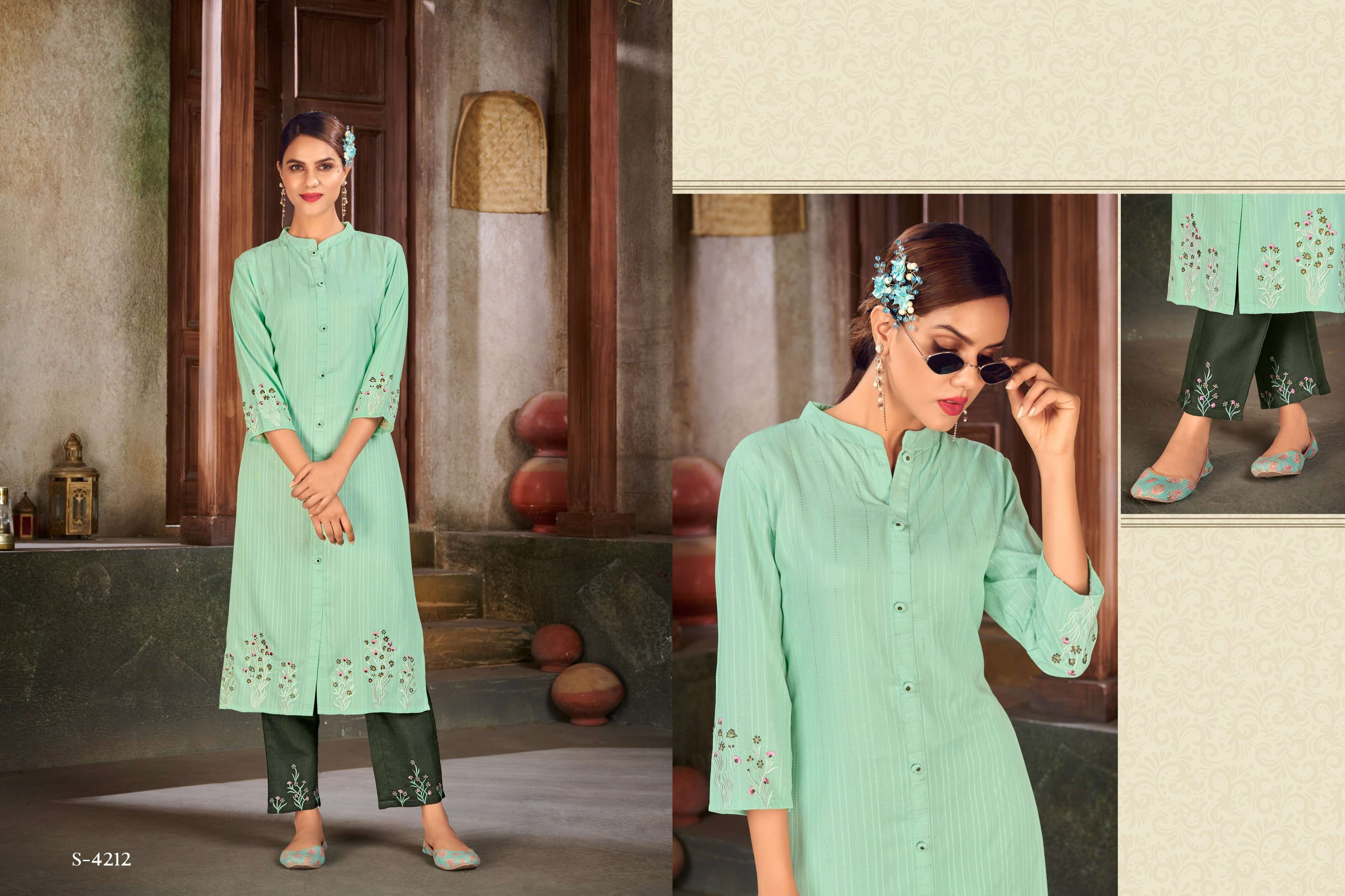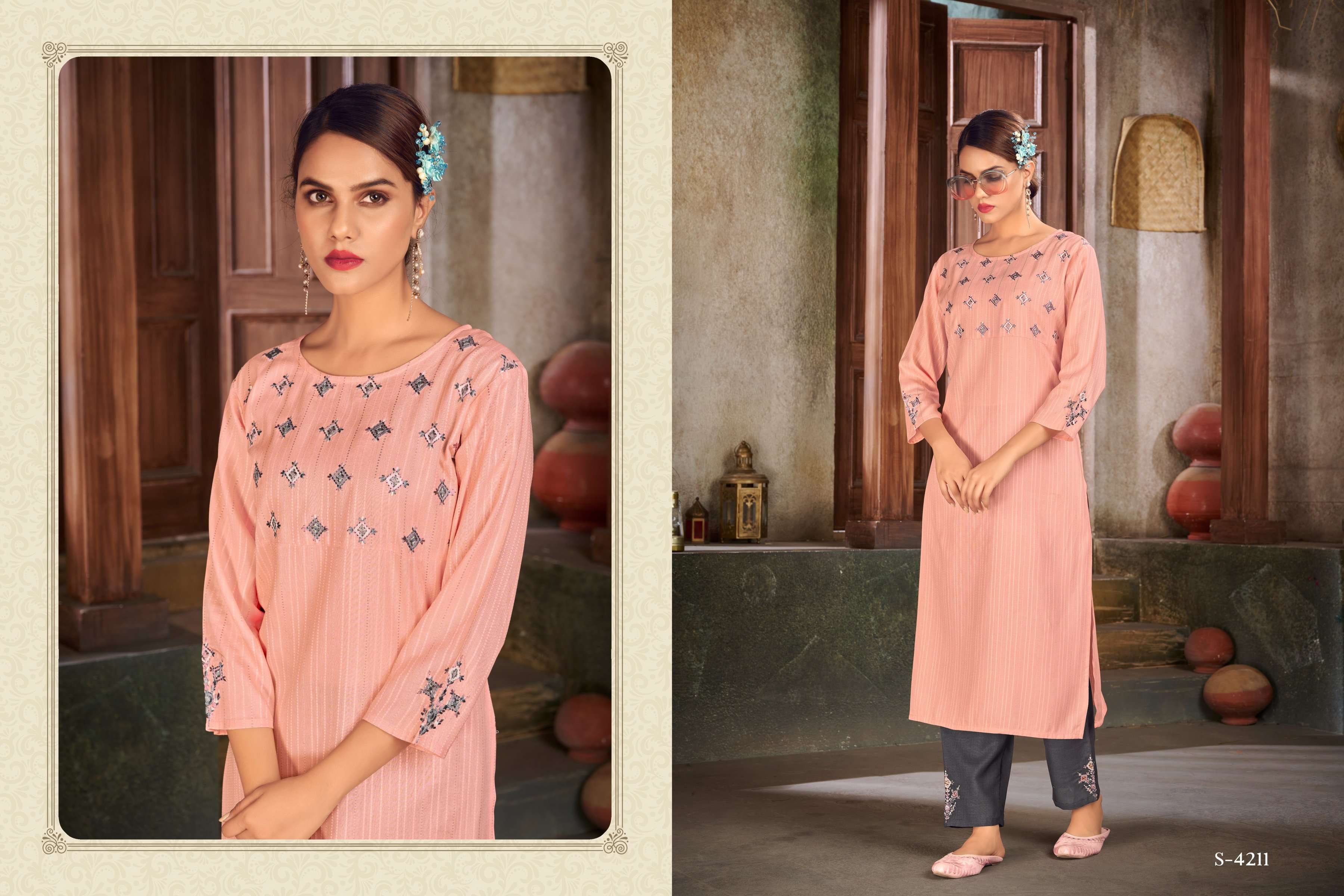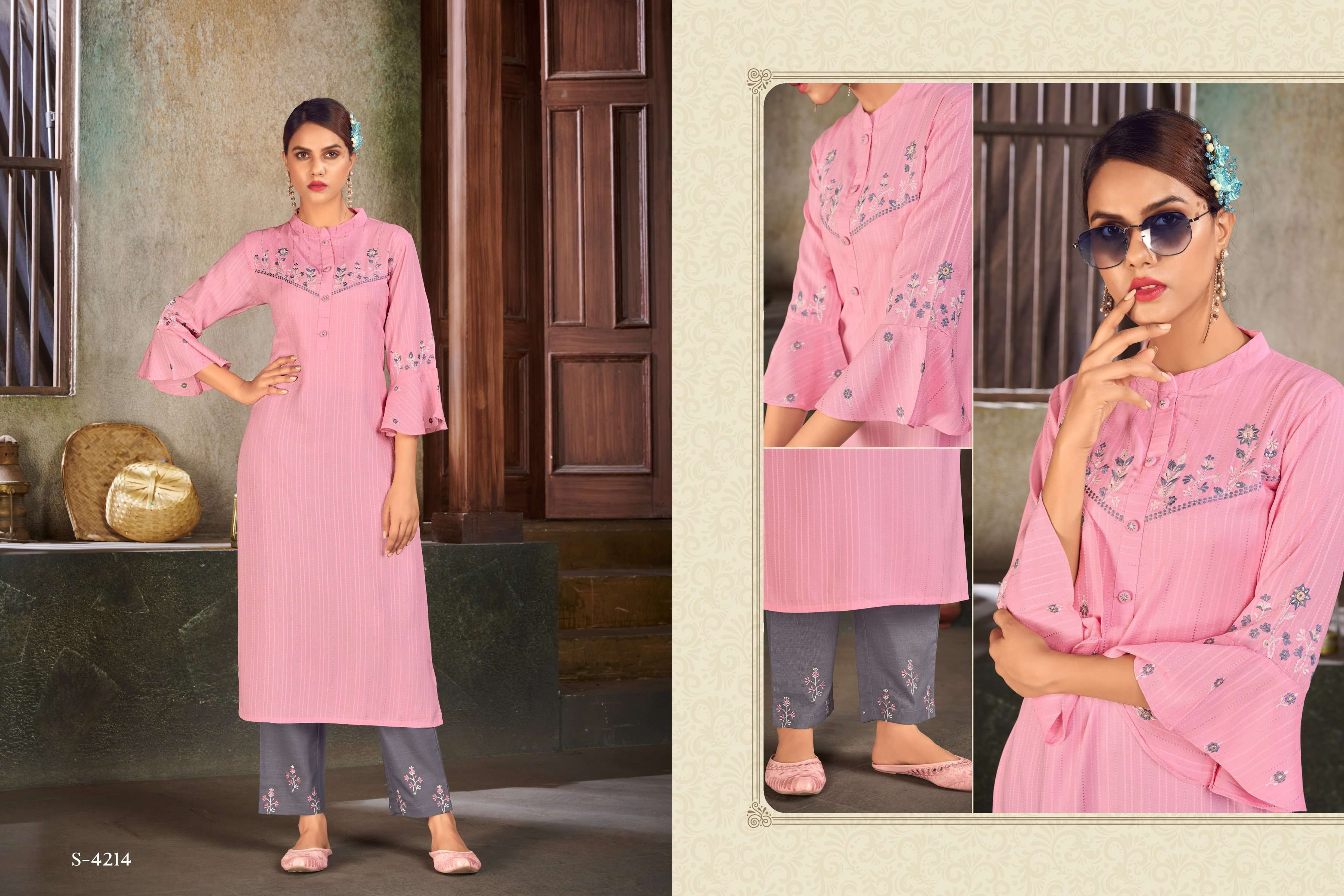 nazam by sbs fashion fancy 2pcs set rayon kurti with cotton pant collection