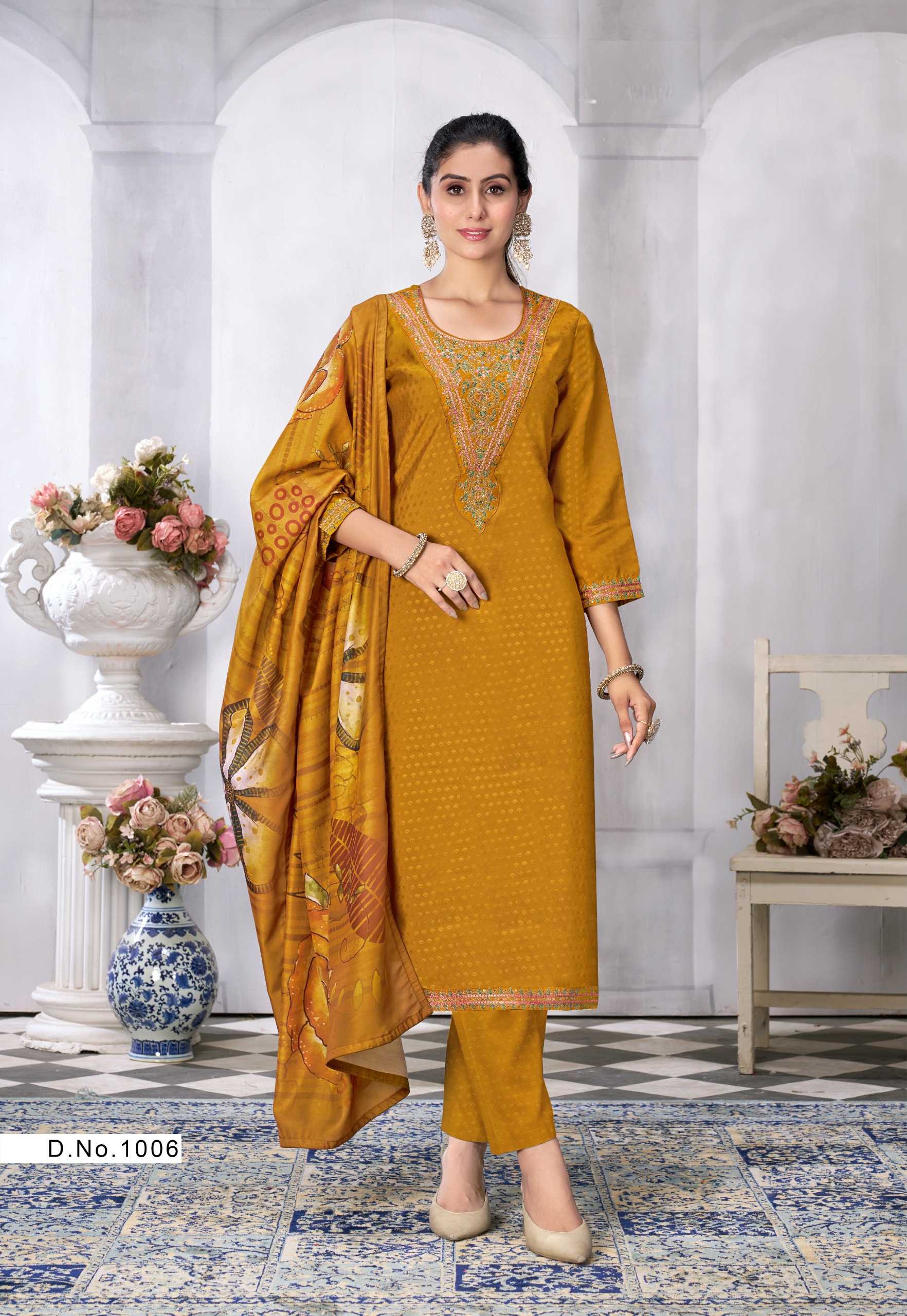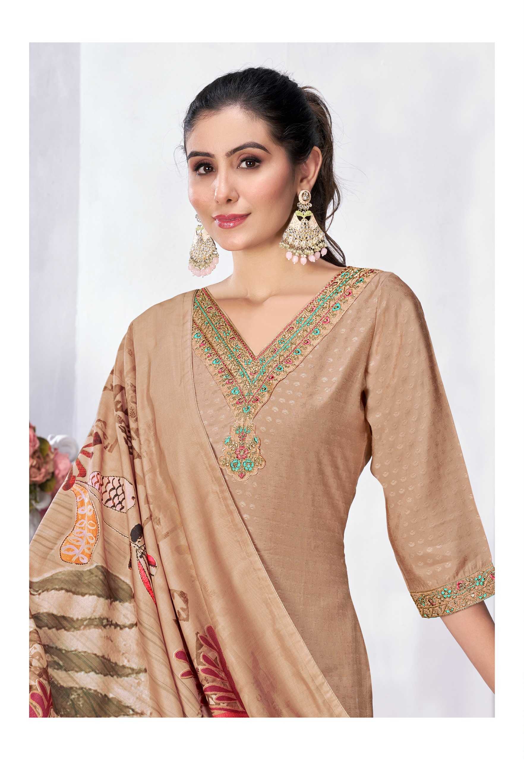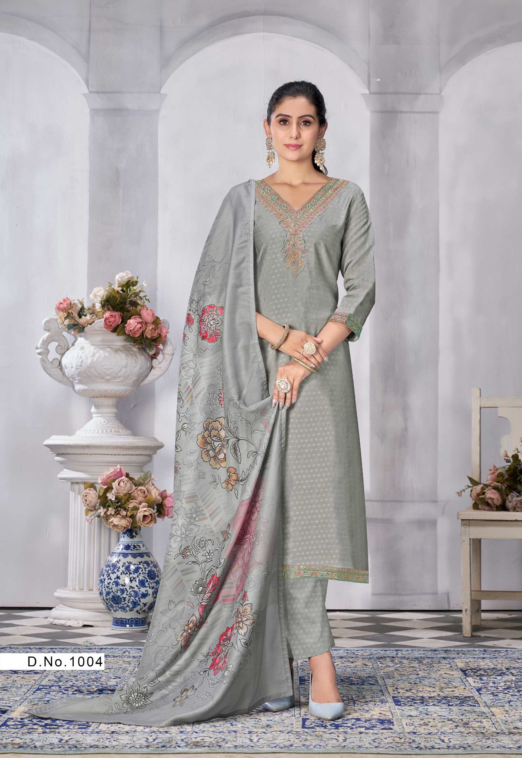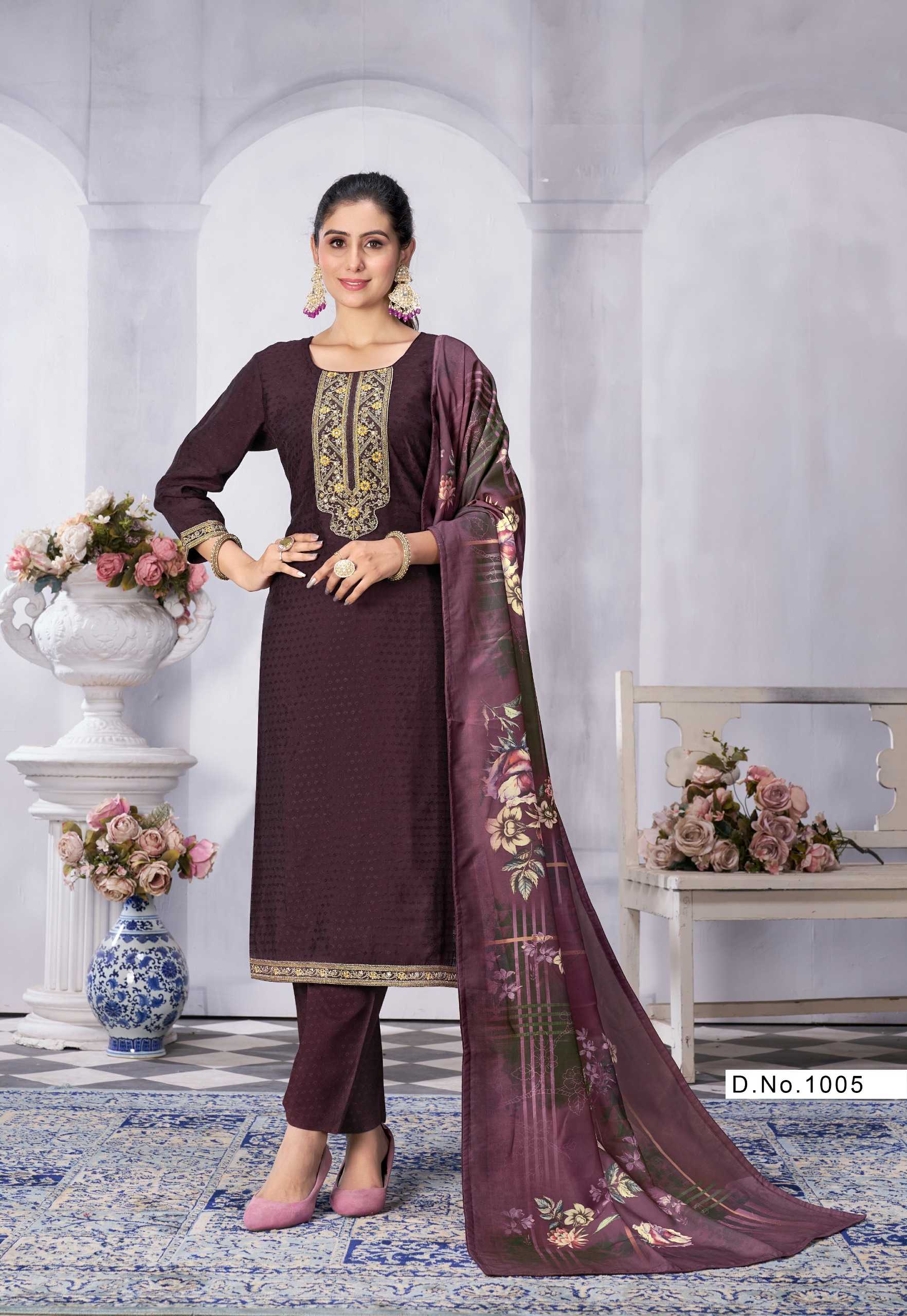 Nazmein Exclusive work on Neck Sleves and Daman. Duppatta - musline cotton digital print with 4 side piping. Size - L to 4xl Rate 1095/- |