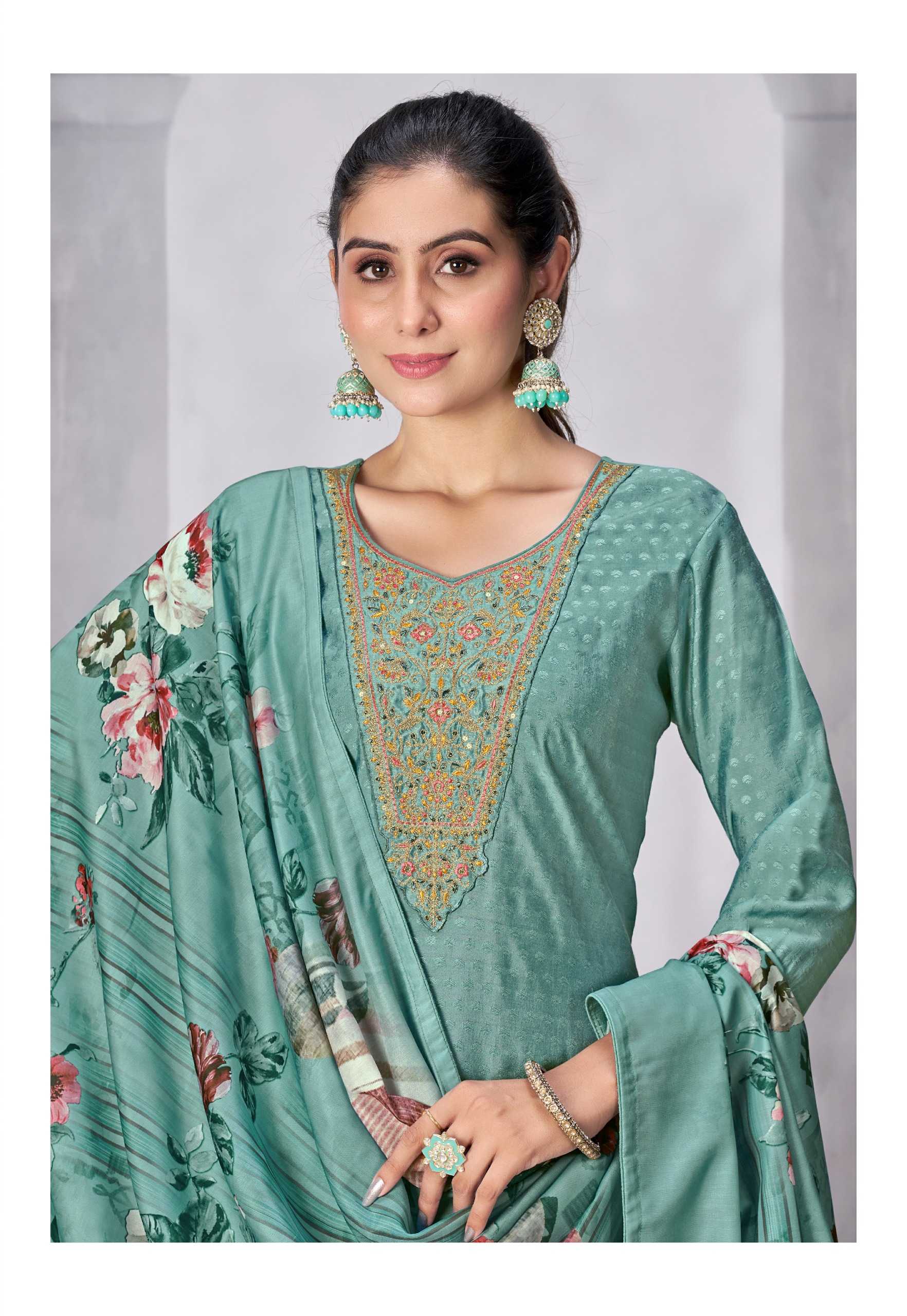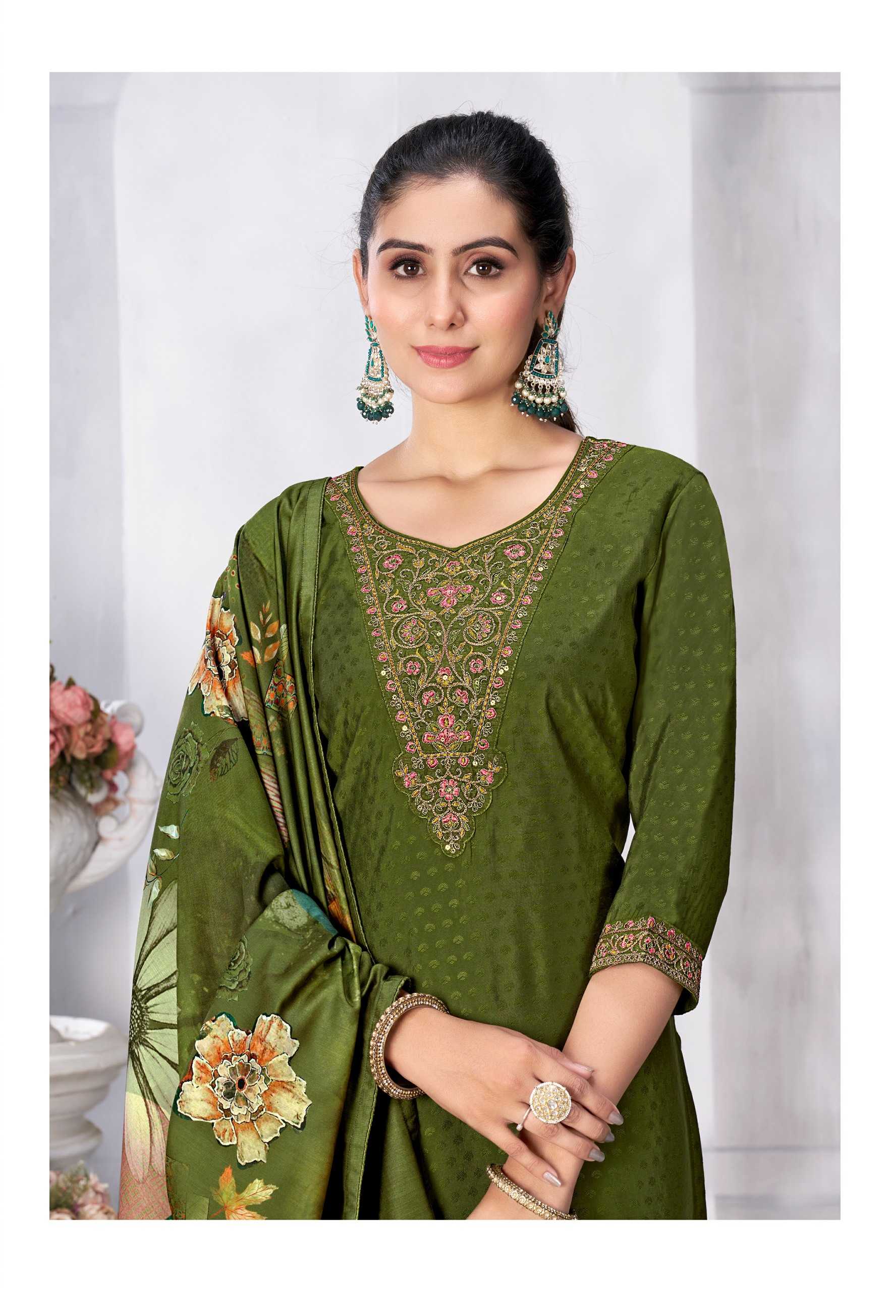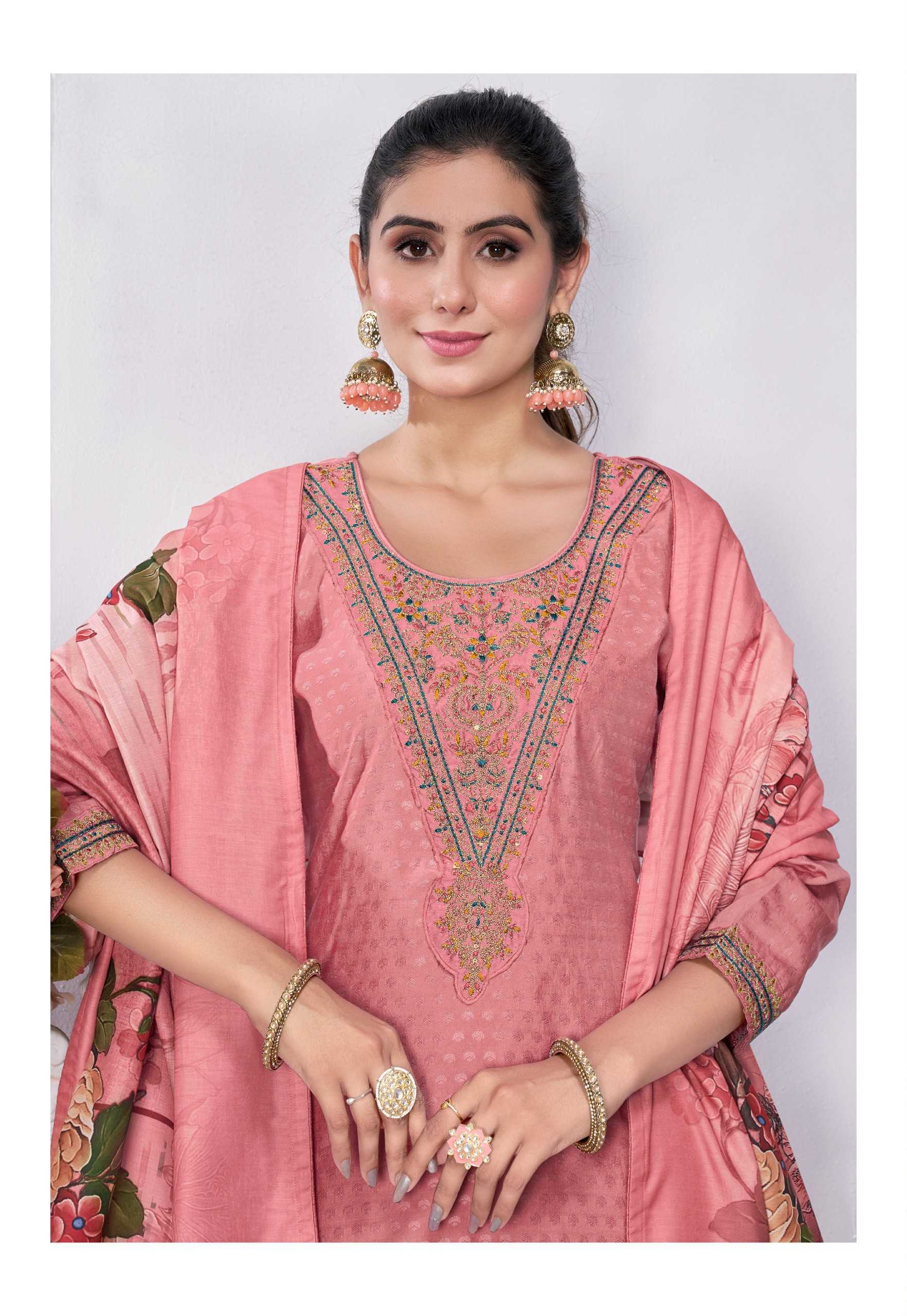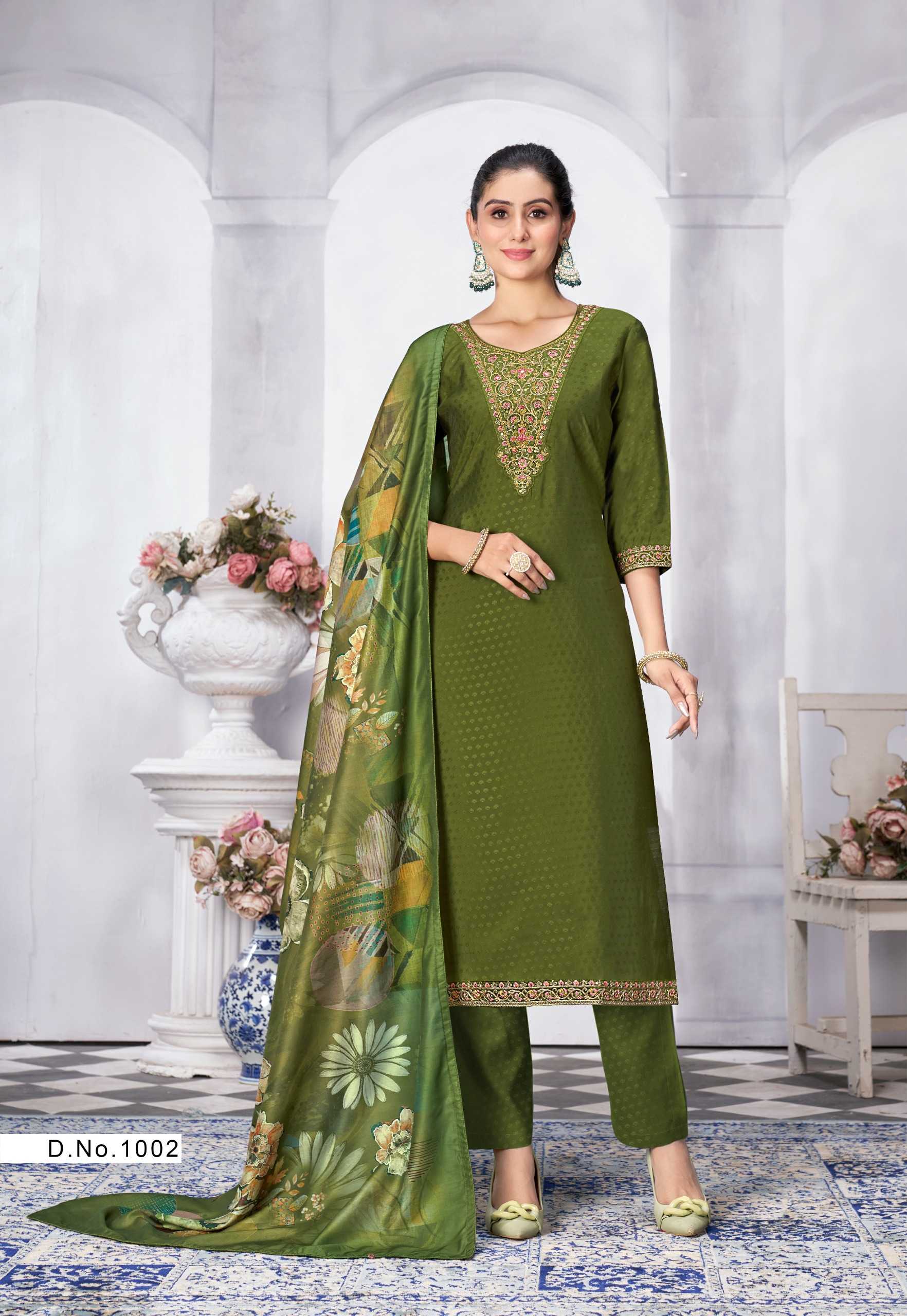 Nazmein Exclusive work on Neck Sleves and Daman. Duppatta - musline cotton digital print with 4 side piping. Size - L to 4xl Rate 1095/- |