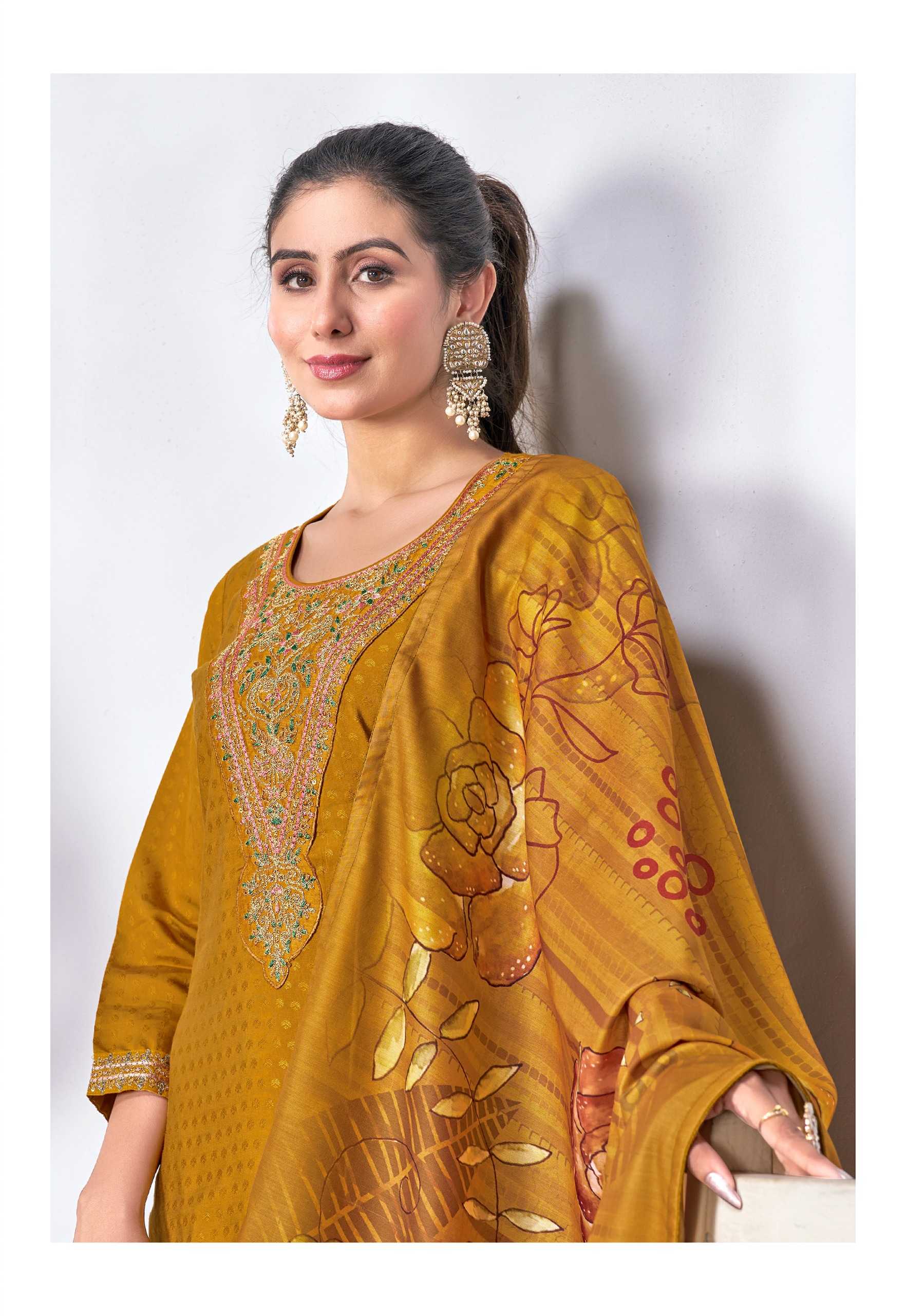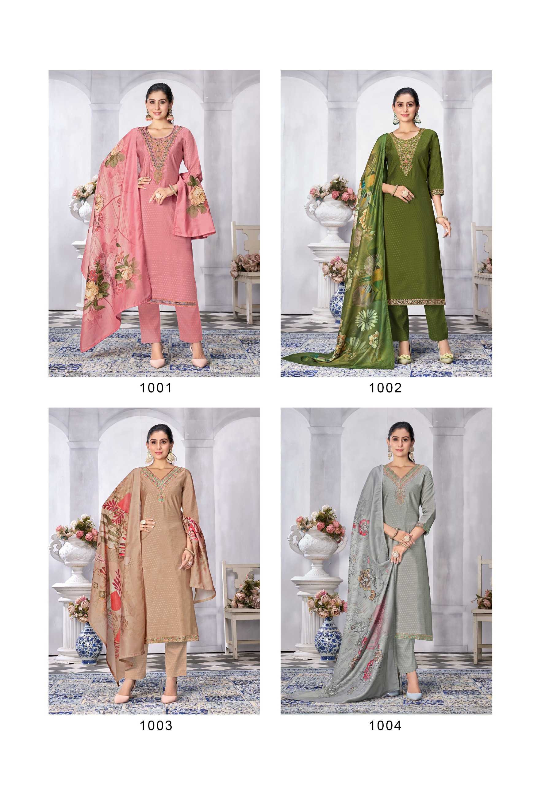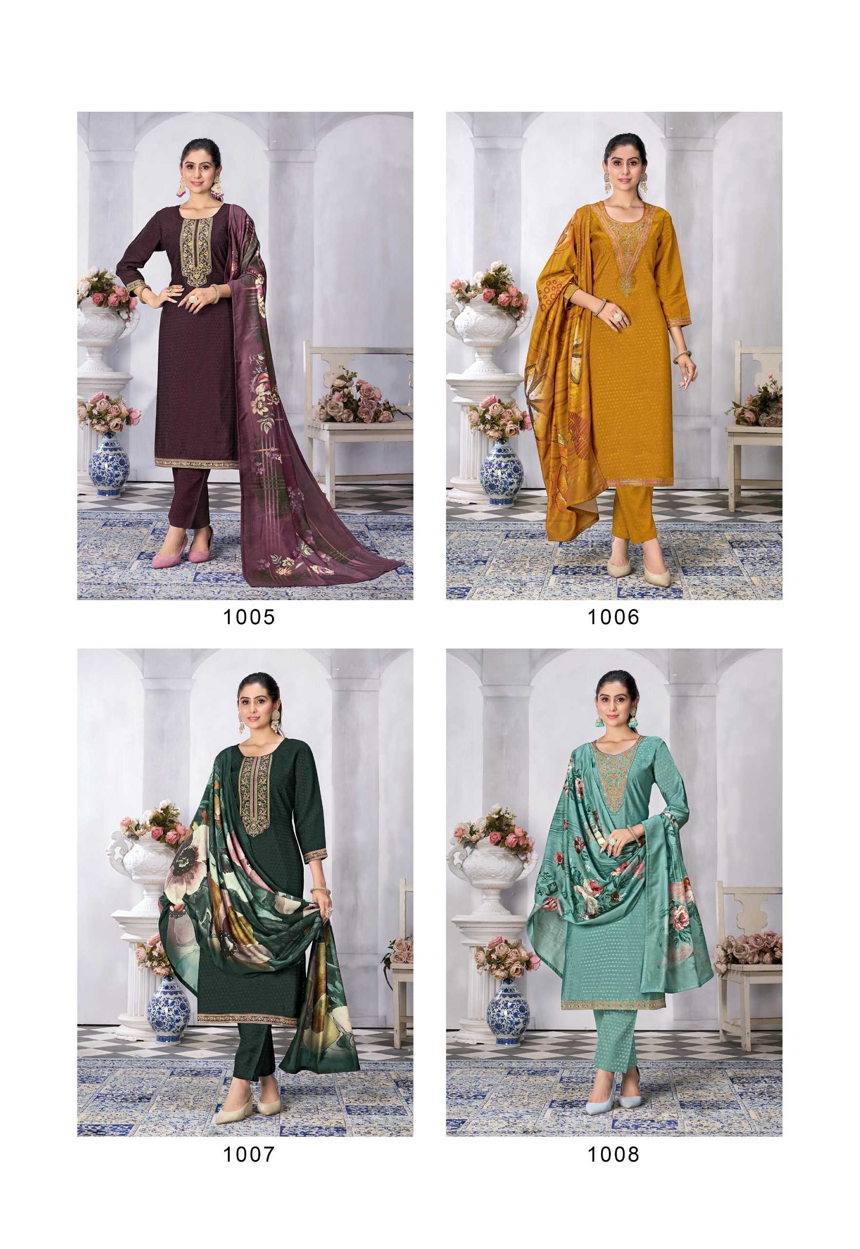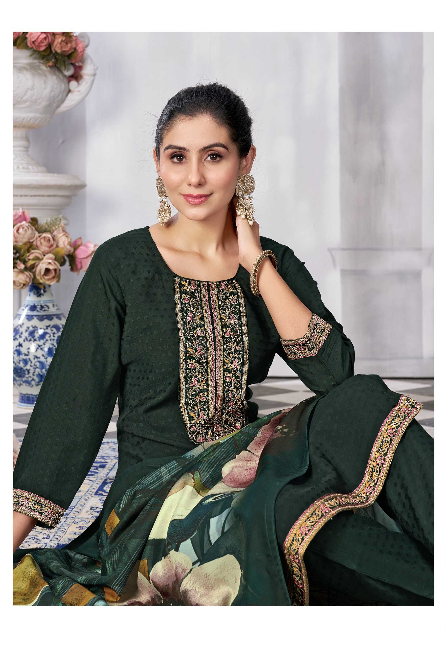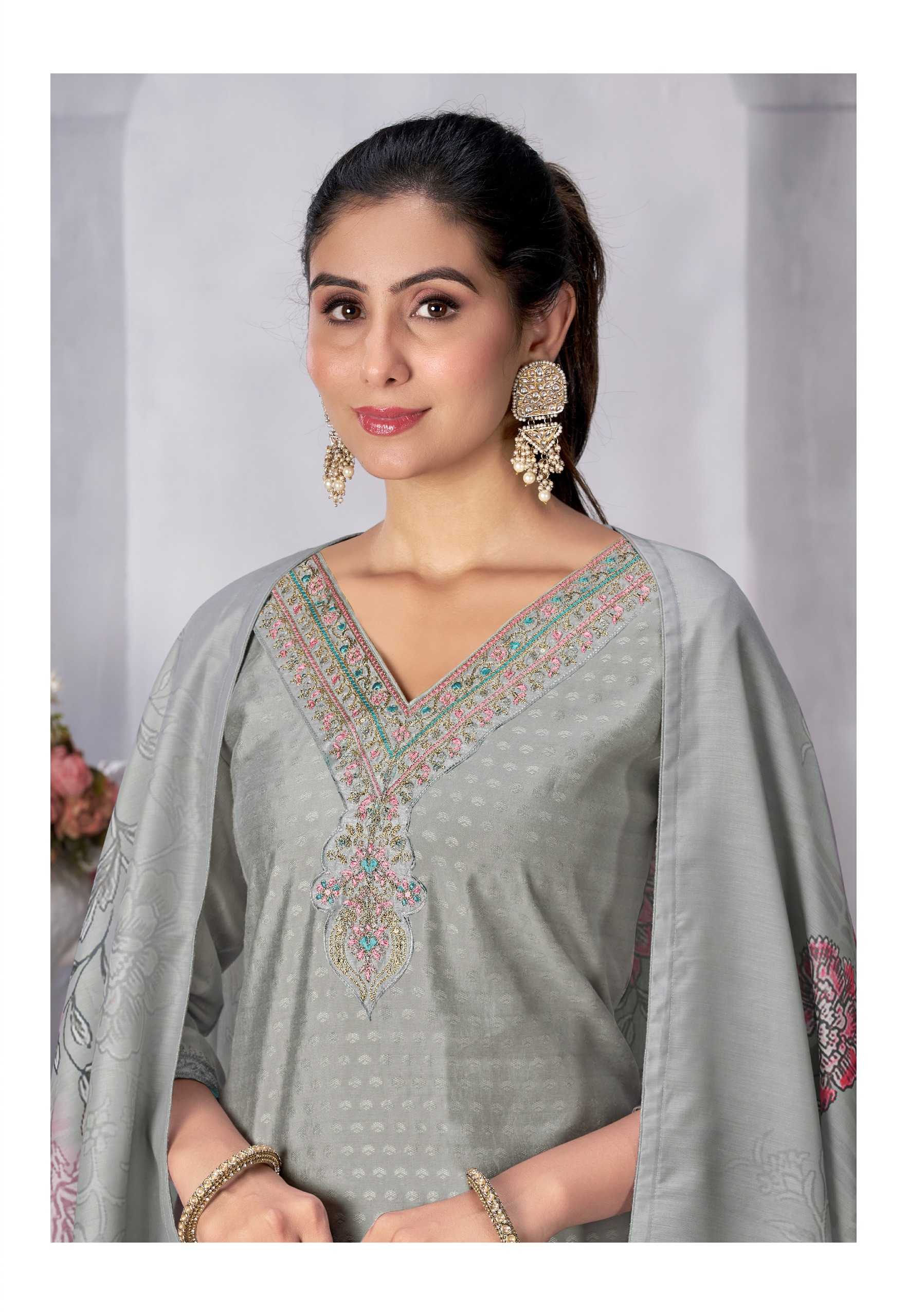 Nazmein Exclusive work on Neck Sleves and Daman. Duppatta - musline cotton digital print with 4 side piping. Size - L to 4xl Rate 1095/- |