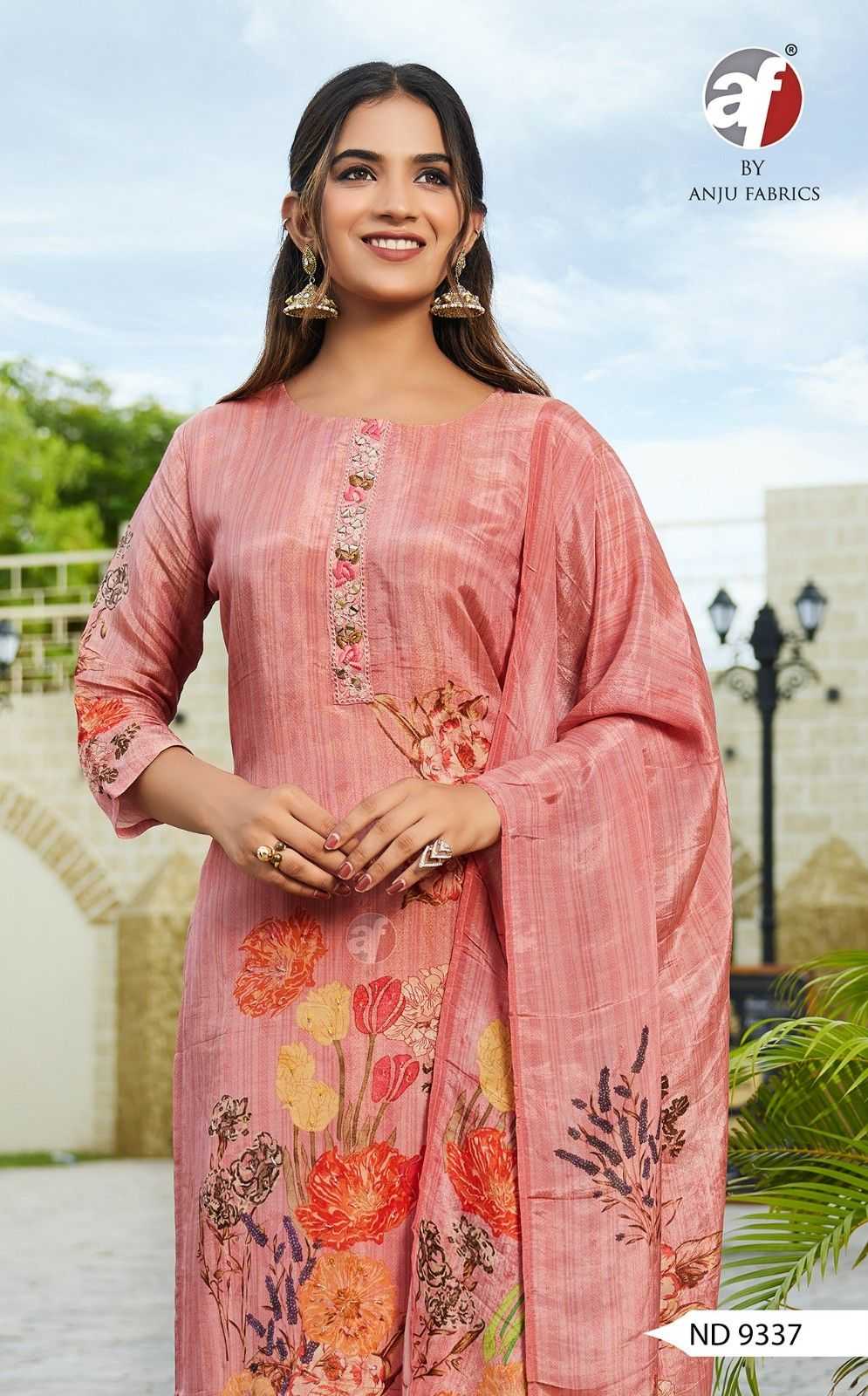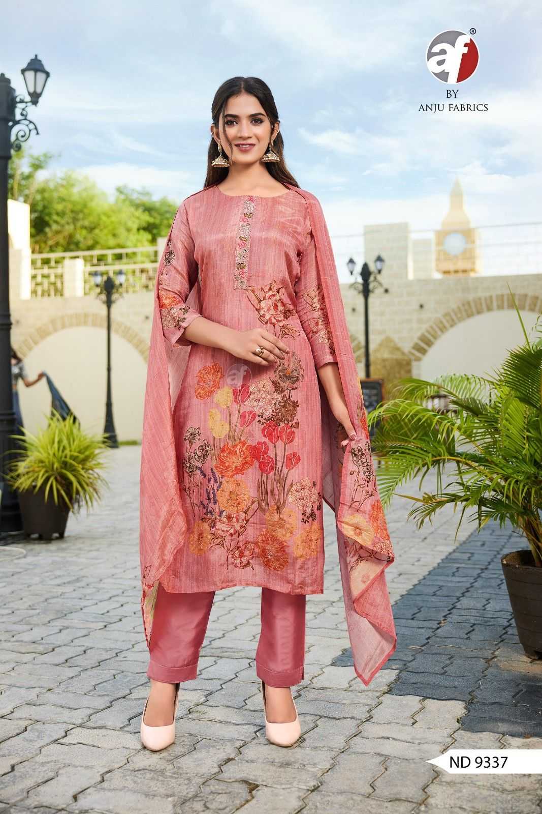 nd 9337 by anju fab tissue shimmer print readymade combo suits