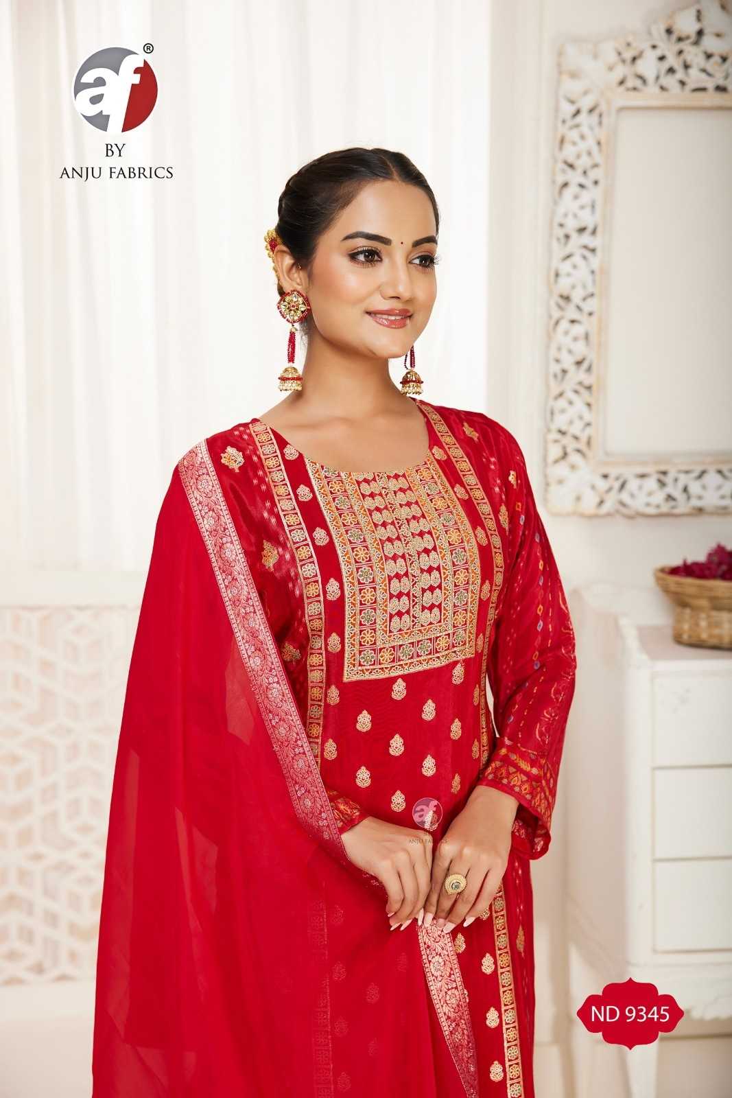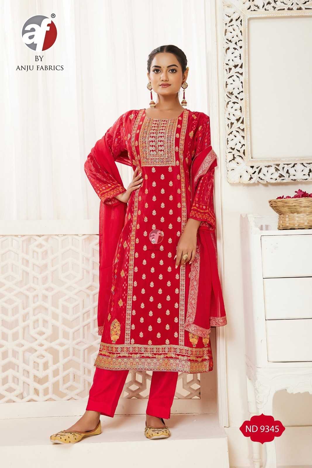 nd 9345 by anju fab readymade natural crape meena jacquard combo 3pcs dress