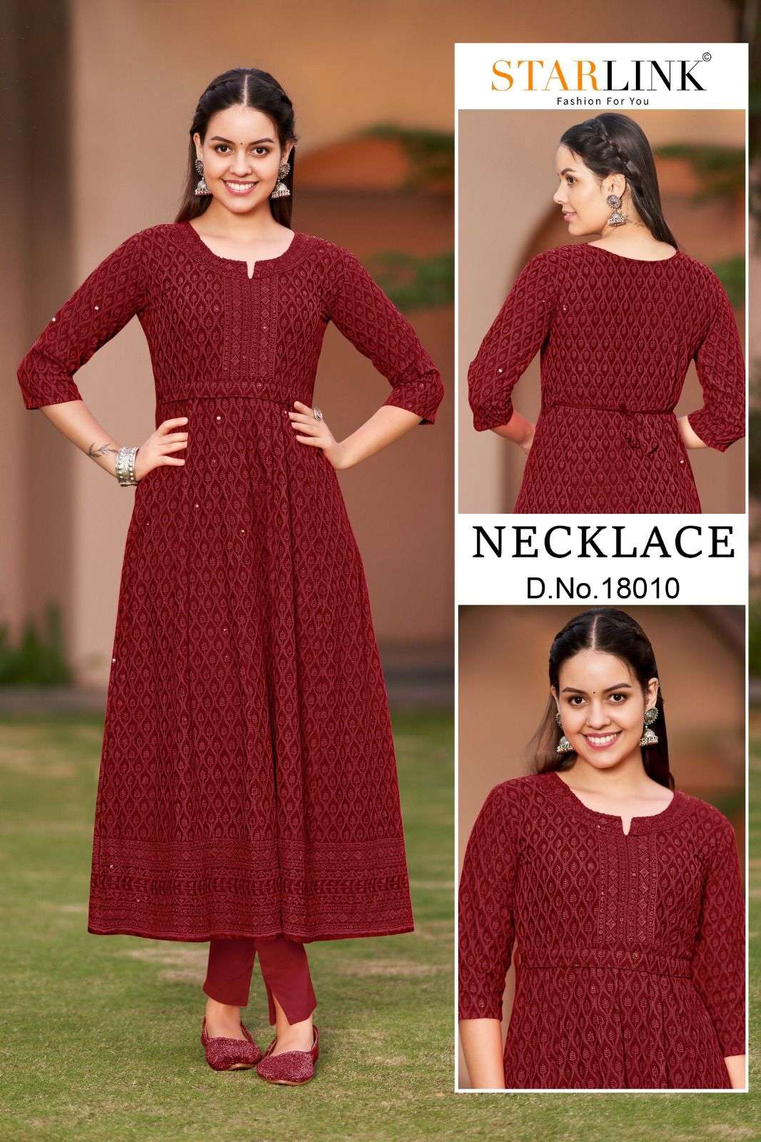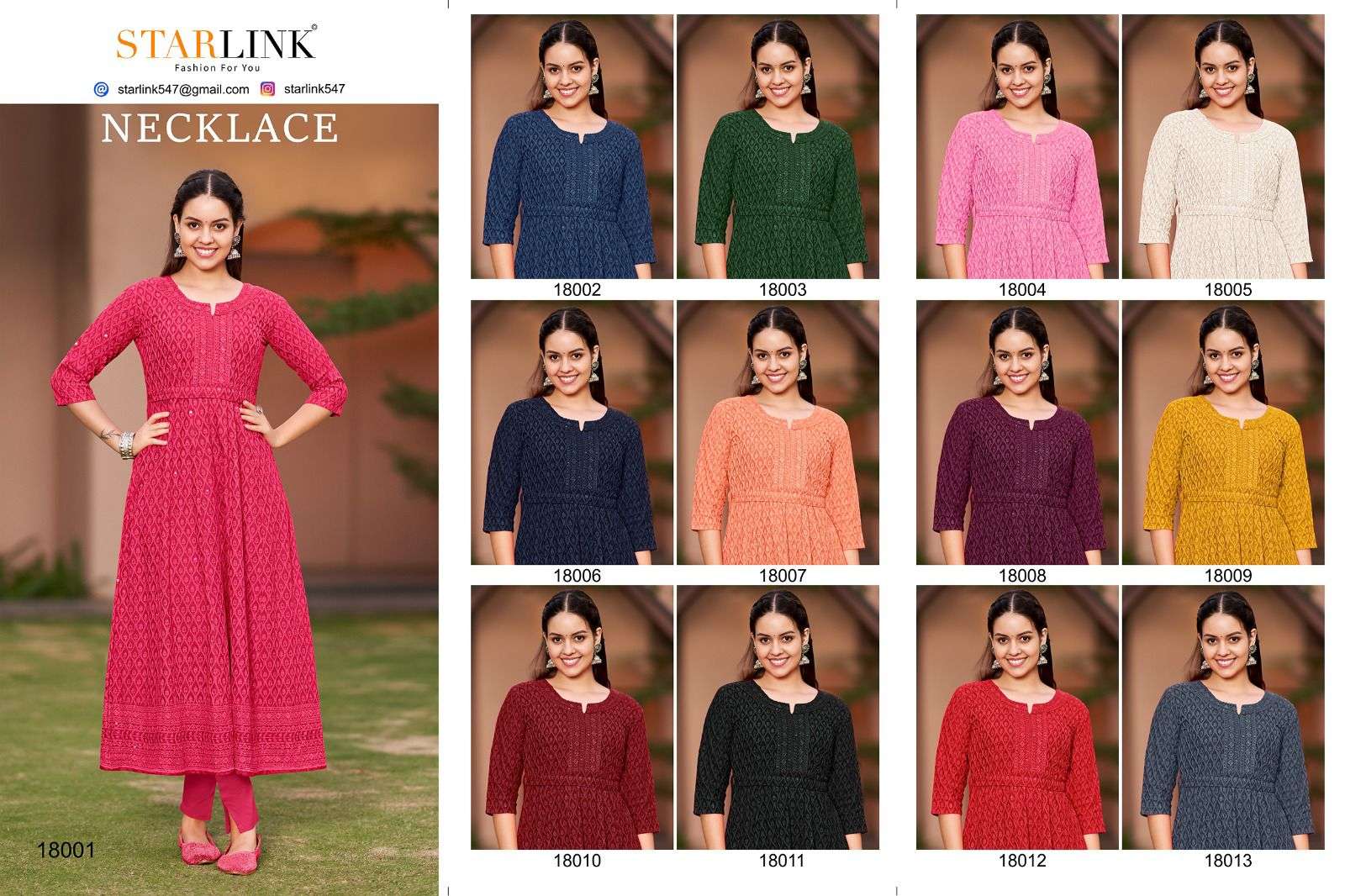 STARLINK" is happy to announce the launch of new KURTI & READYMADE. 📒 Catlouge Name :- NECKLACE 🔻Description🔻 🔹 FABRIC- TOP-RAYON WITH SHIFFLI WORK 🔹Beautiful *13*COLOURS SIZE- M-L-XL-XXL( COMBO PACKING) |