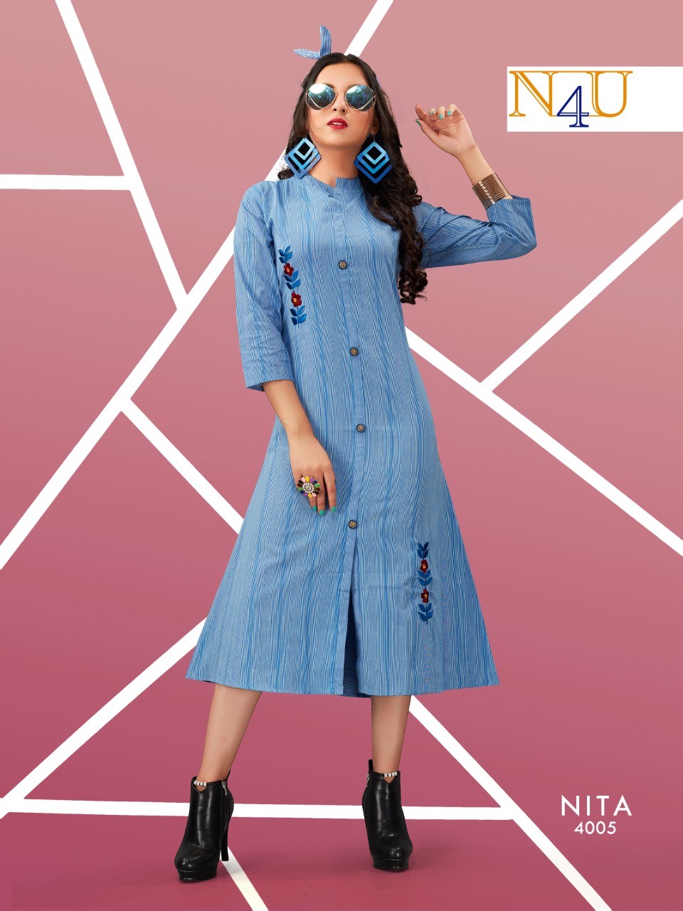 Neha Fashion Nita Handloom Cotton Embroidery Designer Kurti Supplier