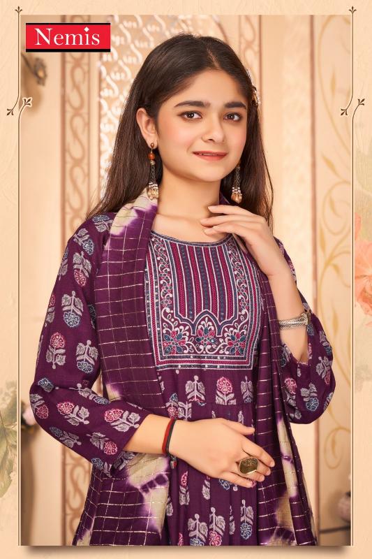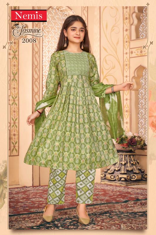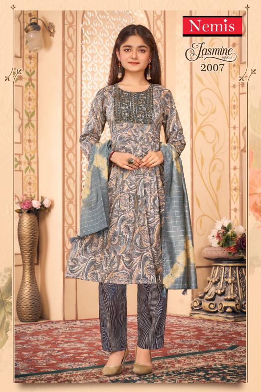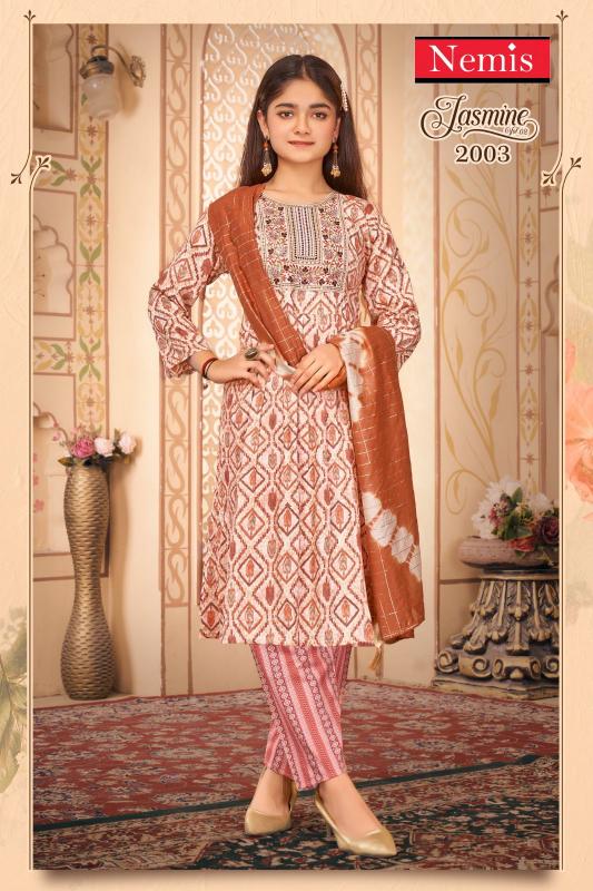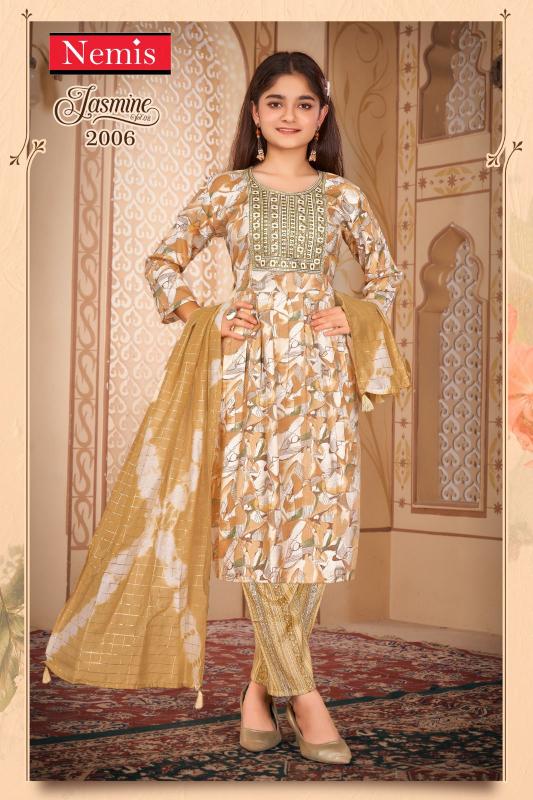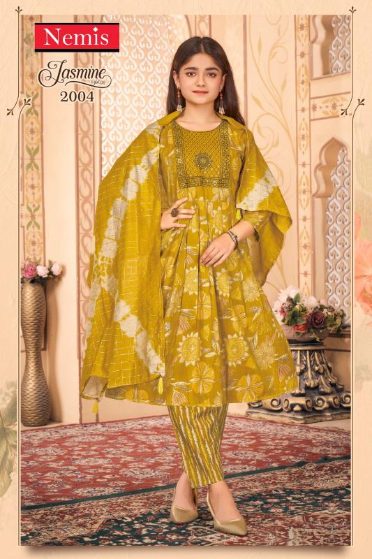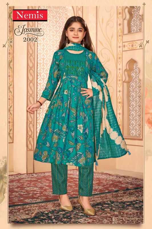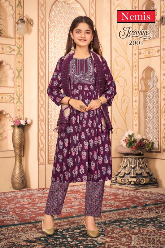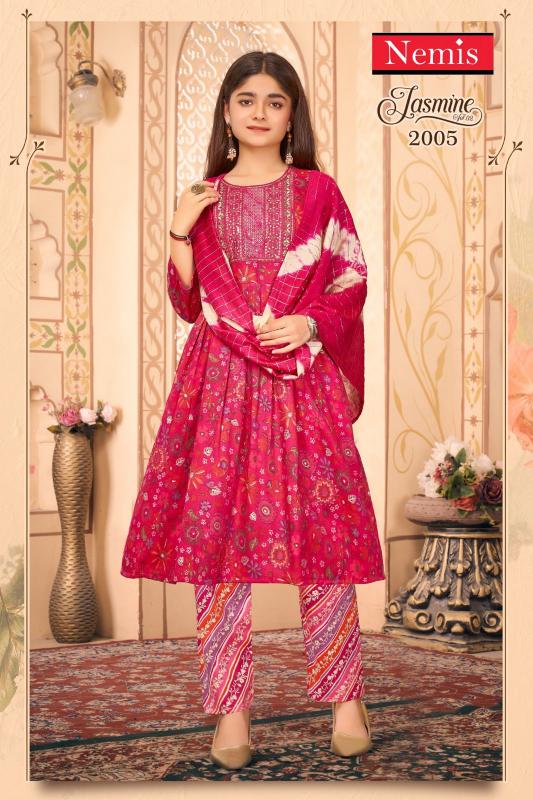 nemis jasmine vol 2 capsule foil print readymade modern kids 3pcs indian combo dress