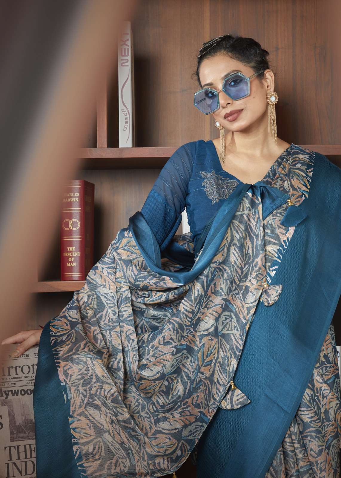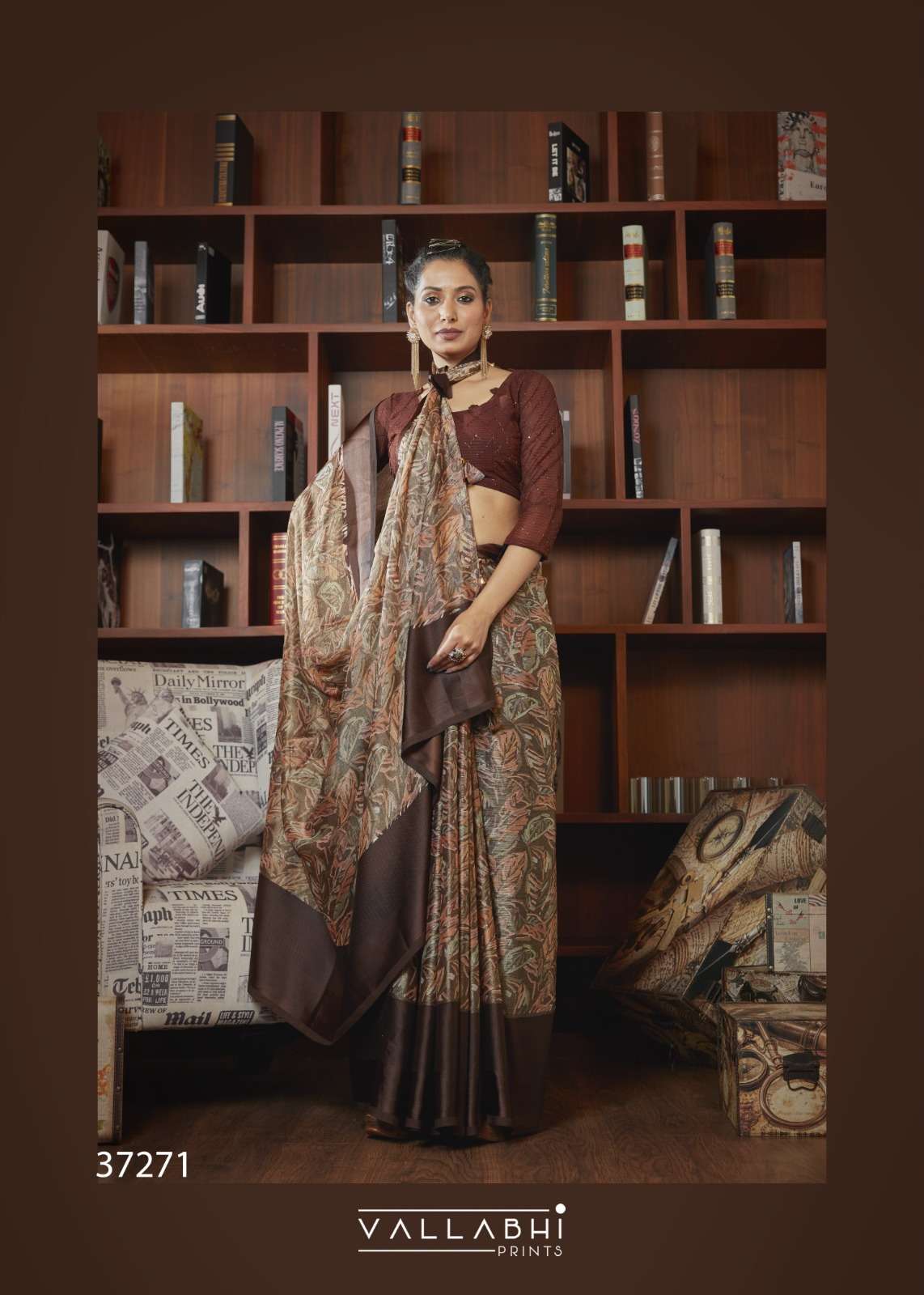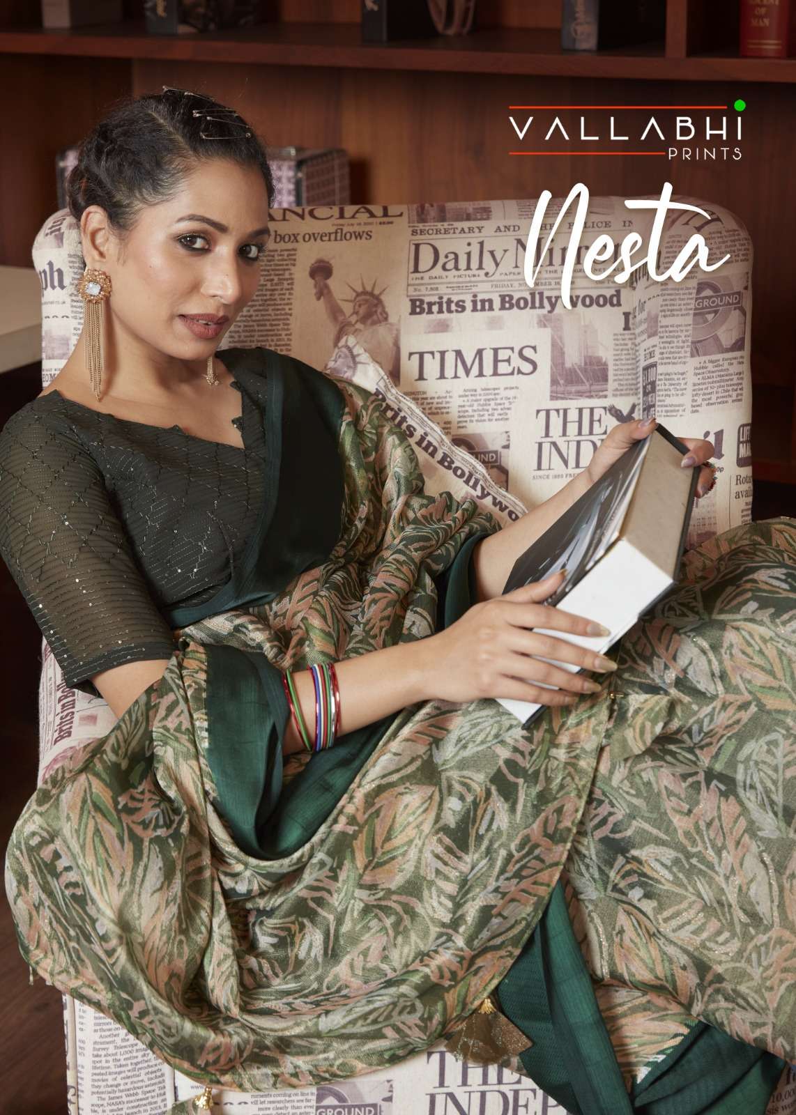 nesta by vallabhi prints designer brasso with satin border saree and crochet blouse collection