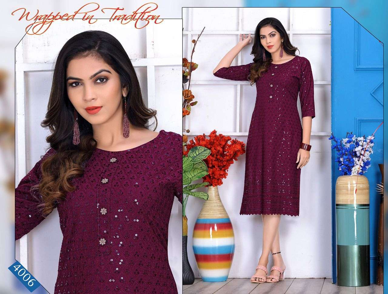 NEW BEQUTY WINSOME VOL.1 17 Kg Heavy Chiken Rayon Sequence chicken Embroidered KURTI CATALOG WHOLESALER BEST RATE