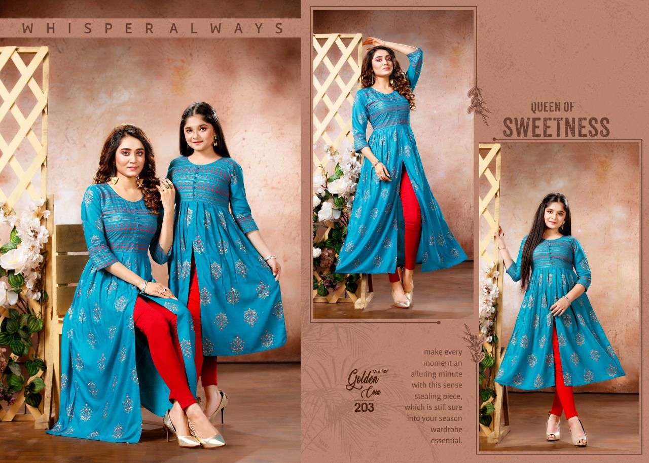 NEW GOLDEN COIN VOL.2 HEAVY PURE RAYON 14KG GOLD FOIL PRINT IN TOP MOTHER KURTI CATALOG WHOLESALER BEST RATE