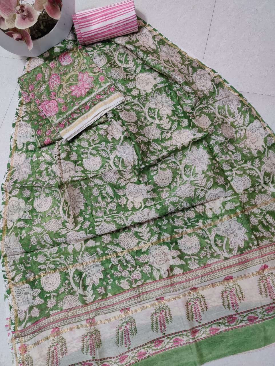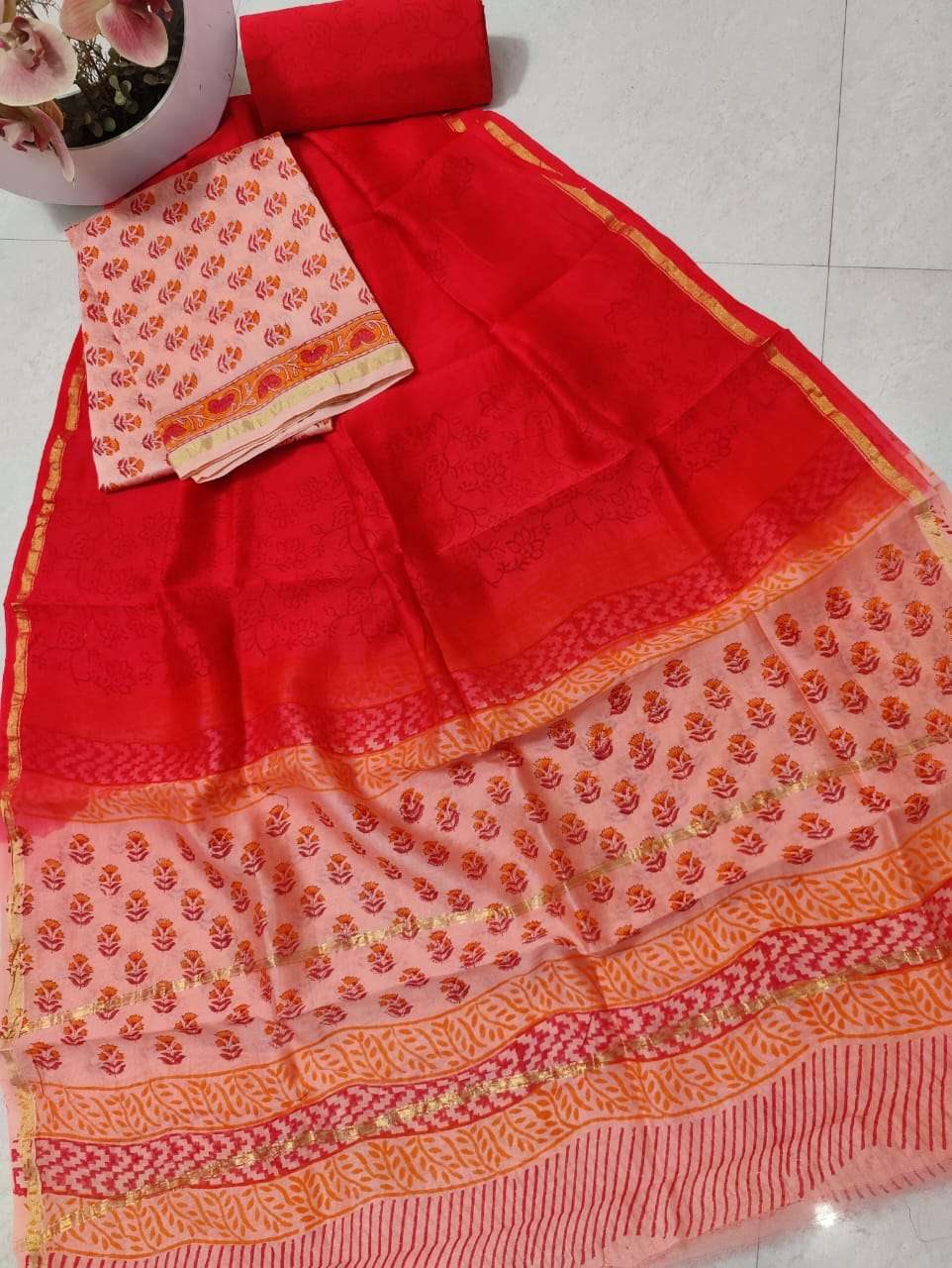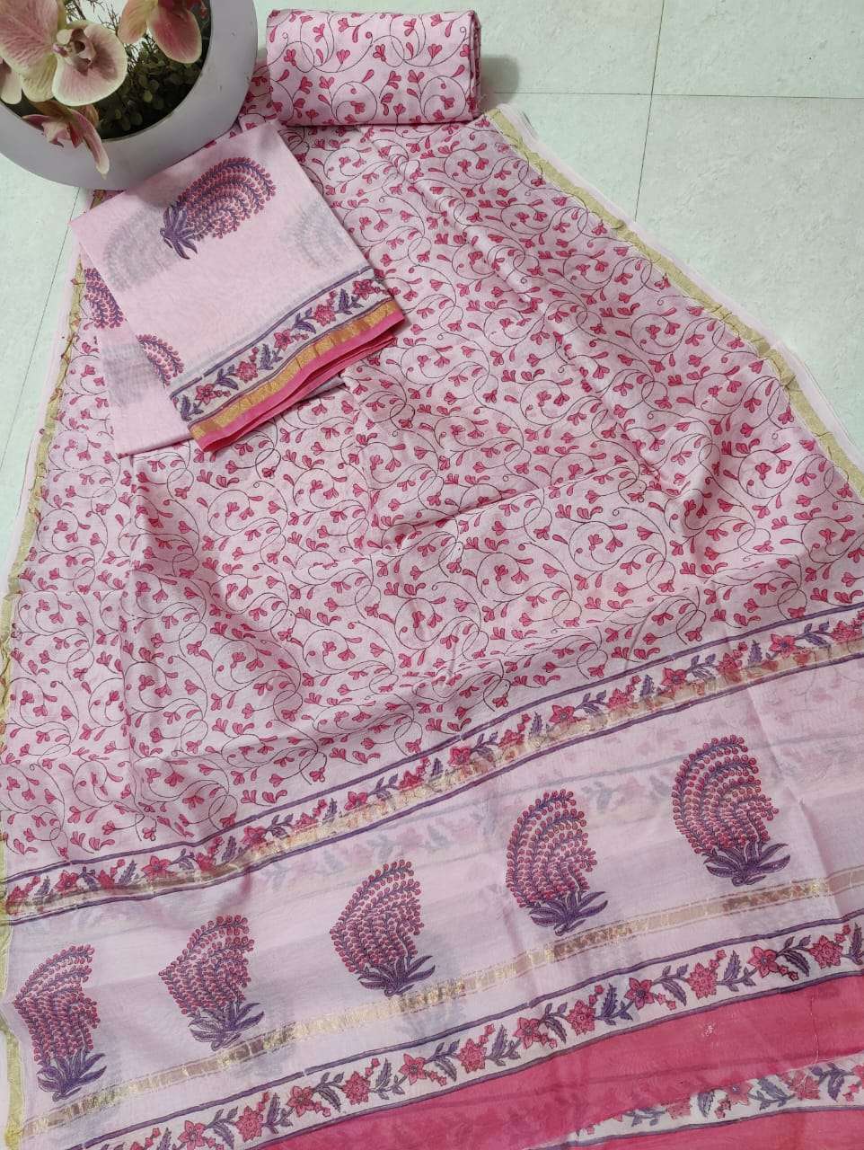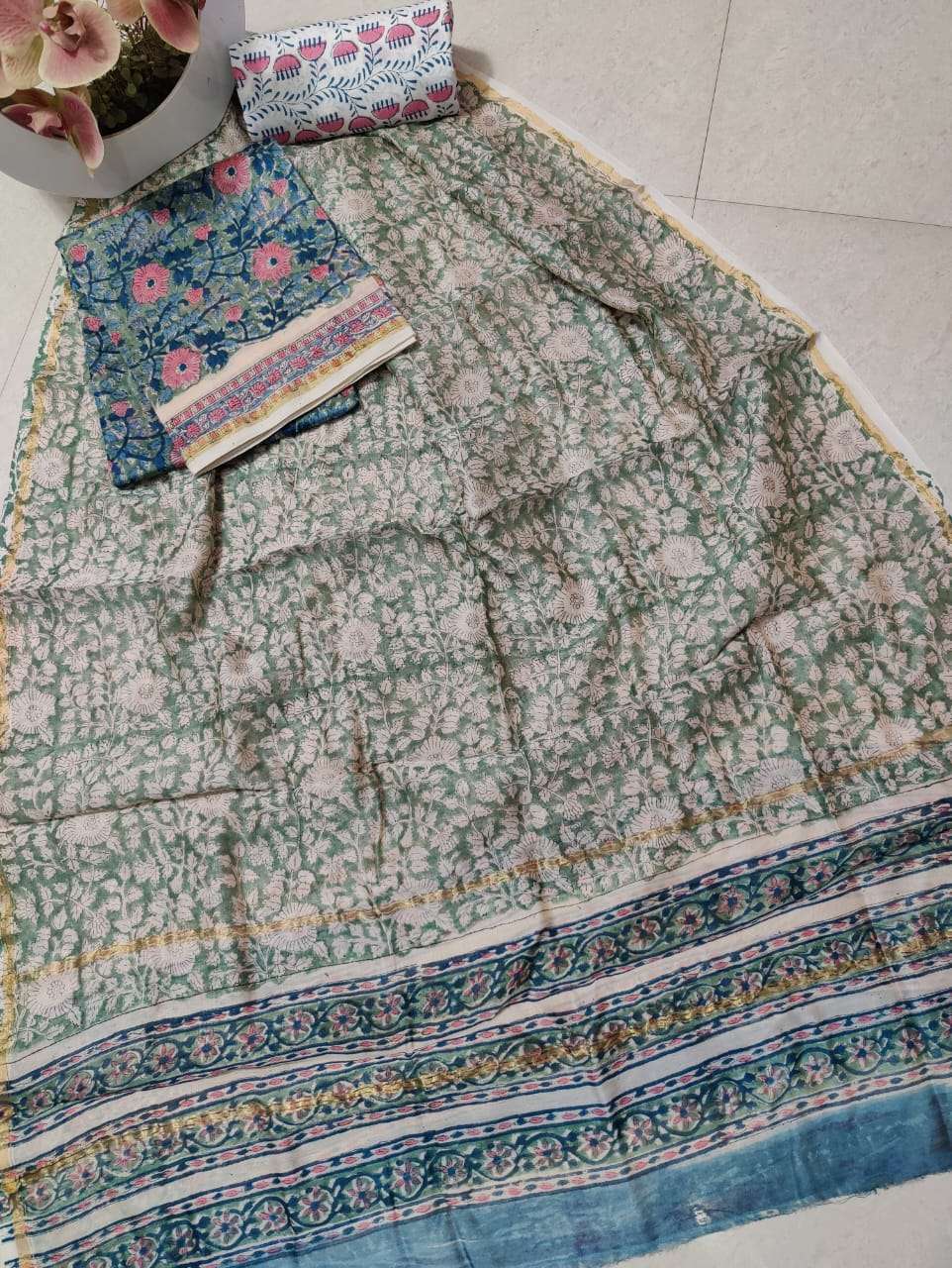 New Hand block chanderi silk dress materials👌👌 Top nd dupttas chanderi silk (2.50×2 mtrs) Price :- 1375 |
