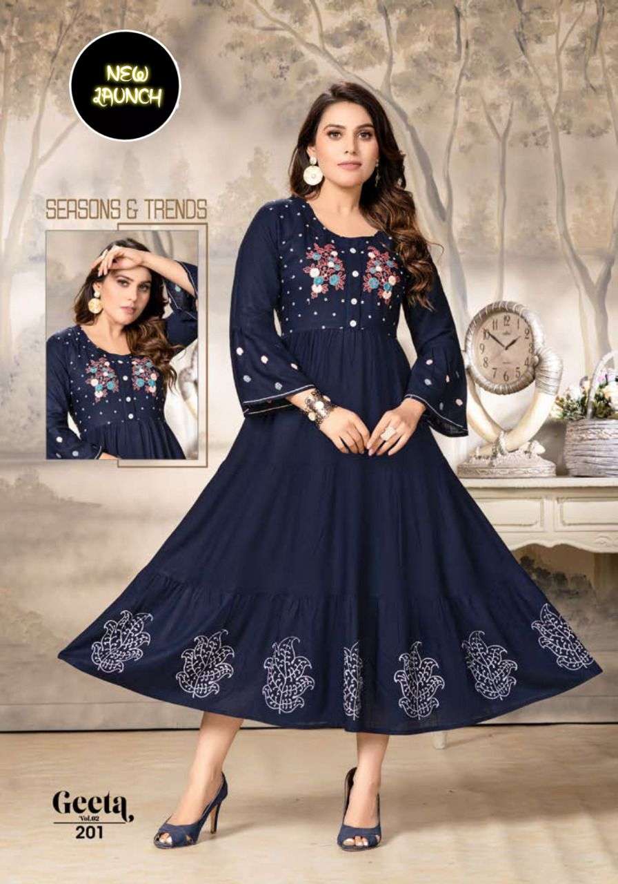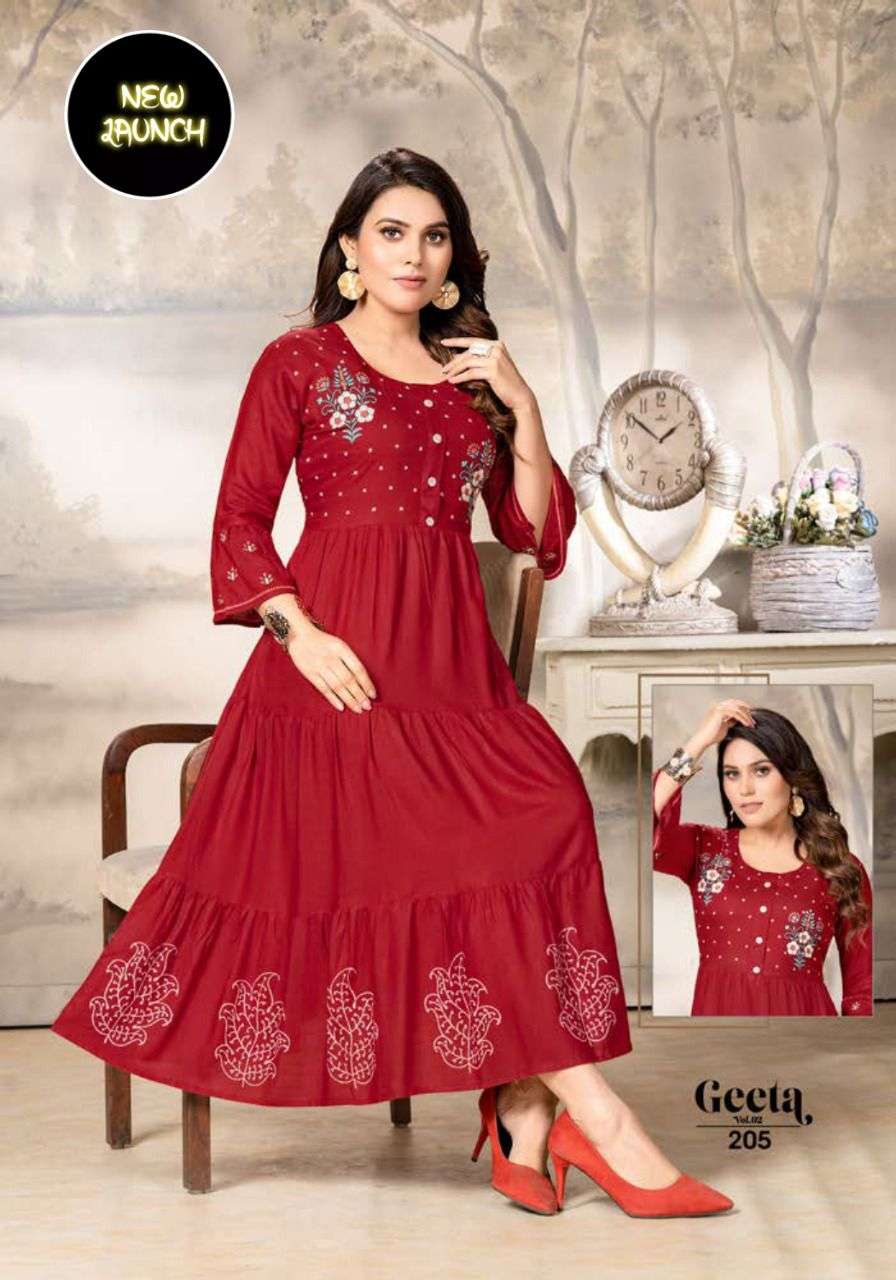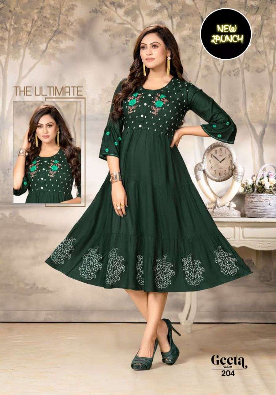 NEW RIYAA GEETA VOL-2 HEAVY RAYON SLUB WITH EMBROIDERY KURTI CATALOG WHOLESALER BEST RATE