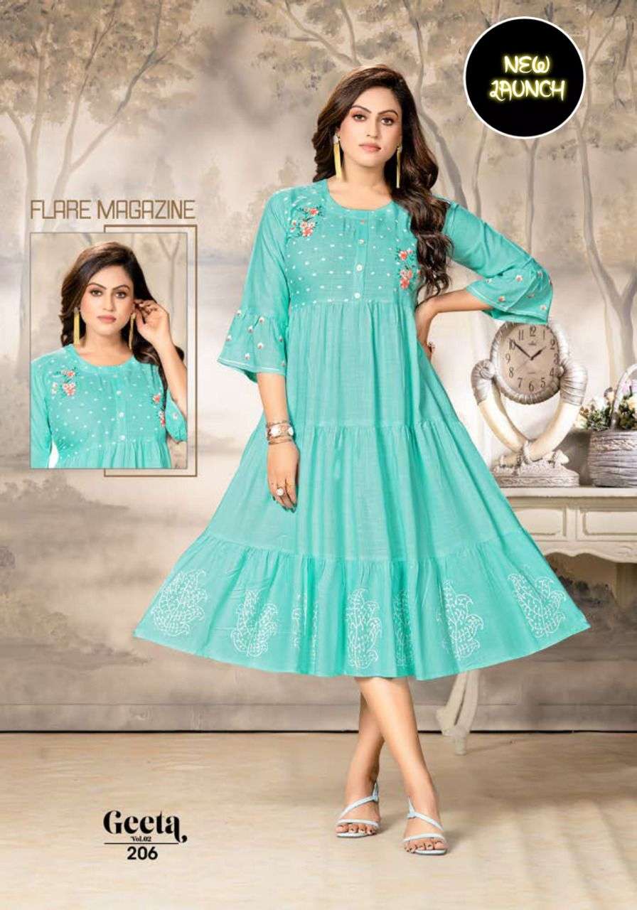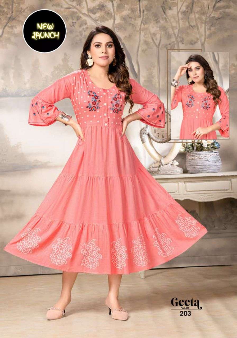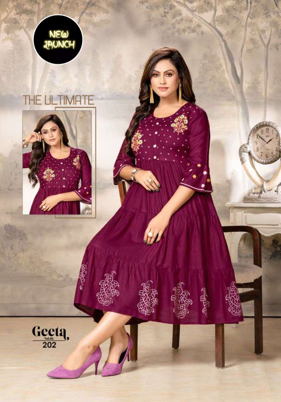 NEW RIYAA GEETA VOL-2 HEAVY RAYON SLUB WITH EMBROIDERY KURTI CATALOG WHOLESALER BEST RATE