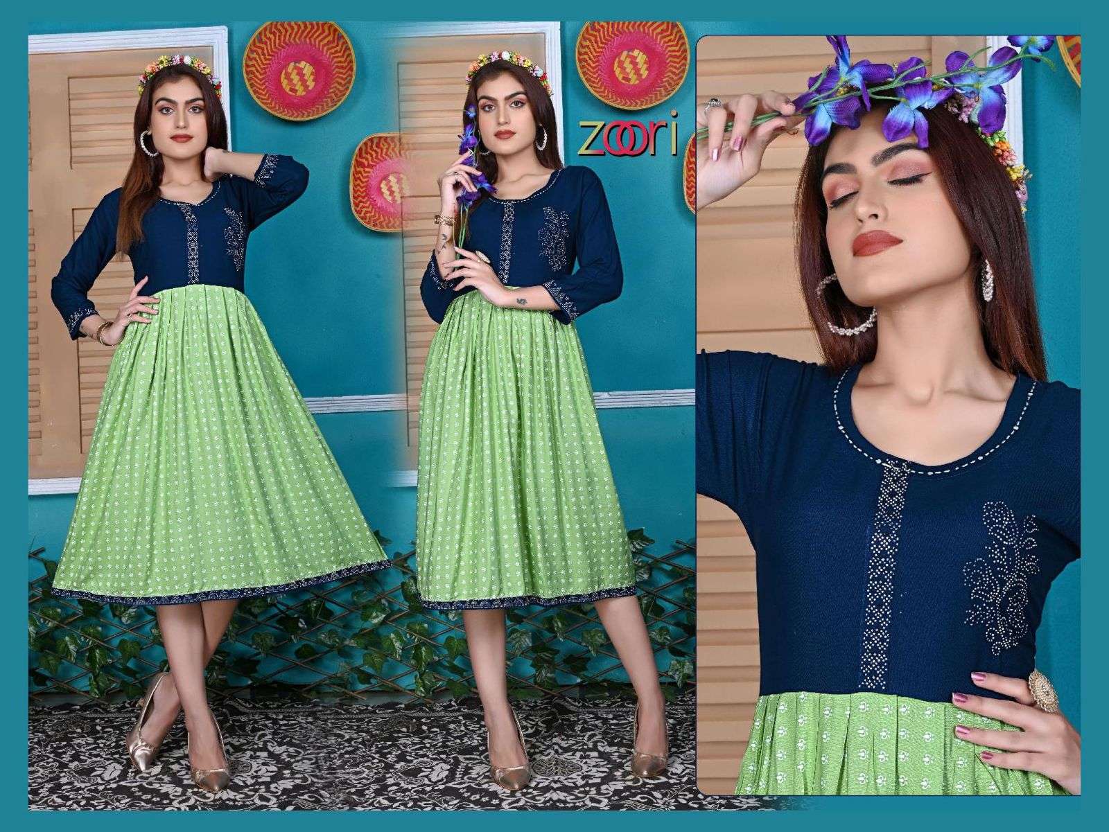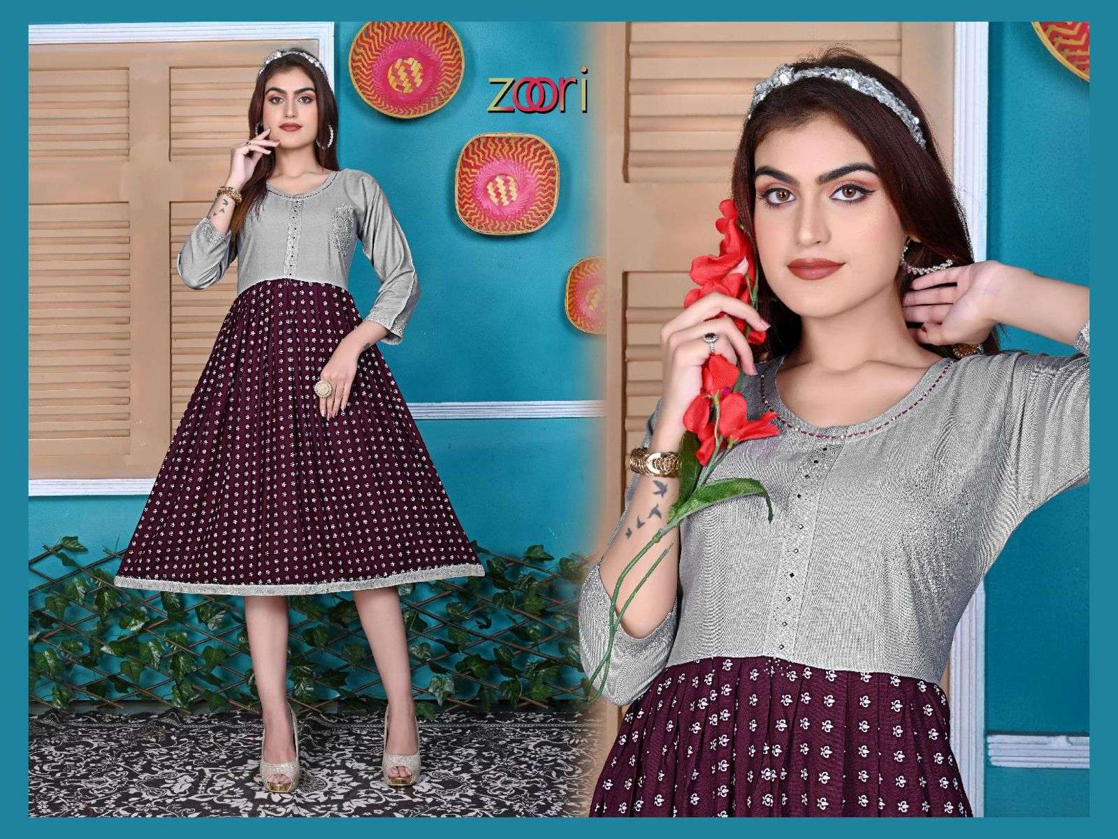 New Riyaa Zoori Vol.1 rayon heavy KURTI CATALOG WHOLESALER BEST RATE