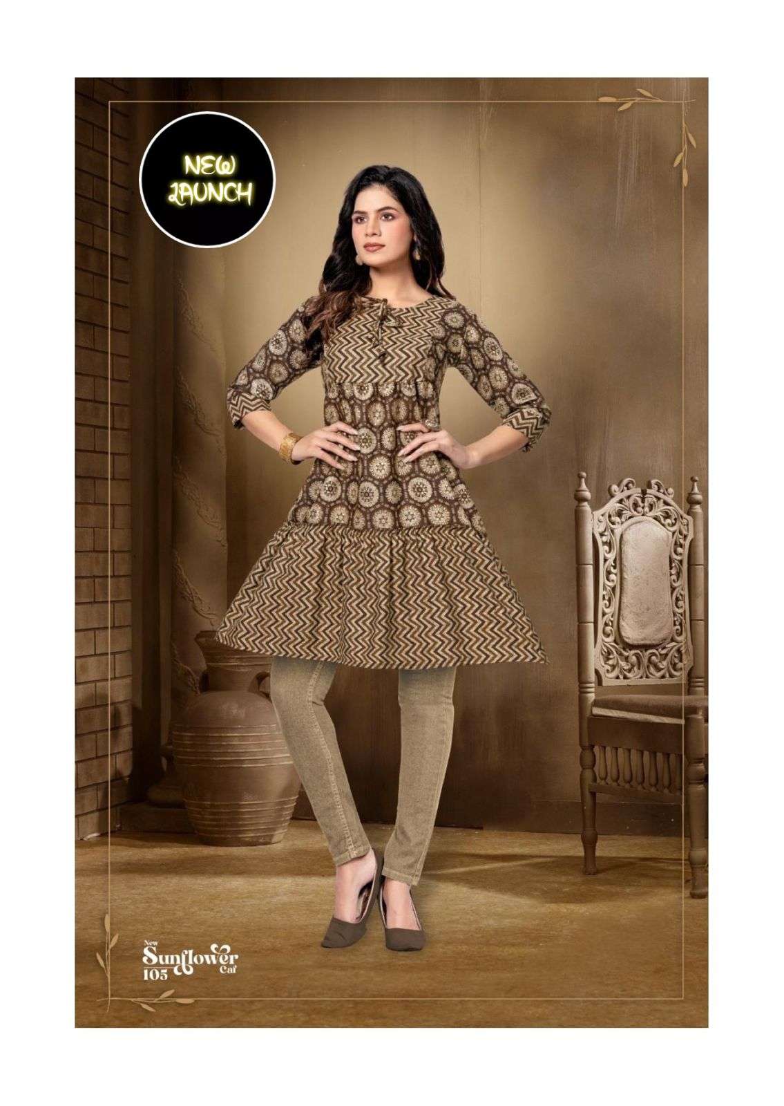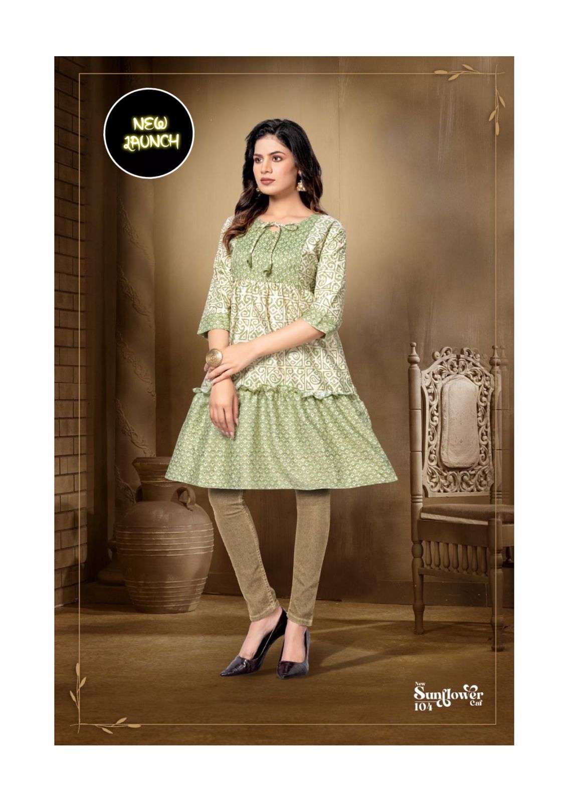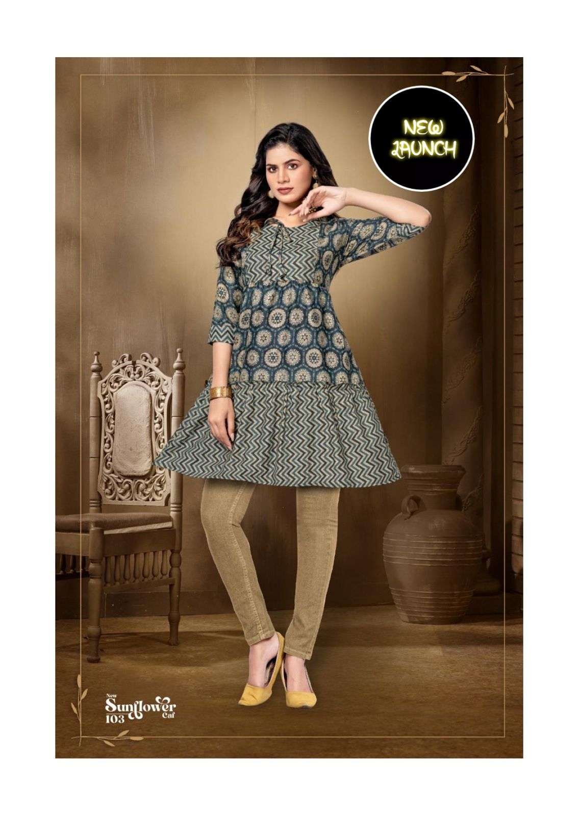 NEW SUN FLOWER CAF HEAVY CAPSUL RAYON PRINTED KURTI CATALOG WHOLESALER BEST RATE