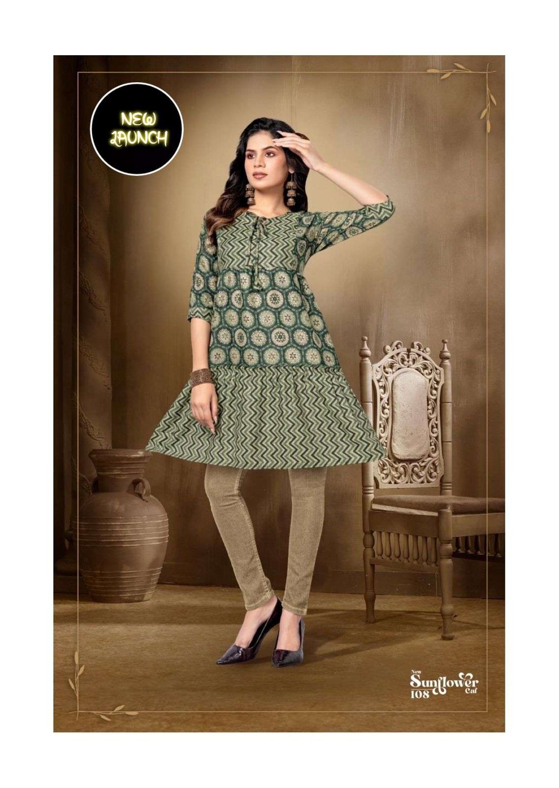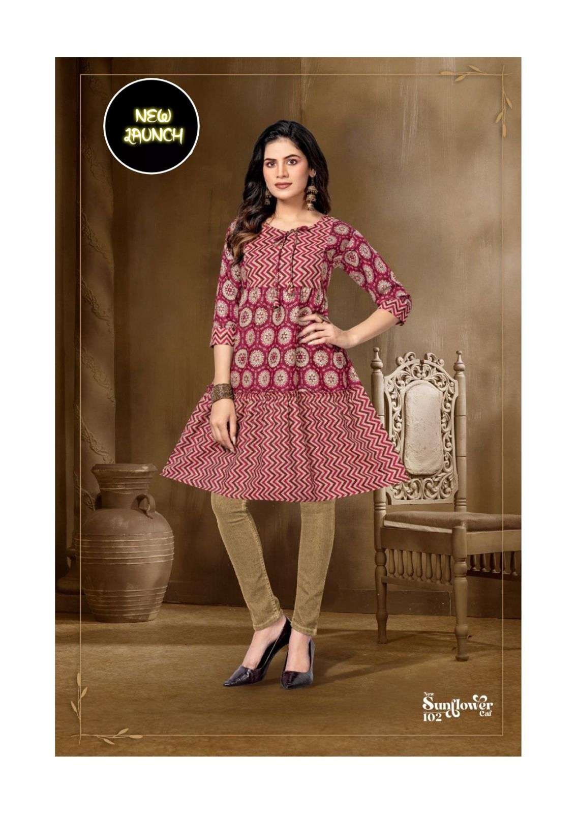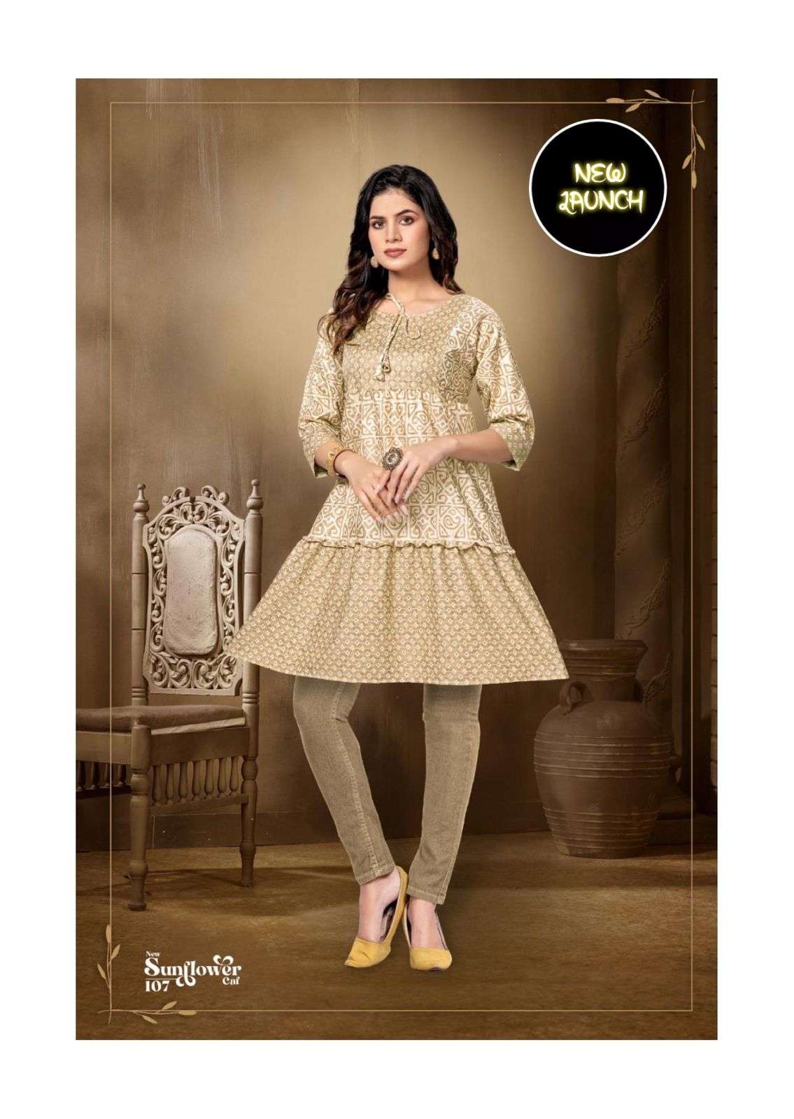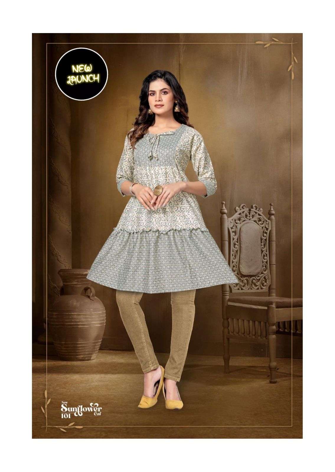 NEW SUN FLOWER CAF HEAVY CAPSUL RAYON PRINTED KURTI CATALOG WHOLESALER BEST RATE